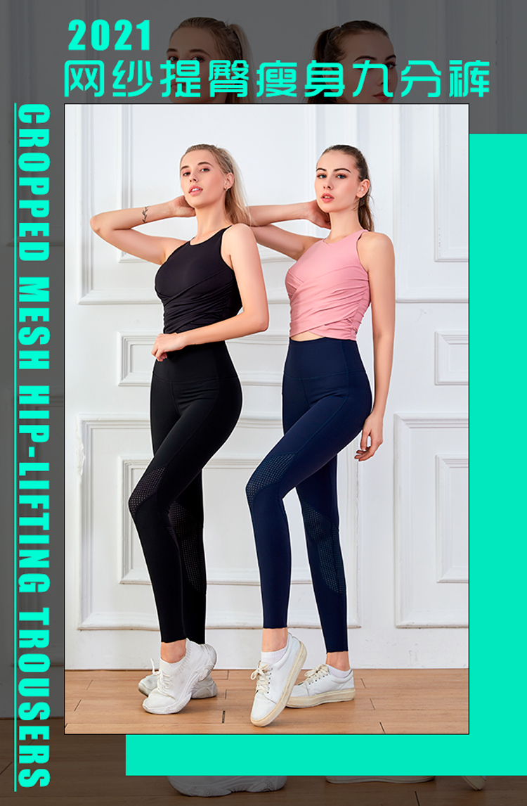 《捡漏专场 不退换》华威特瑜伽裤九分网纱提臀瘦身无边九分小脚瑜伽裤健身服