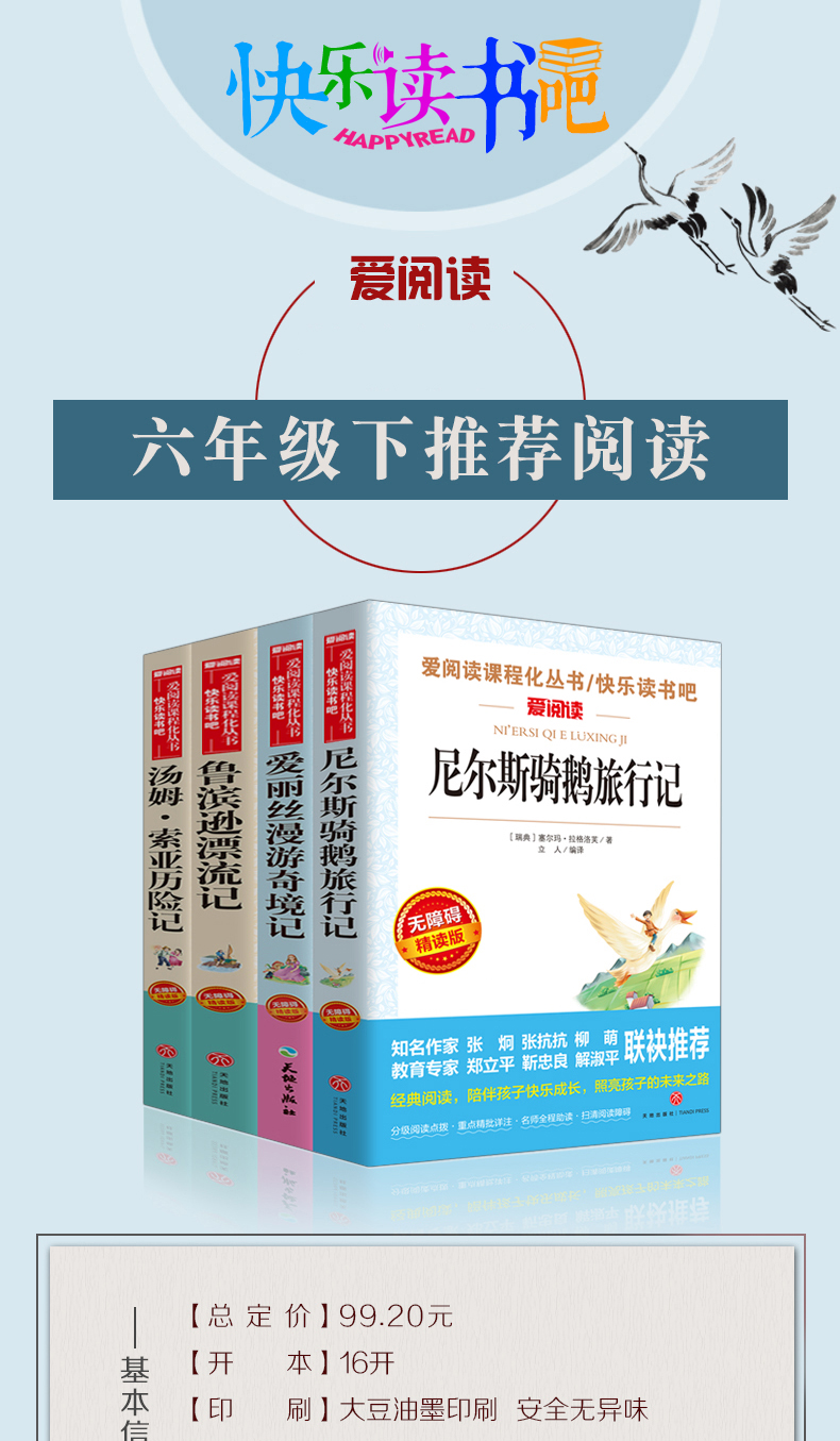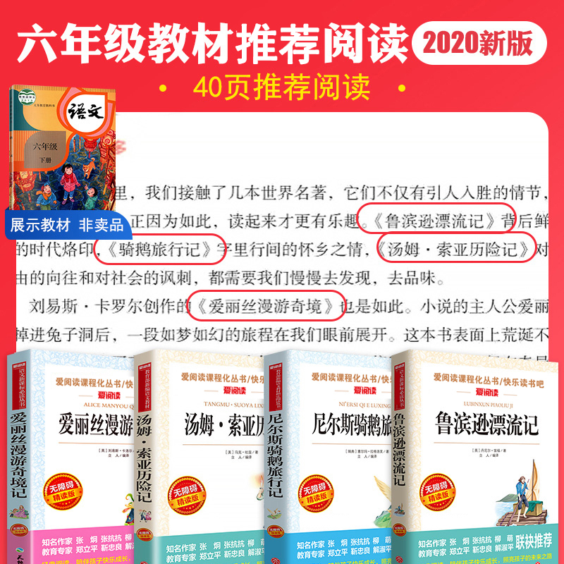全套4册 六年级必读的课外书下册原著完整版鲁滨逊漂流记正版老师推荐 爱丽丝漫游奇境 尼尔斯骑鹅旅行记汤姆索亚历险记快乐读书吧
