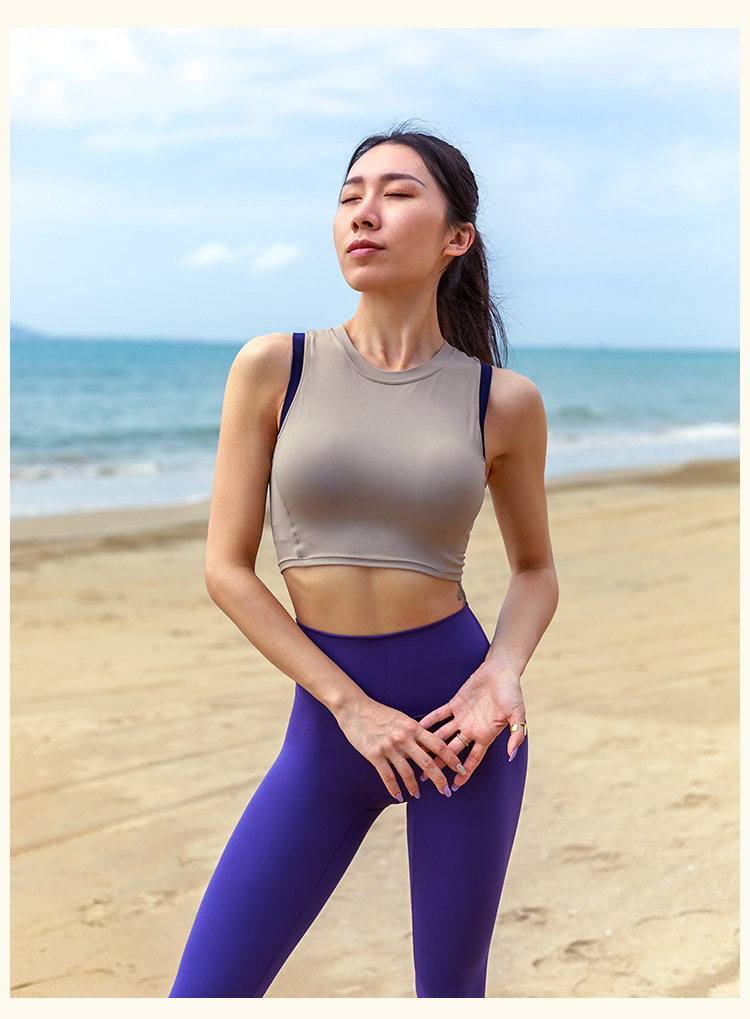 【裸感】中强度-露背抽绳一体式胸垫运动背心