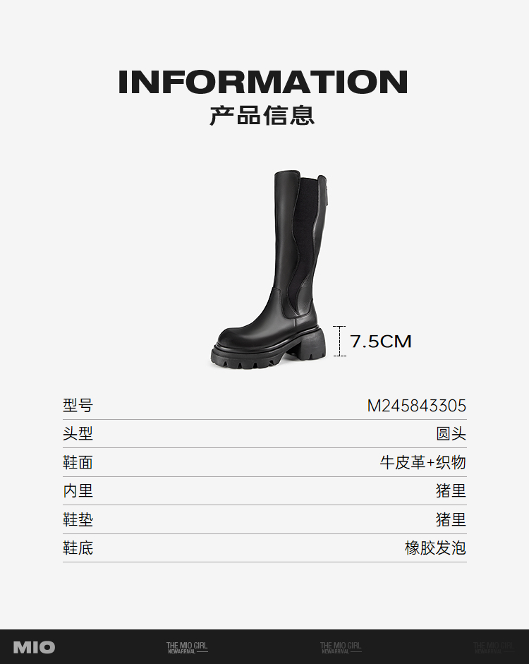 MIO米奥冬季骑士靴厚底增高长筒靴潮流酷飒美拉德靴子女M245843305