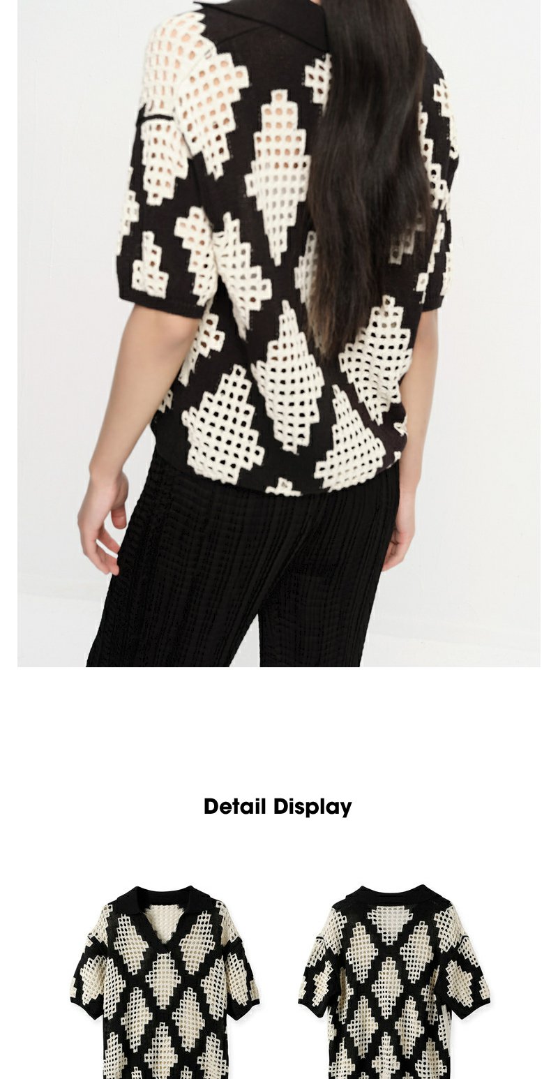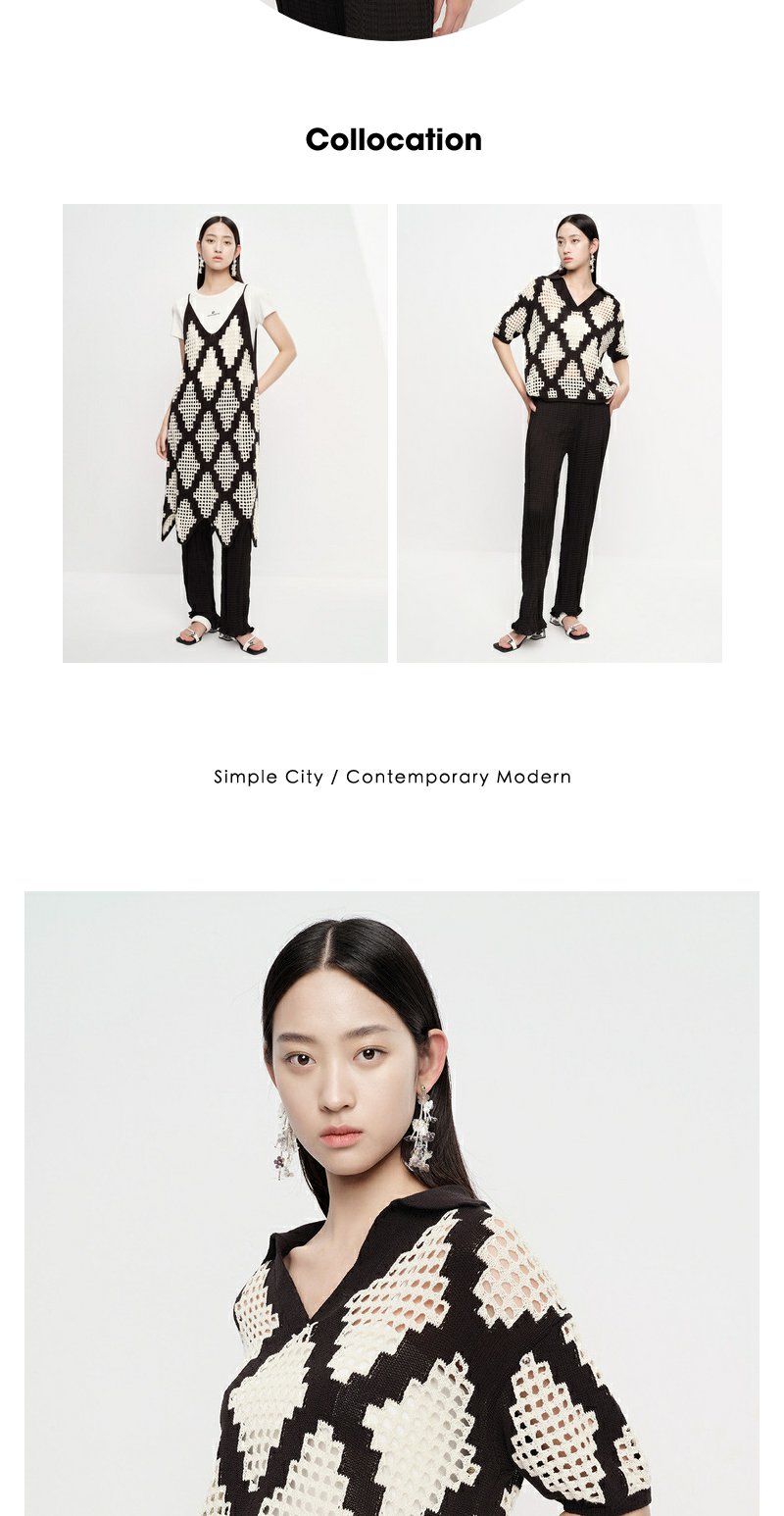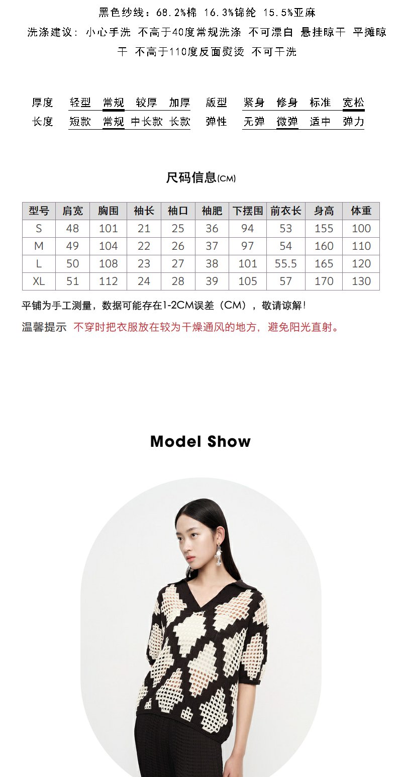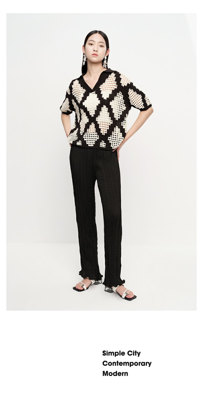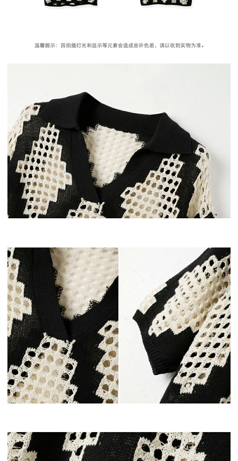 NEELLY纳俪商场同款气质V领镂空菱格针织衫女套头短袖夏季上衣N23061A01189