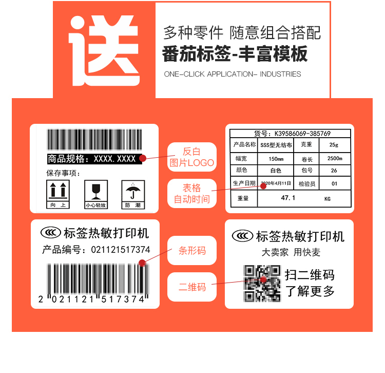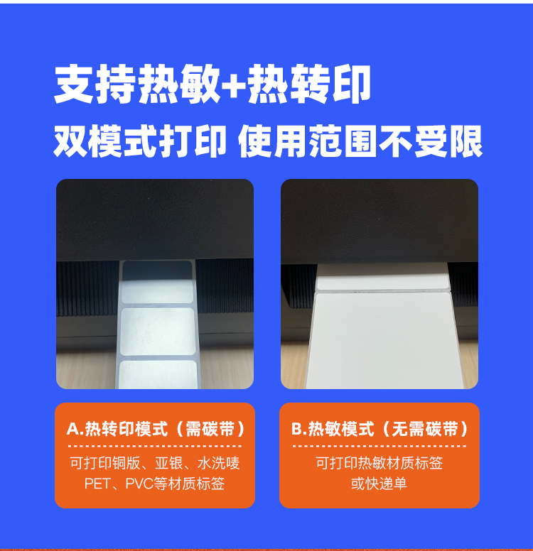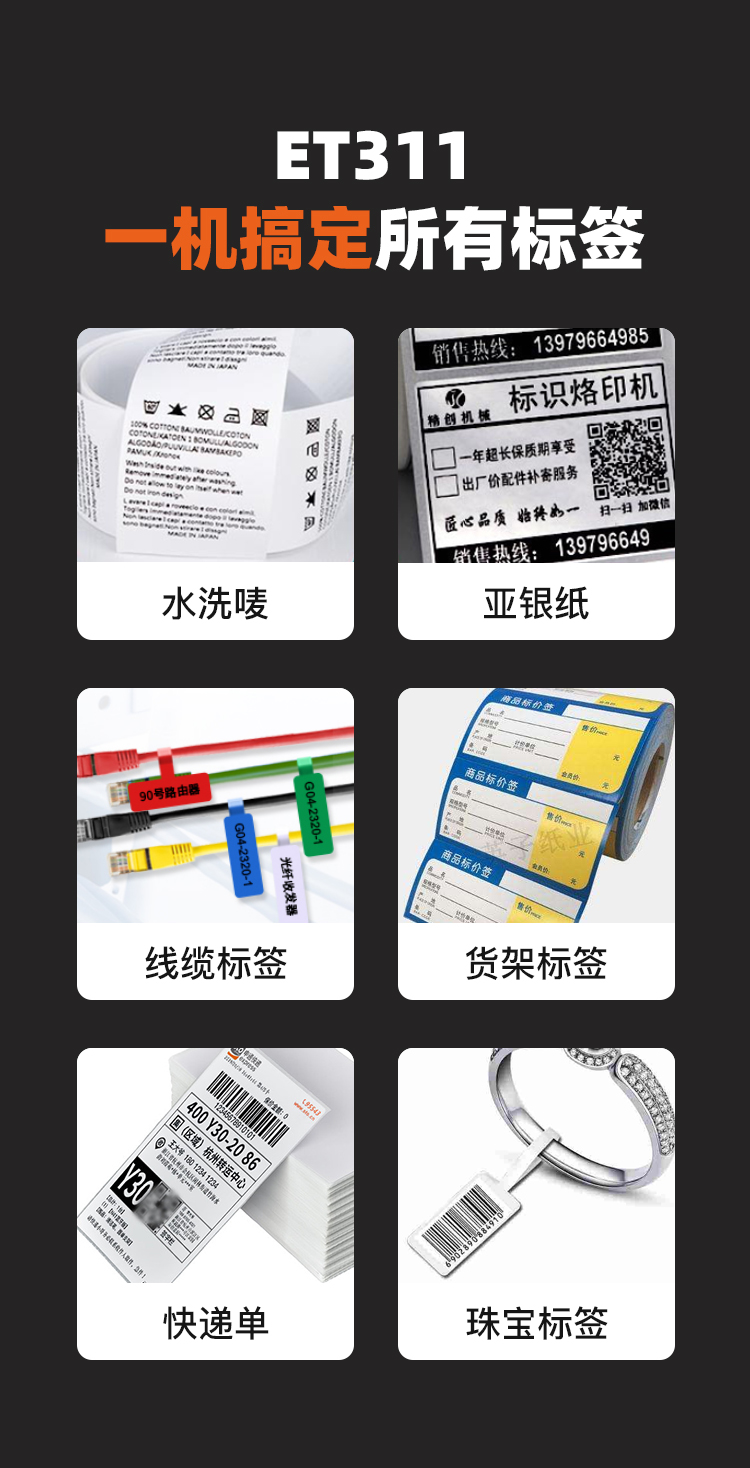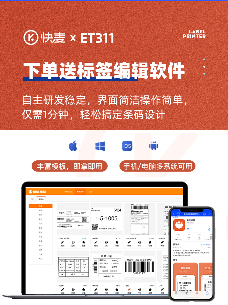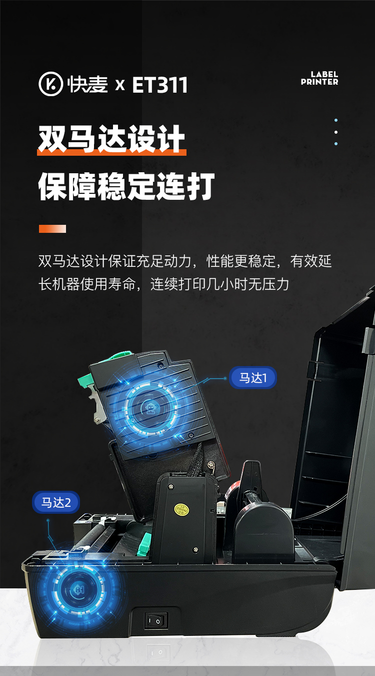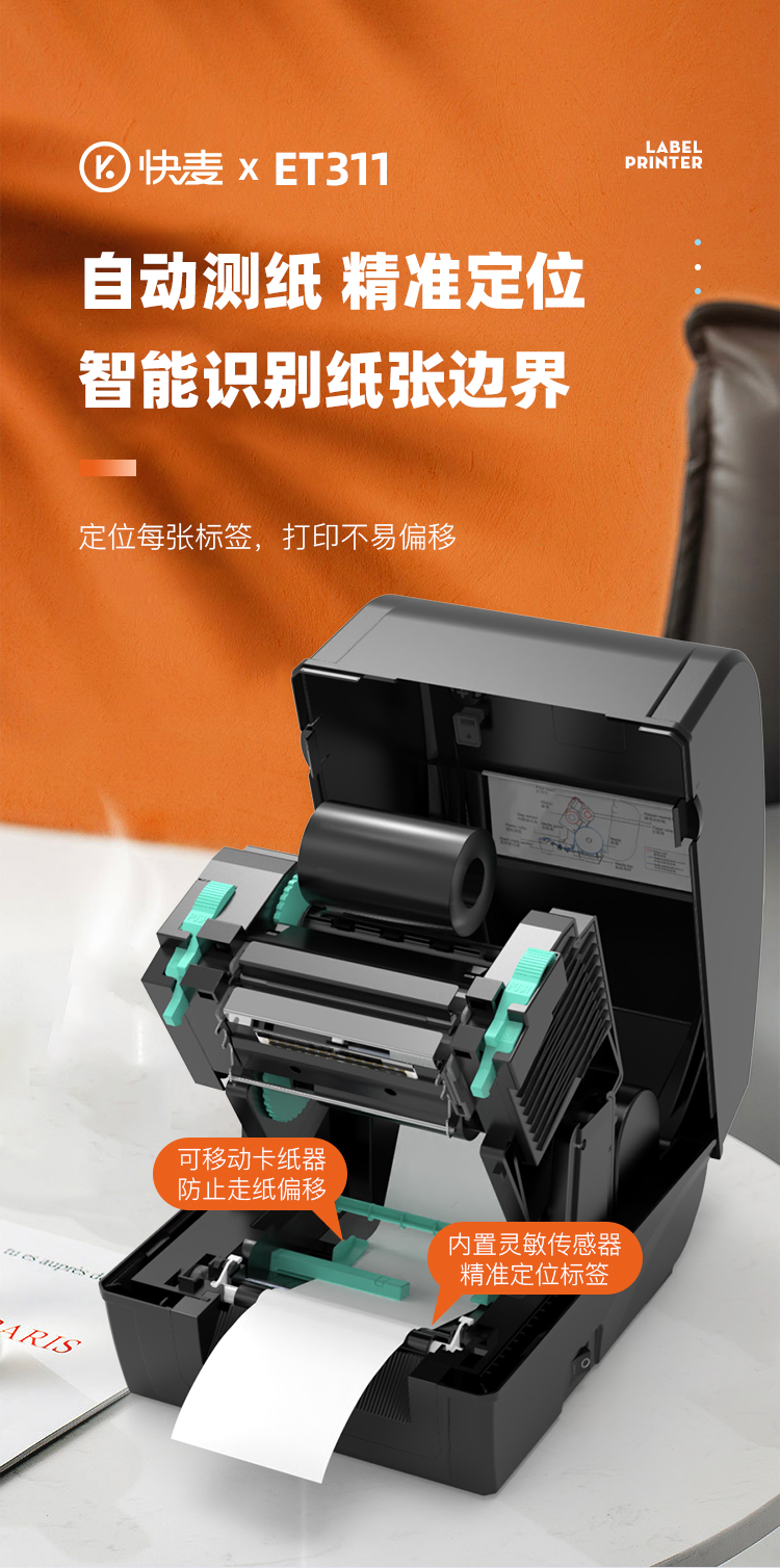 快麦ET311碳带条码机服装吊牌合格证标价洗水唛缎带珠宝货架铜版亚银不干胶贴纸固定资产热转印标签打印机