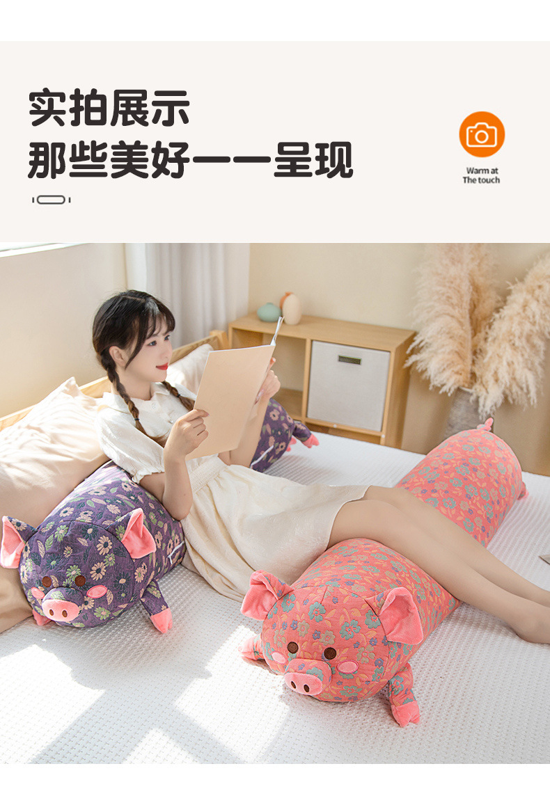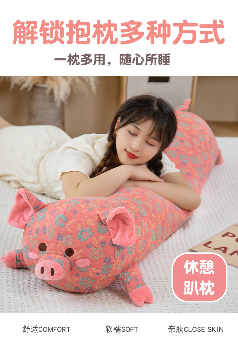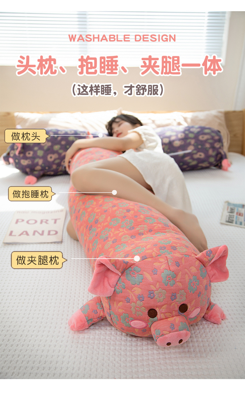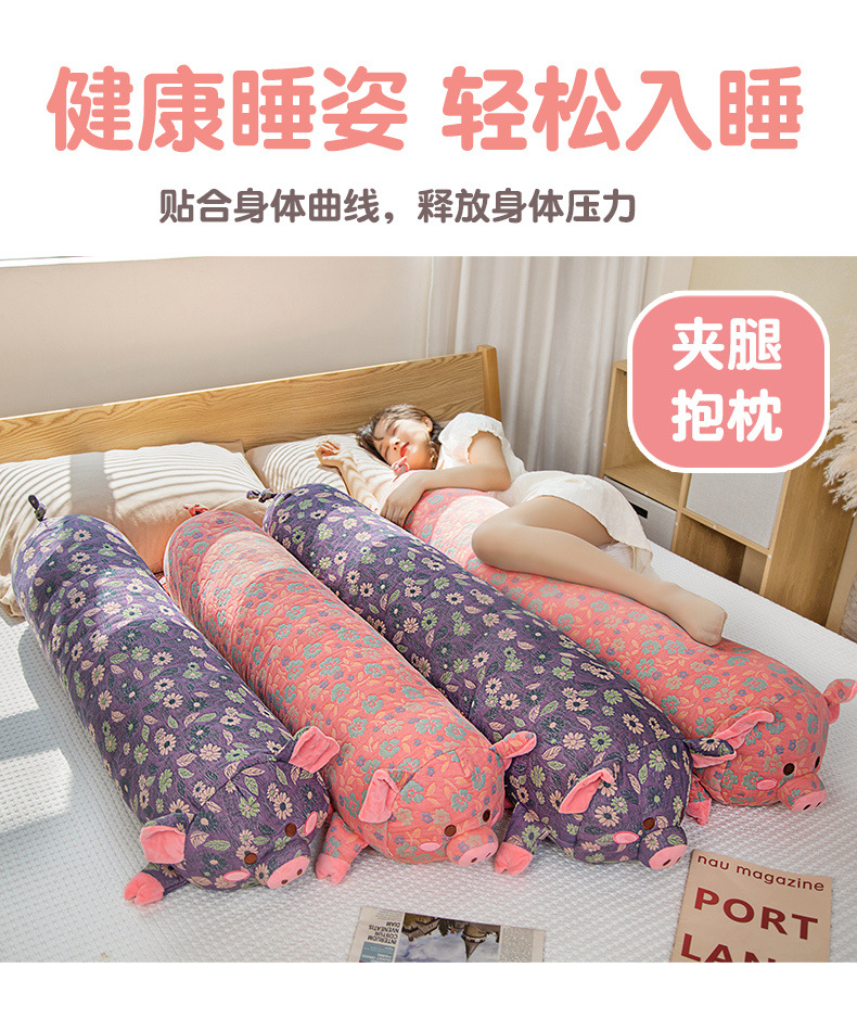 【大花猪夹腿抱枕】秋冬花布猪猪长条枕 卧室夹腿侧睡枕头 孕妇可用 可拆洗靠枕