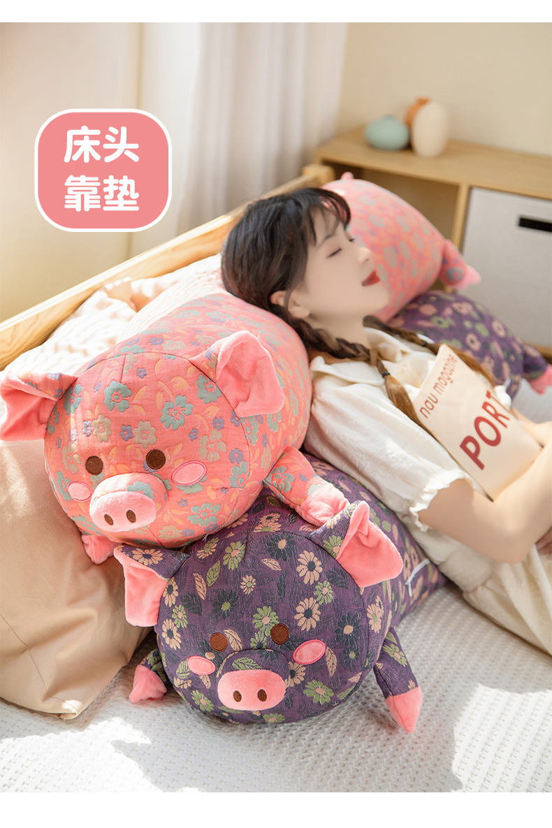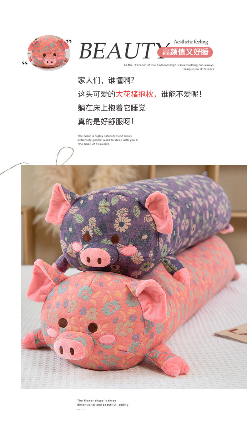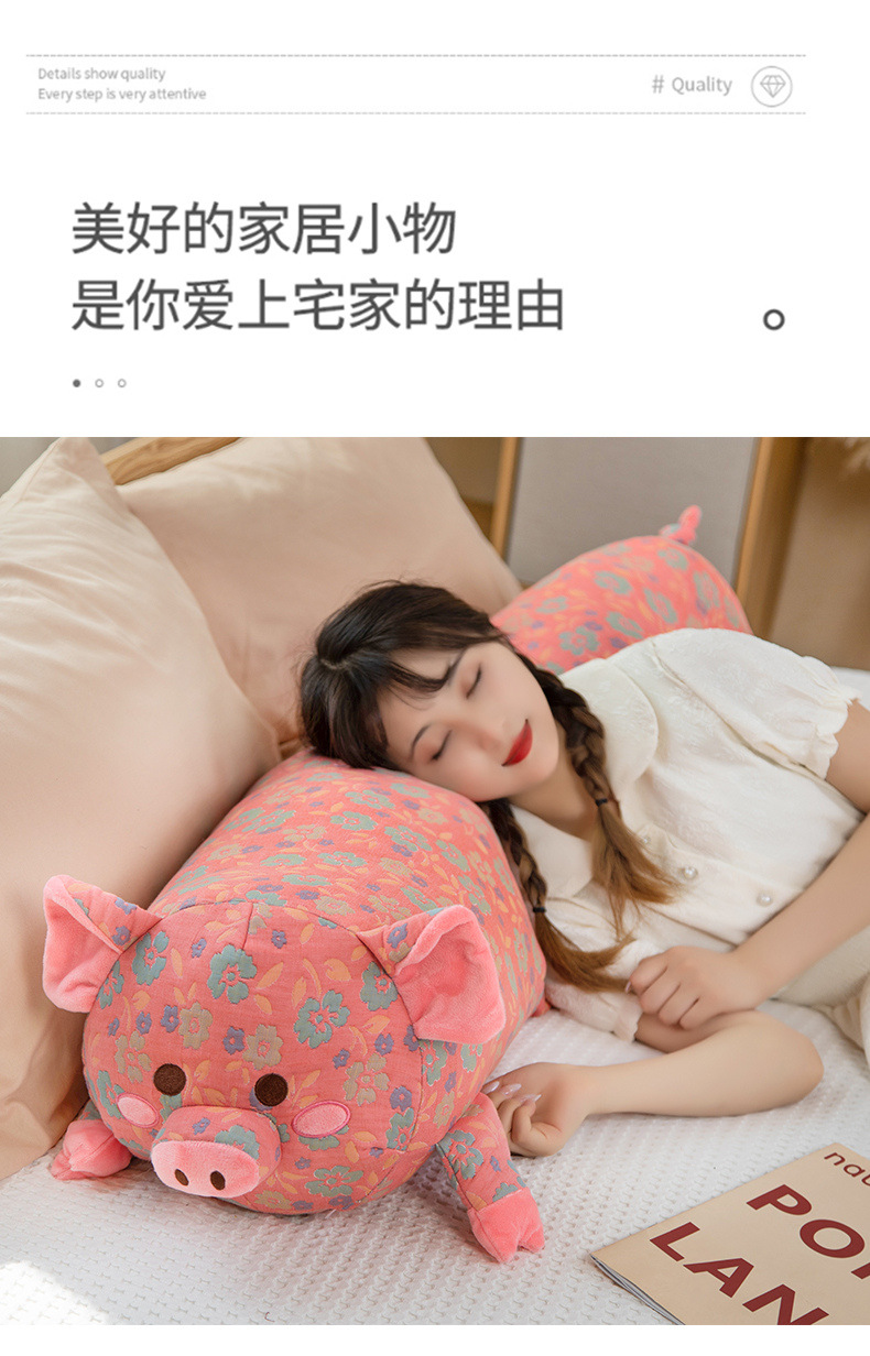 【大花猪夹腿抱枕】秋冬花布猪猪长条枕 卧室夹腿侧睡枕头 孕妇可用 可拆洗靠枕