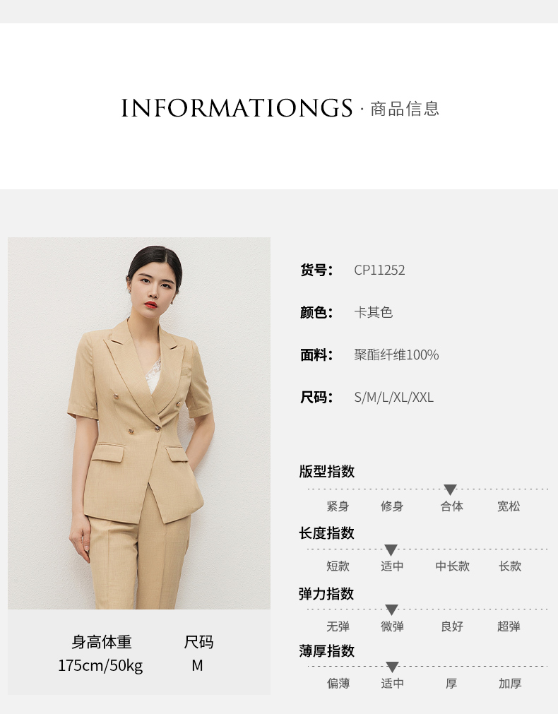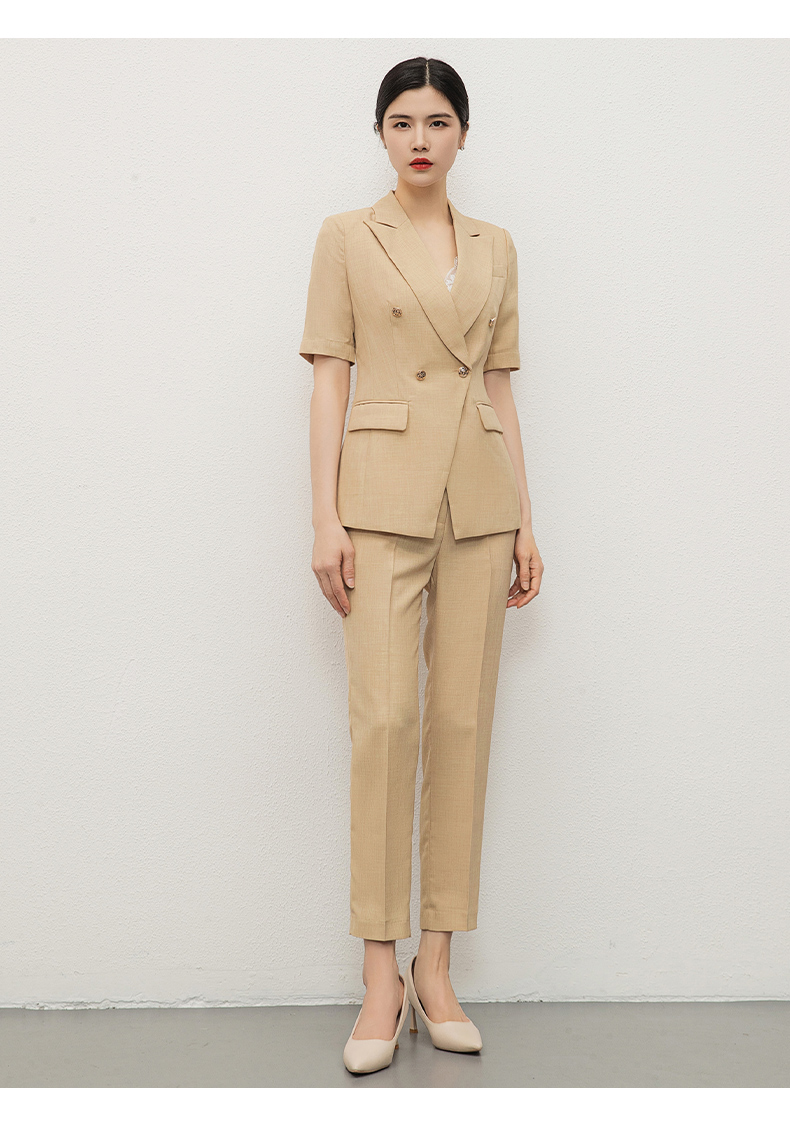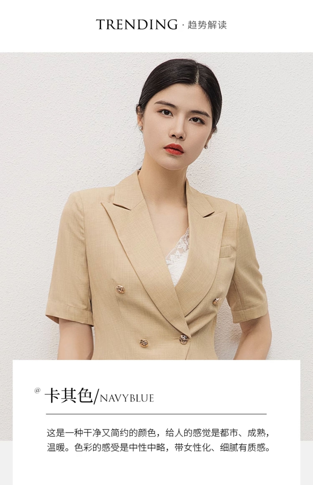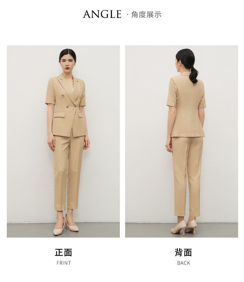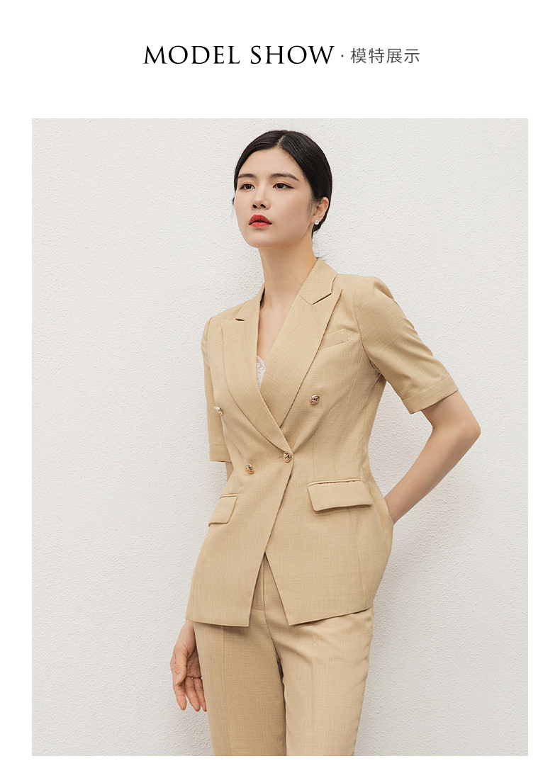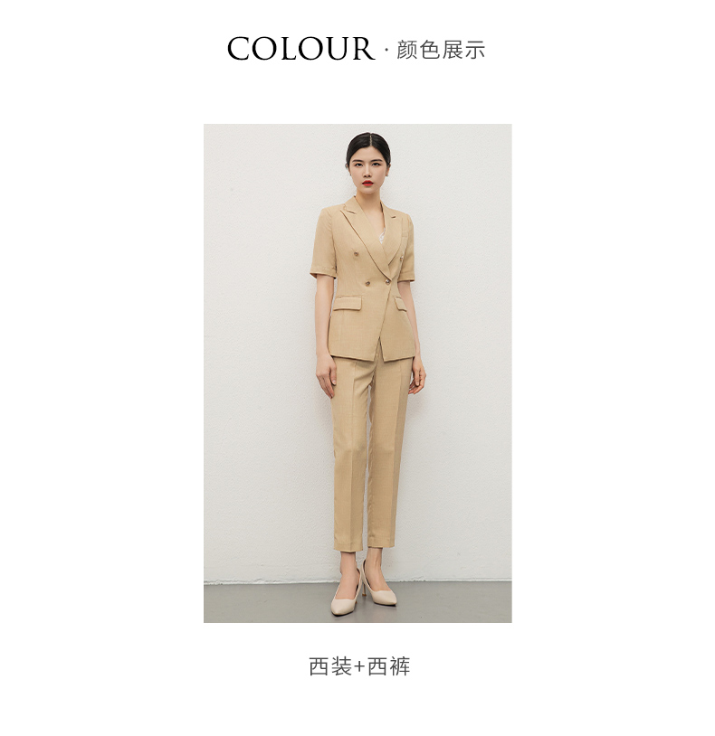 IWY/时尚卡其色西装套装女夏季短袖职业装售楼部酒店前台工作服CP11252