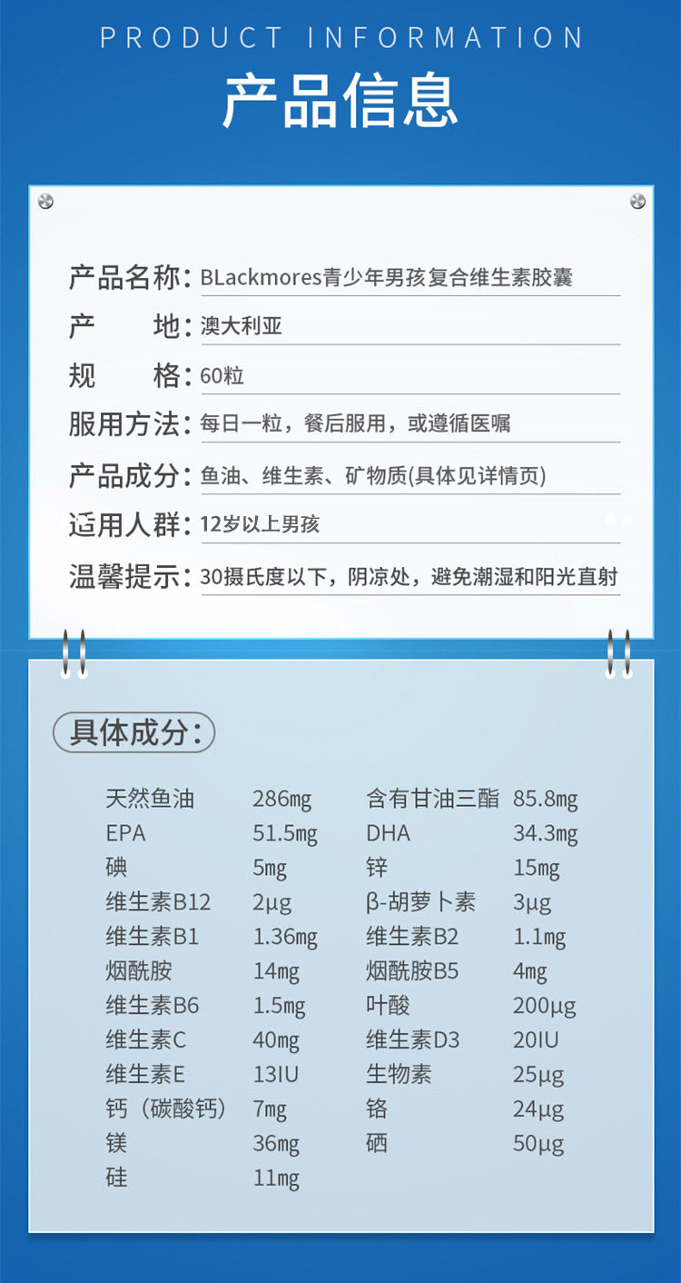 Blackmores 澳佳宝青少年多维营养素(男孩版)青少年大脑发育