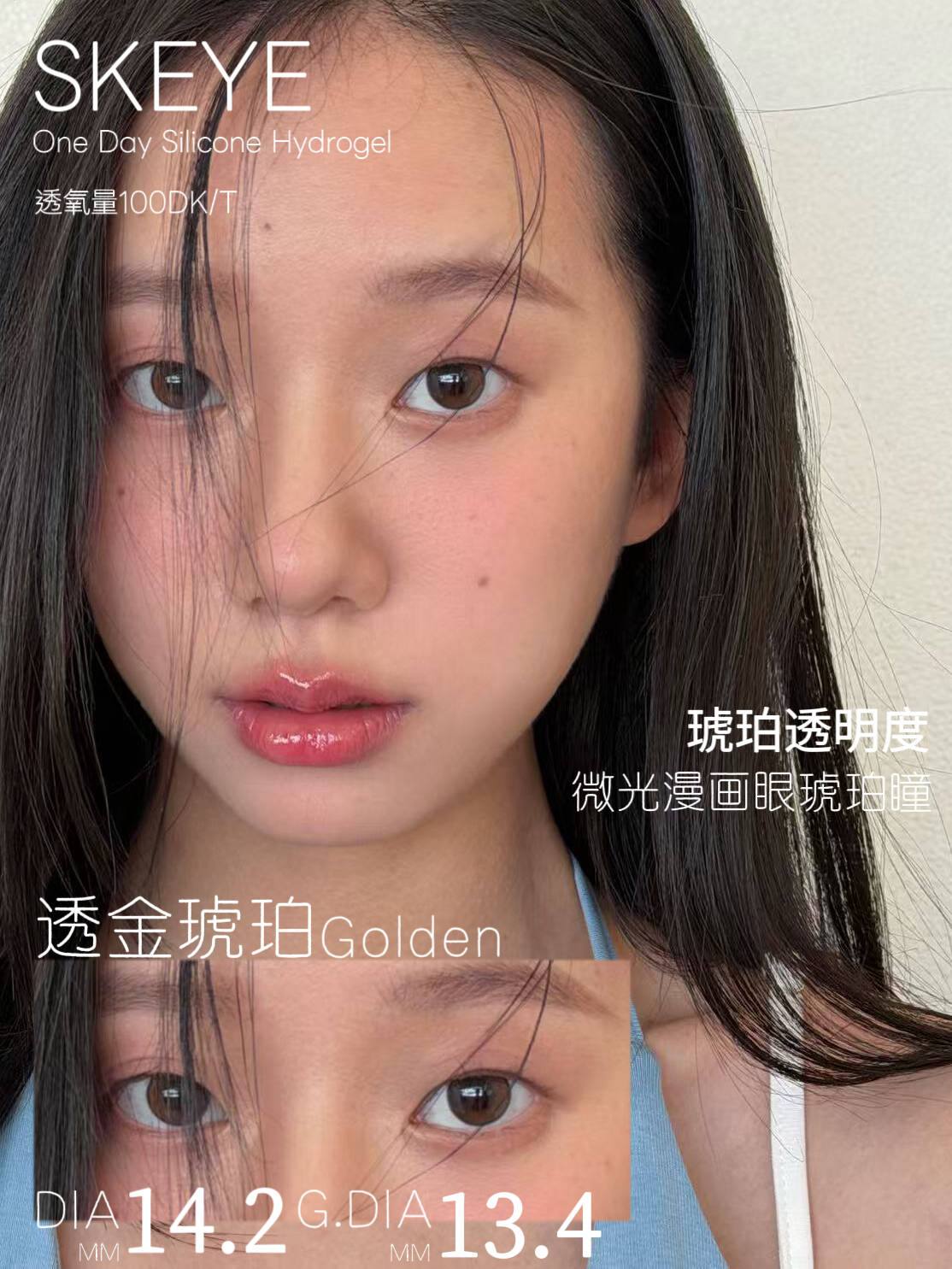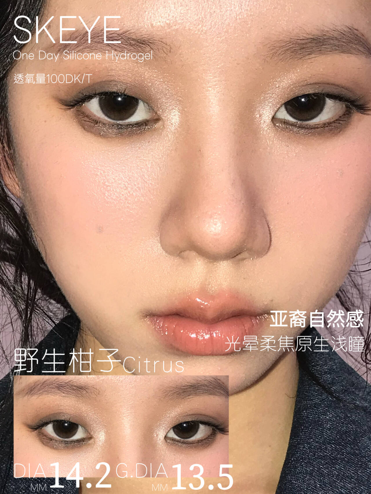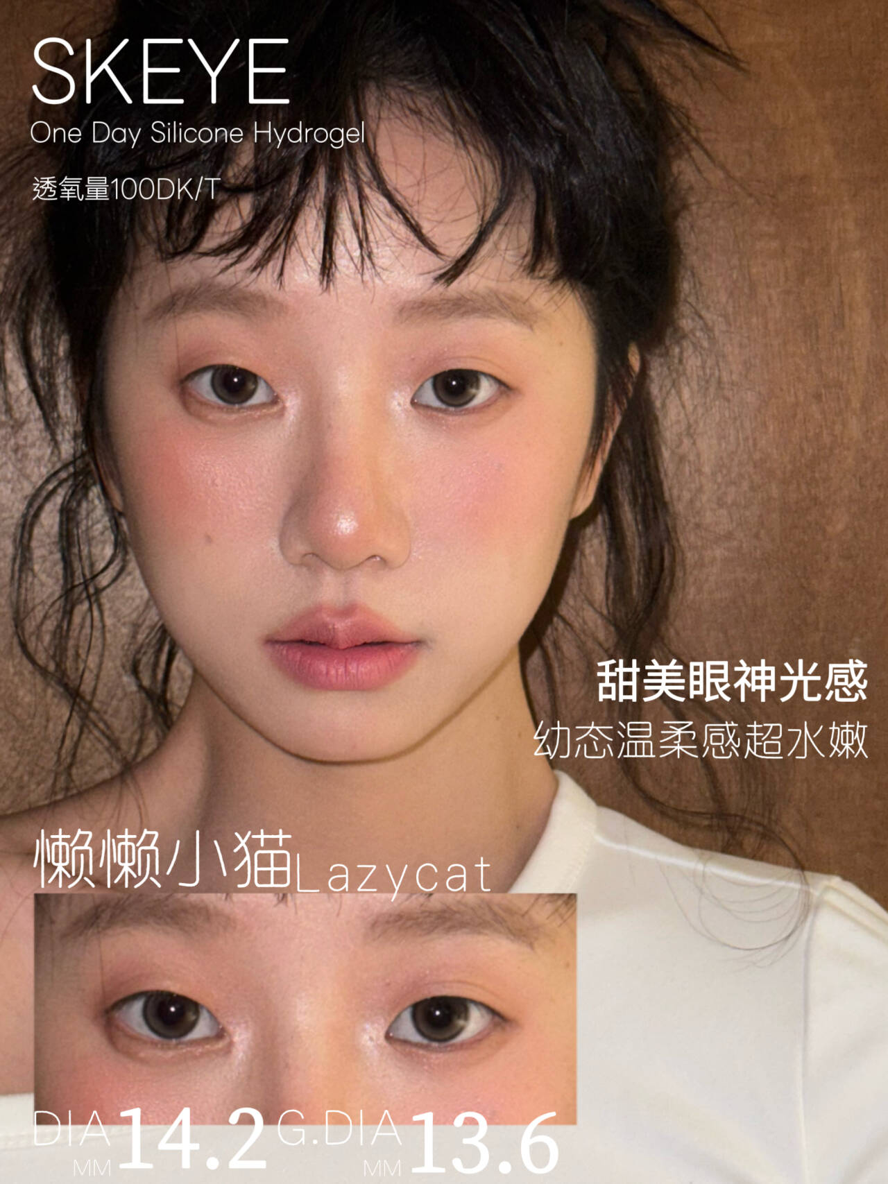 skeye日抛 淡颜星人/韩系水光/懒懒小猫/水光滤镜/透金琥珀/野生柑子 14.2mm 日抛无售后!!棕黑 硅水凝胶
