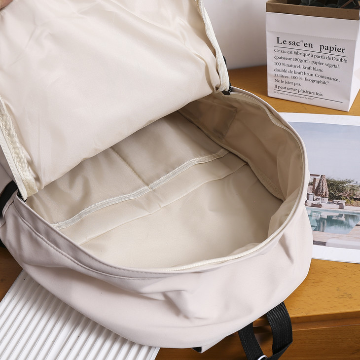 米白色/黑色/蓝色/灰色这四个颜色非常百搭不挑人背,男女生这四色都可以轻松驾驭!设计感满满的书包,百搭必备大容量,轻松收纳日常用品,出行更加轻松。多隔层设计让你的物品井井有条寻找起来毫不费力加宽肩带设计减轻肩膀负担长时间背负也感觉舒适。无论是休闲还是正式场合这款书包都能满足你的需求成为你的时尚单品!