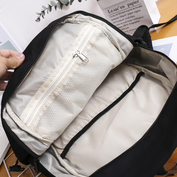 拉链顺滑不卡顿,还有外层的暗扣,超大容量设计,合理分区配置,既可以满足学生党书籍杂物零钱卡包等物品的合理收纳,又可以满足商务人士日常工作出差的物品归置,笔记本电脑可装,轻松学习,轻松办公。