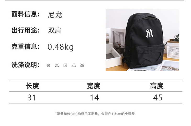 ⚠售后须知::不影响二次销售的情况下,支持七天无理由退换货,产品退回请保持产品包装完好,吊牌完整,否则不支持退换货服务。支持七天无理由退换货(配件齐全,不影响二次销售)MLB学院风双肩包