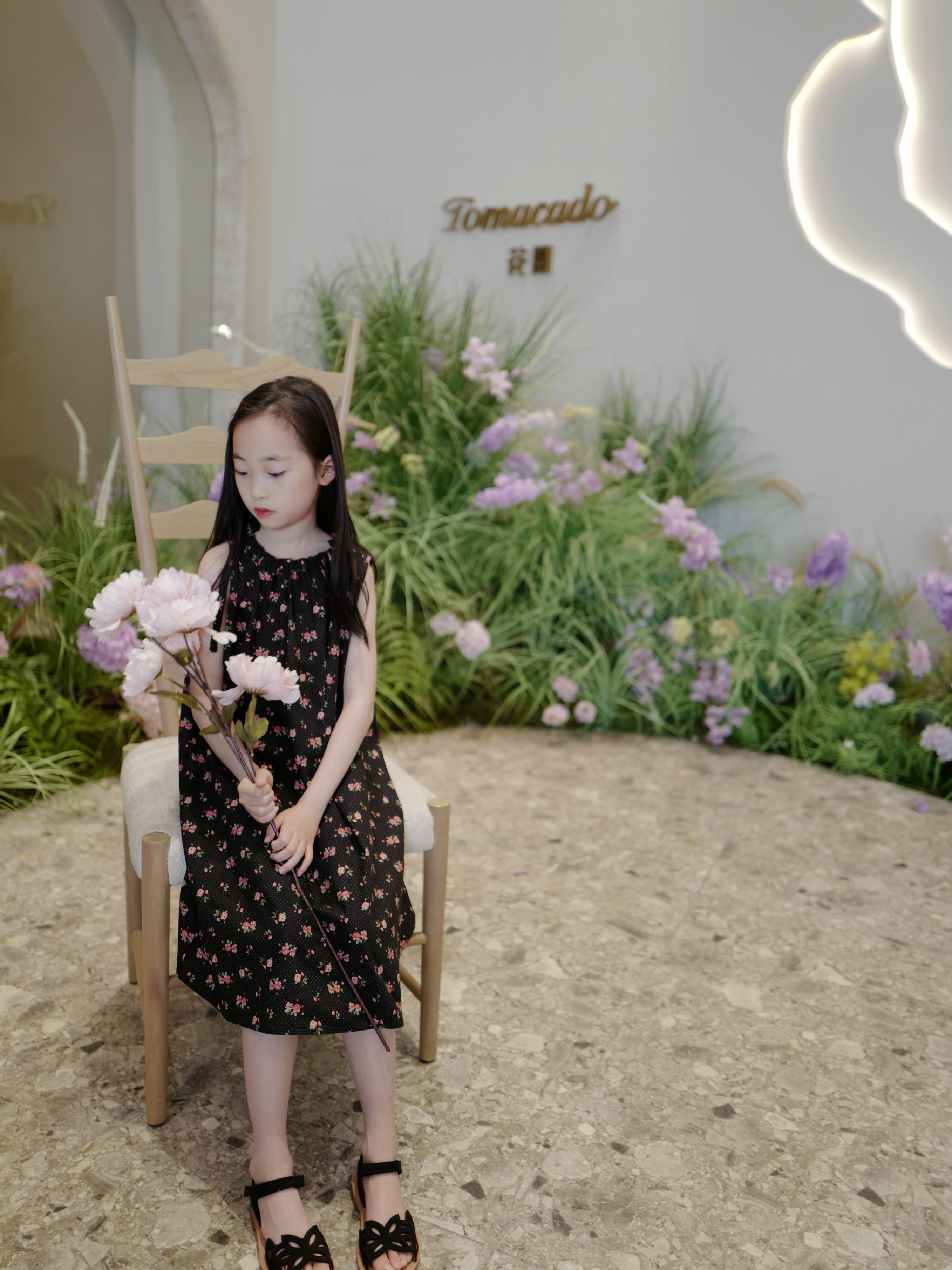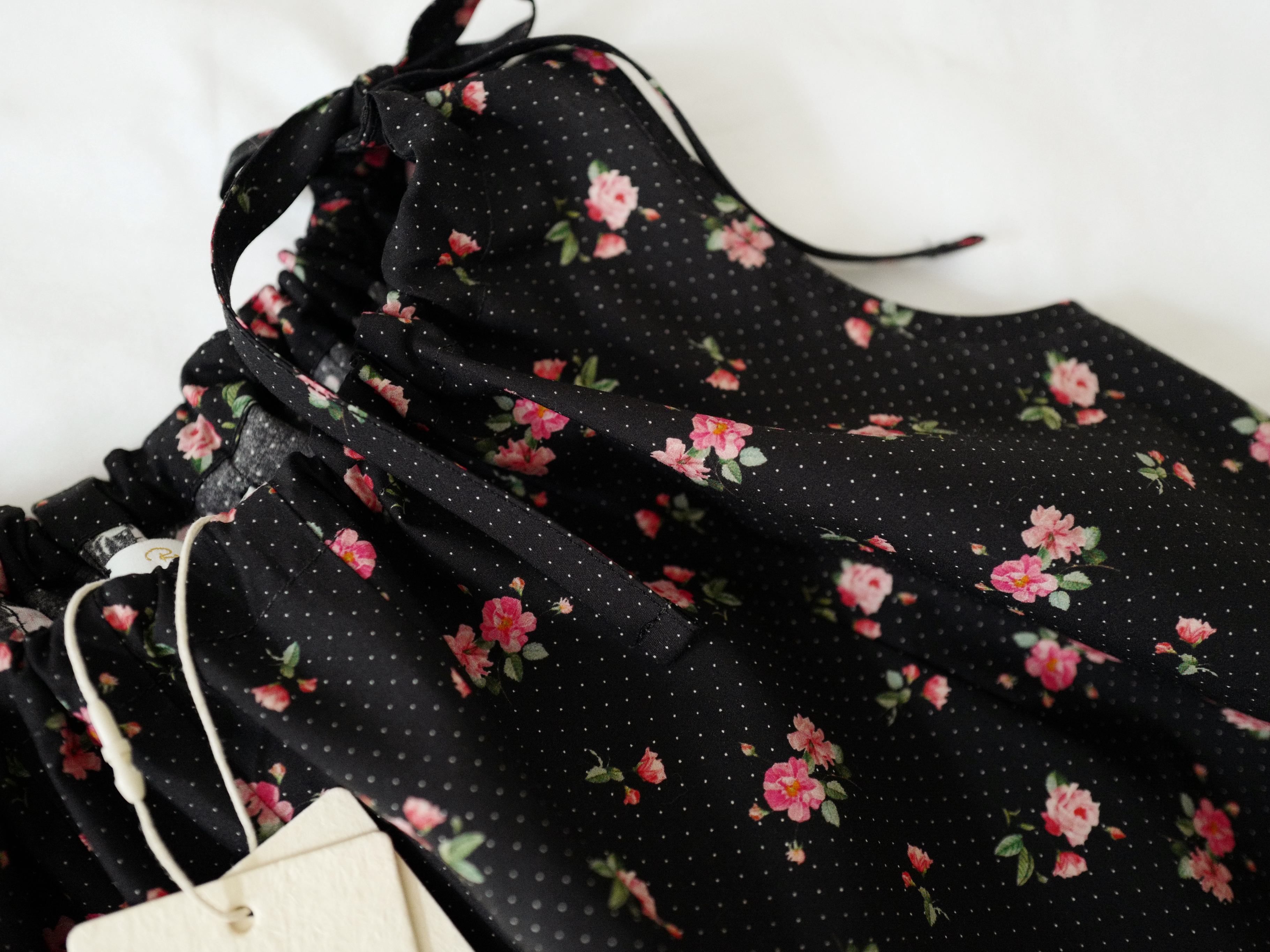 现货 / ROSE ROSE | 法式波点玫瑰系列 - 蝴蝶结度假感连衣裙 复古黑