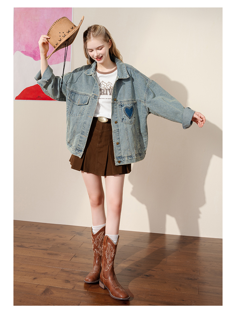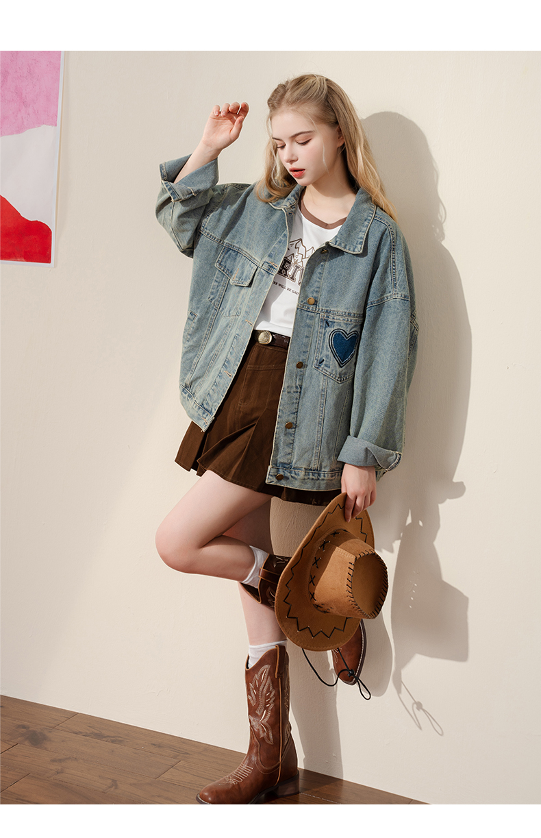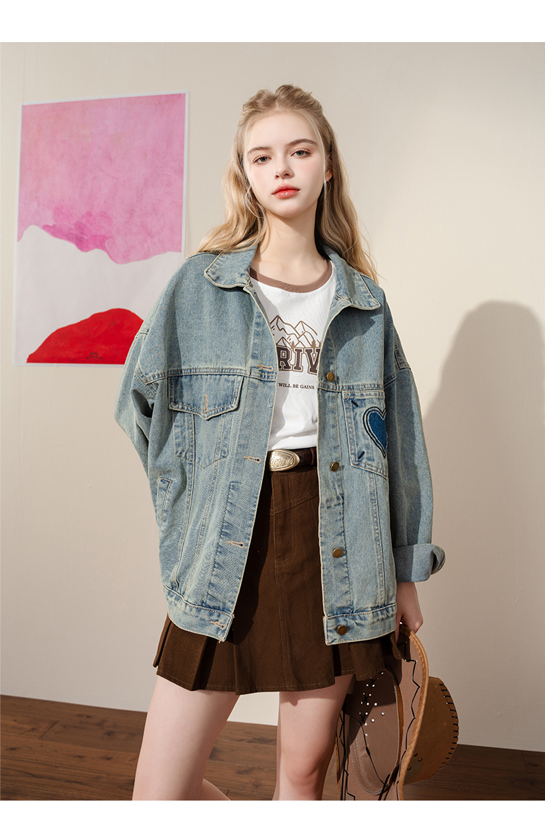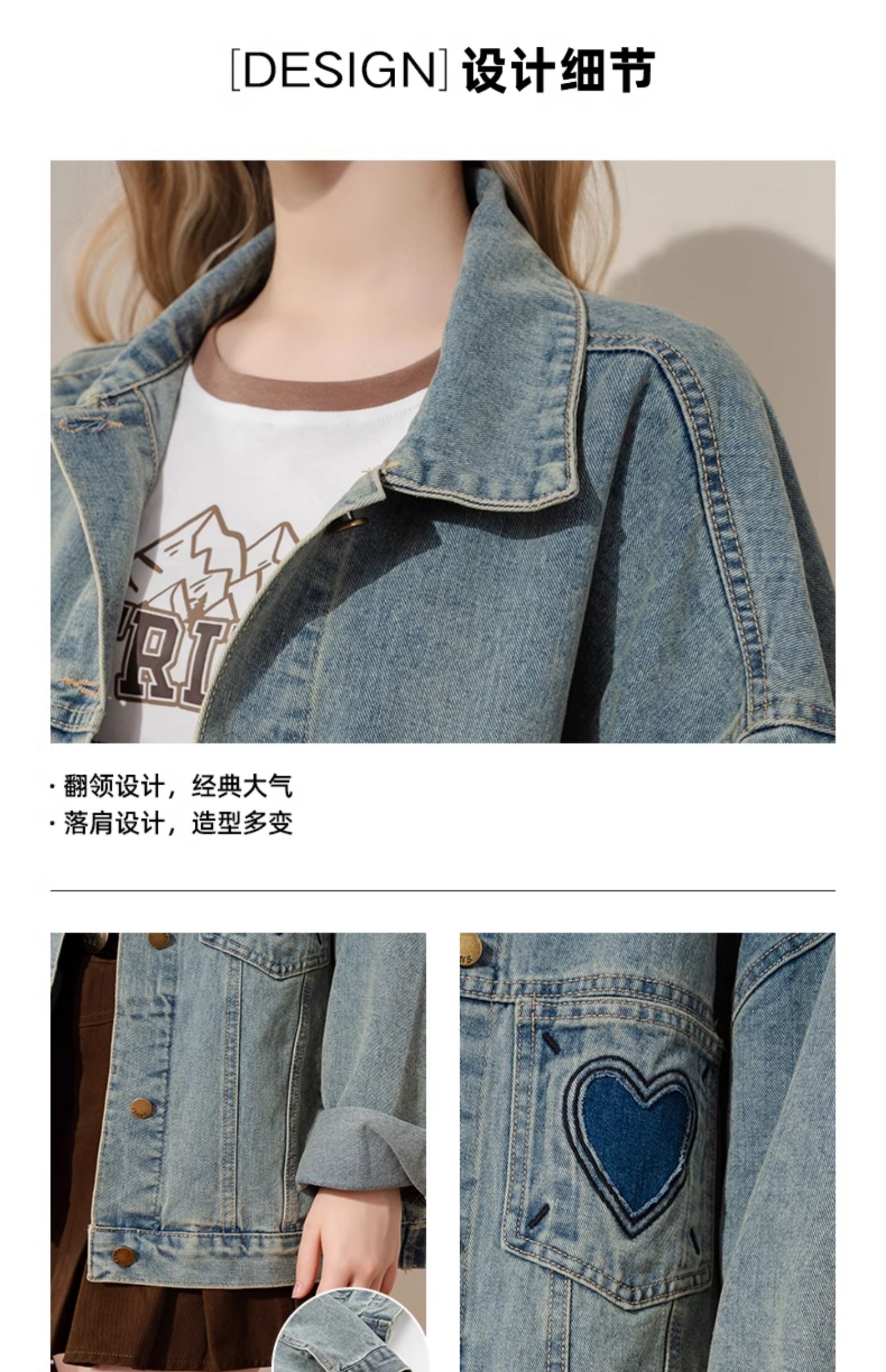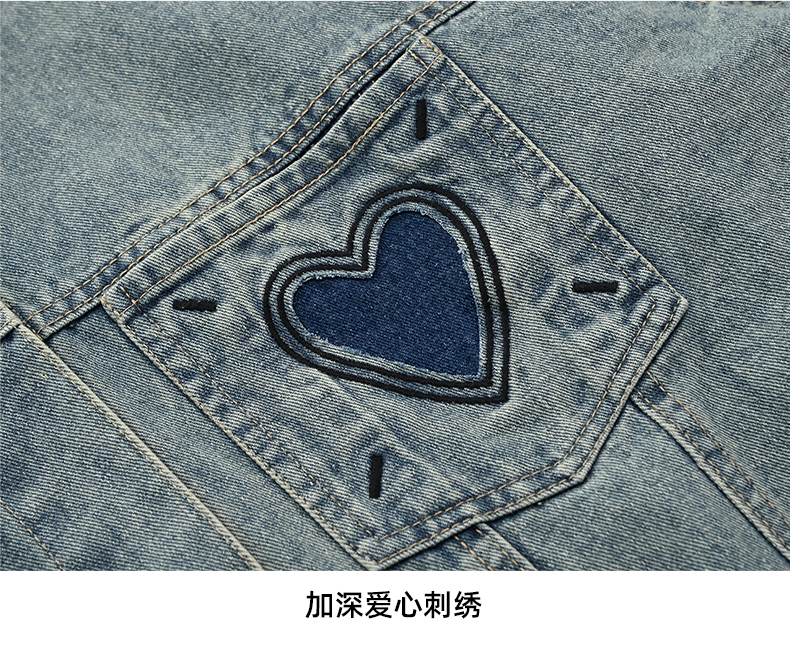 女装翻领爱心剪边牛仔外套-8736J4212017