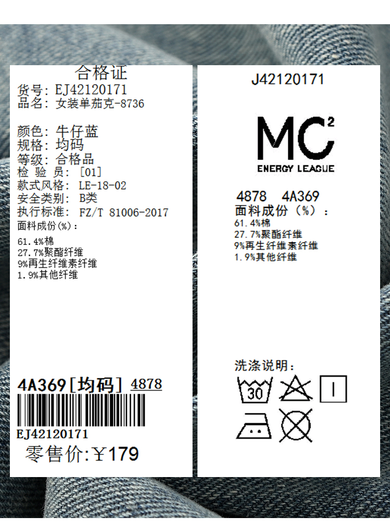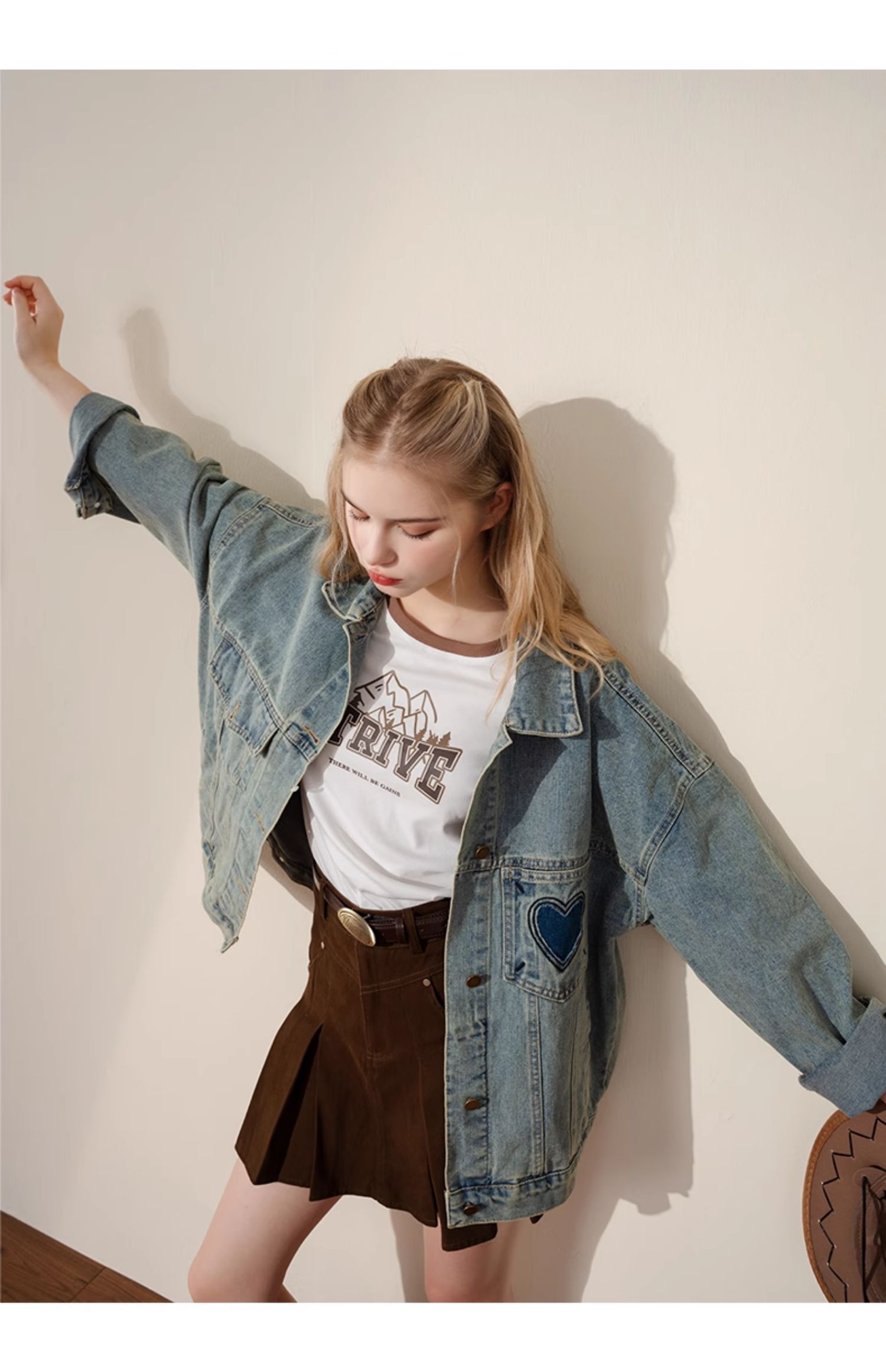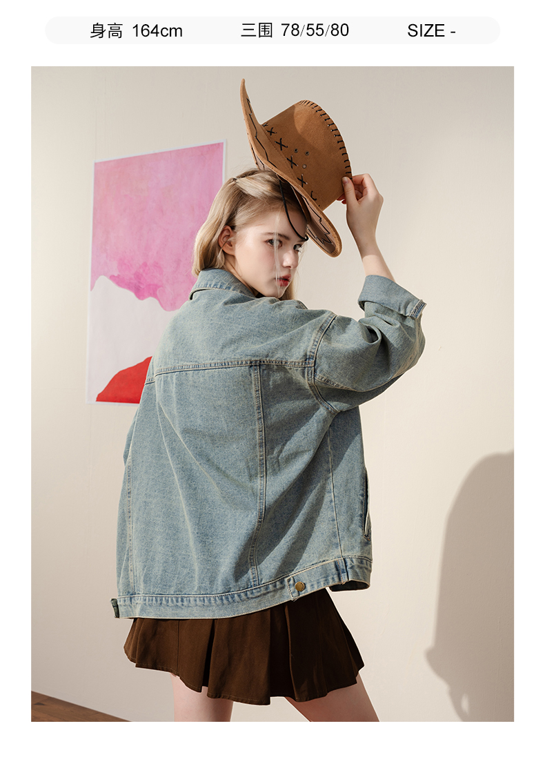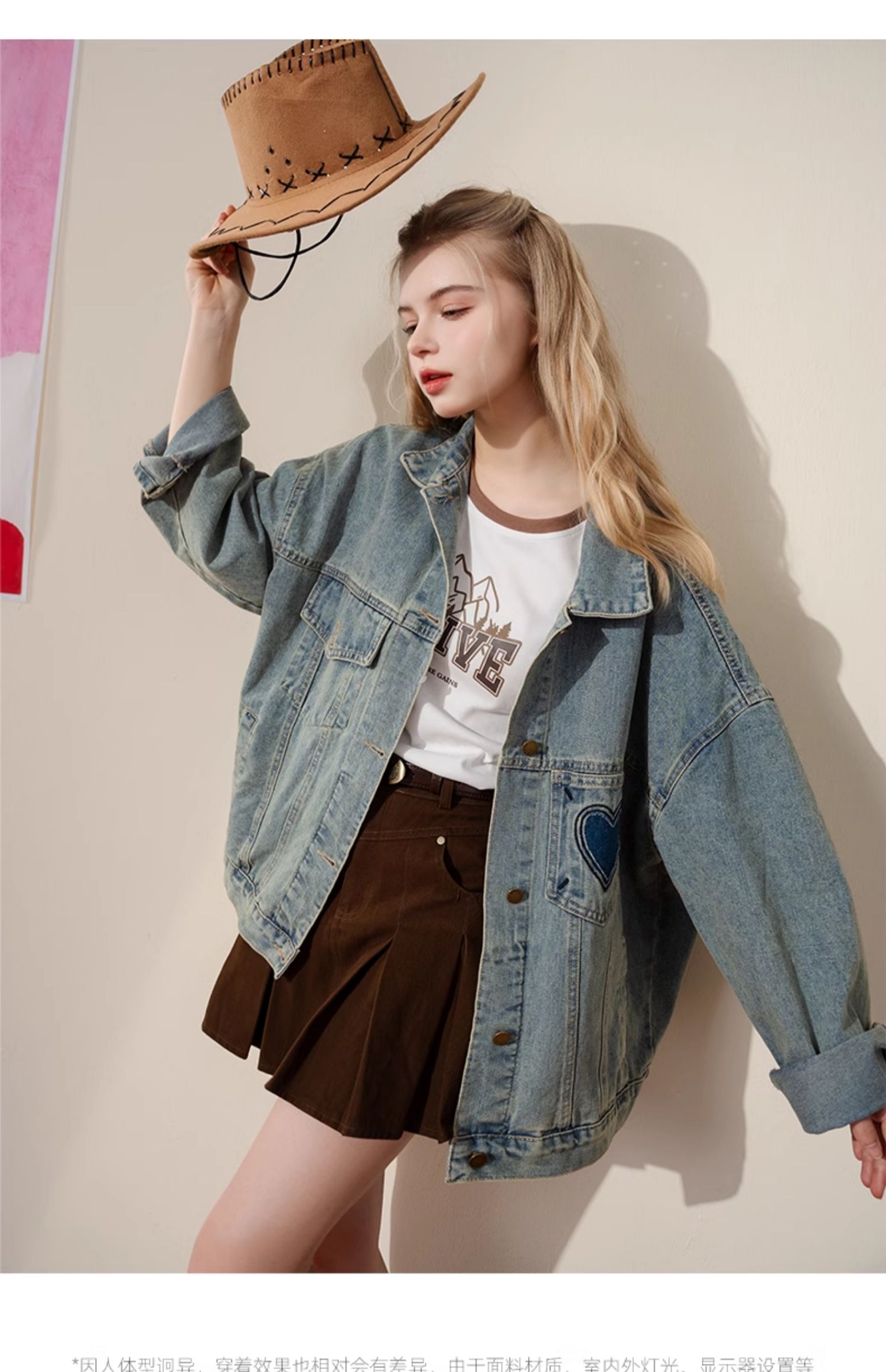 女装翻领爱心剪边牛仔外套-8736J4212017