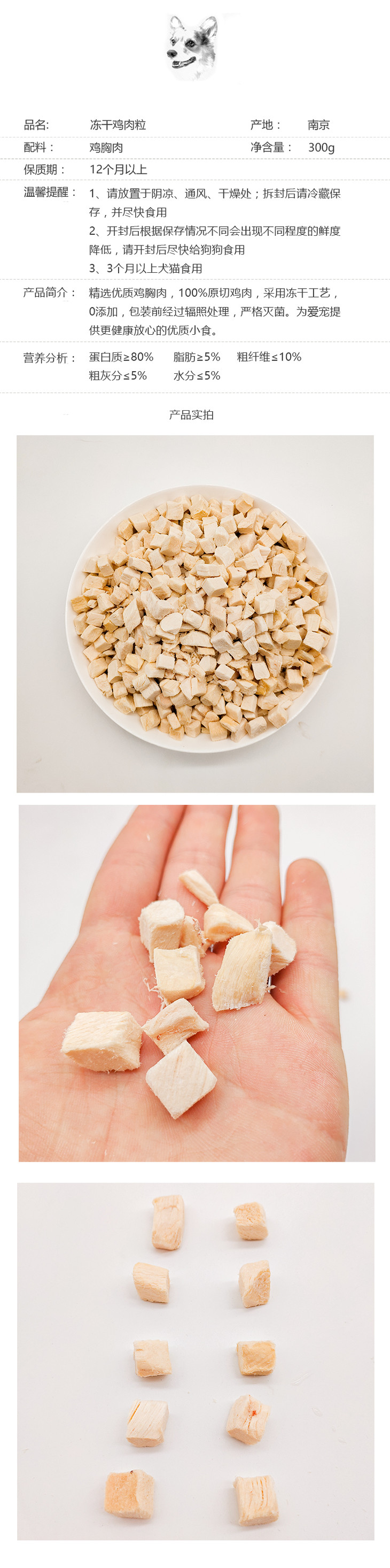 妮娜经典 犬猫通用冻干鸡肉粒200g