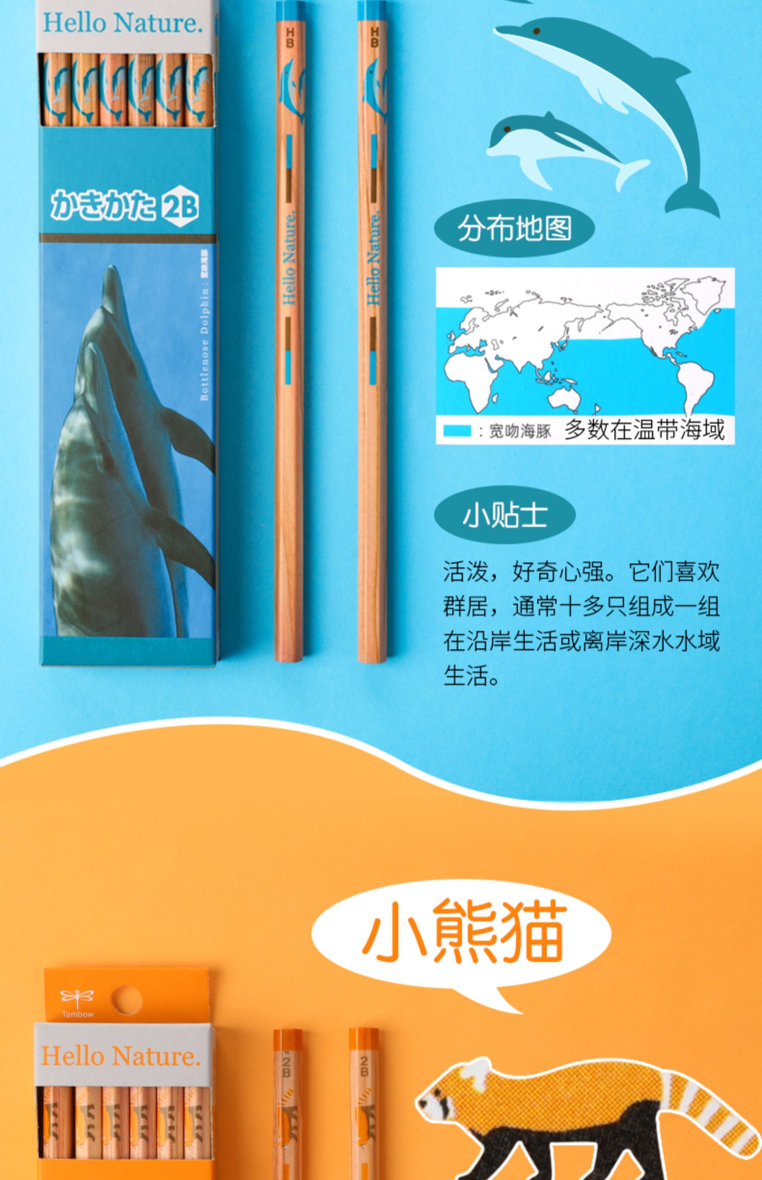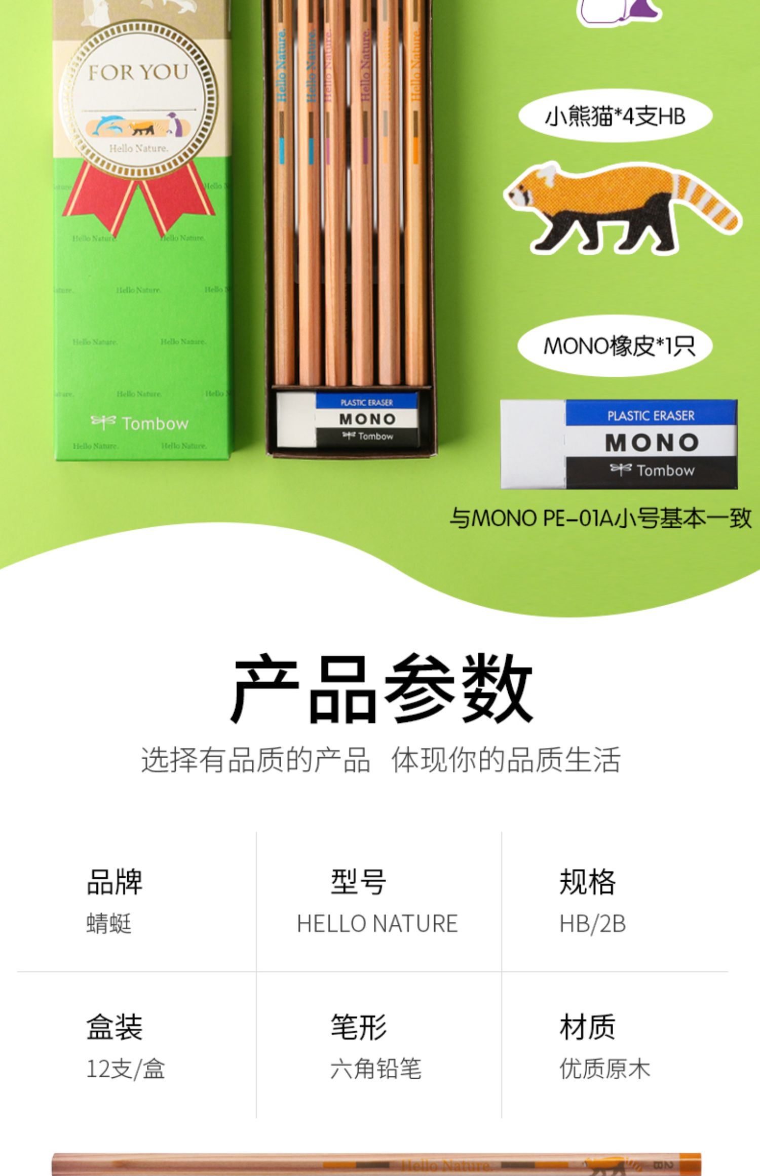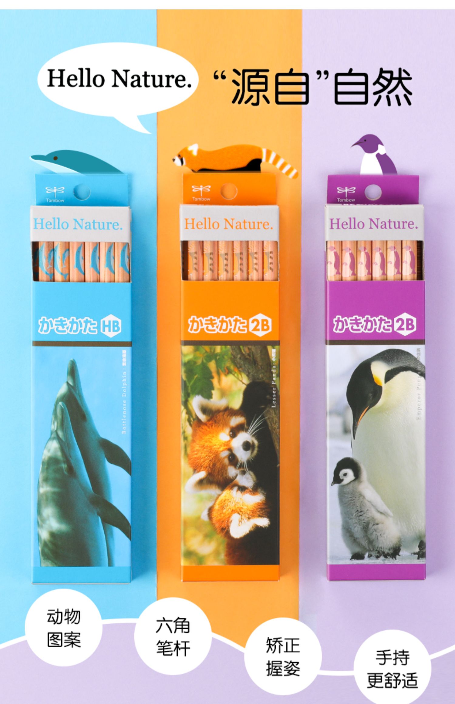 Tombow蜻蜓木头铅笔Hello Nature小学生考试绘图HB素描矫正握姿写练字2B 一年级儿童原木铅笔