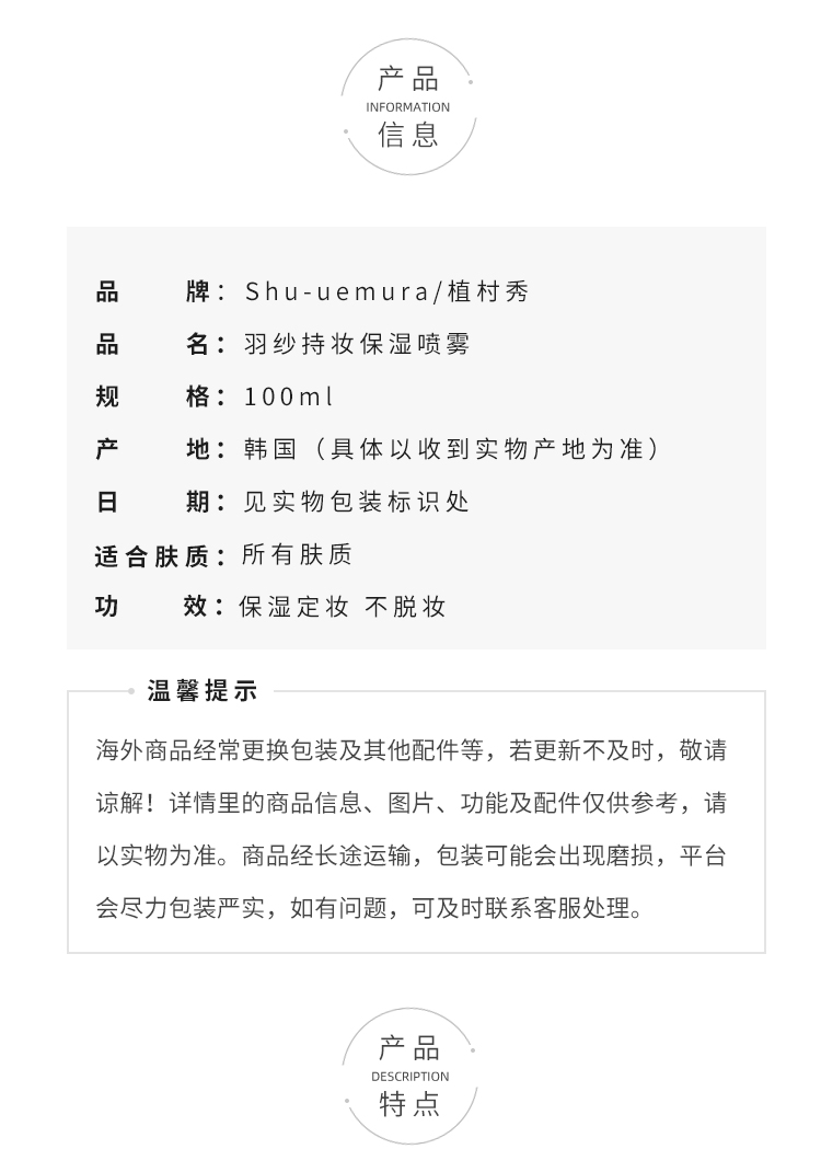 Shu uemura植村秀小黑胶定妆喷雾羽纱持妆保湿喷雾持久不脱妆