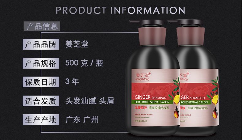 生姜洗发水防脱发生发密发增长液无硅油控油去屑洗发露套装