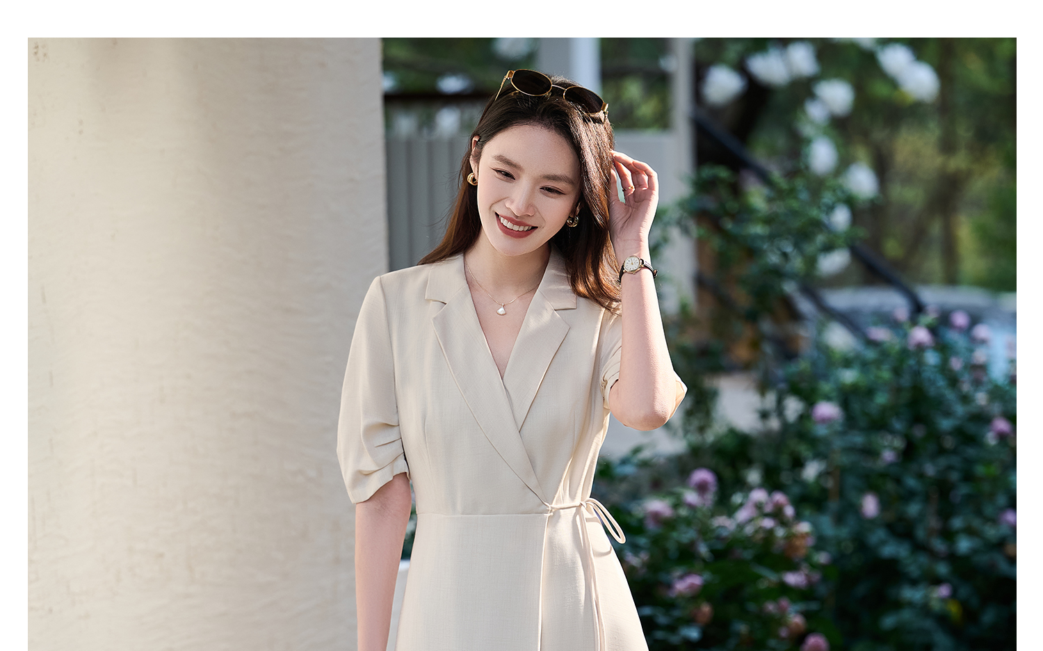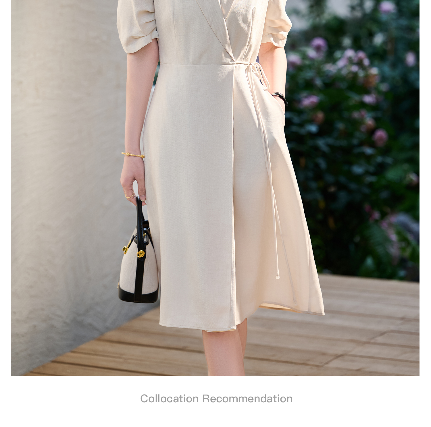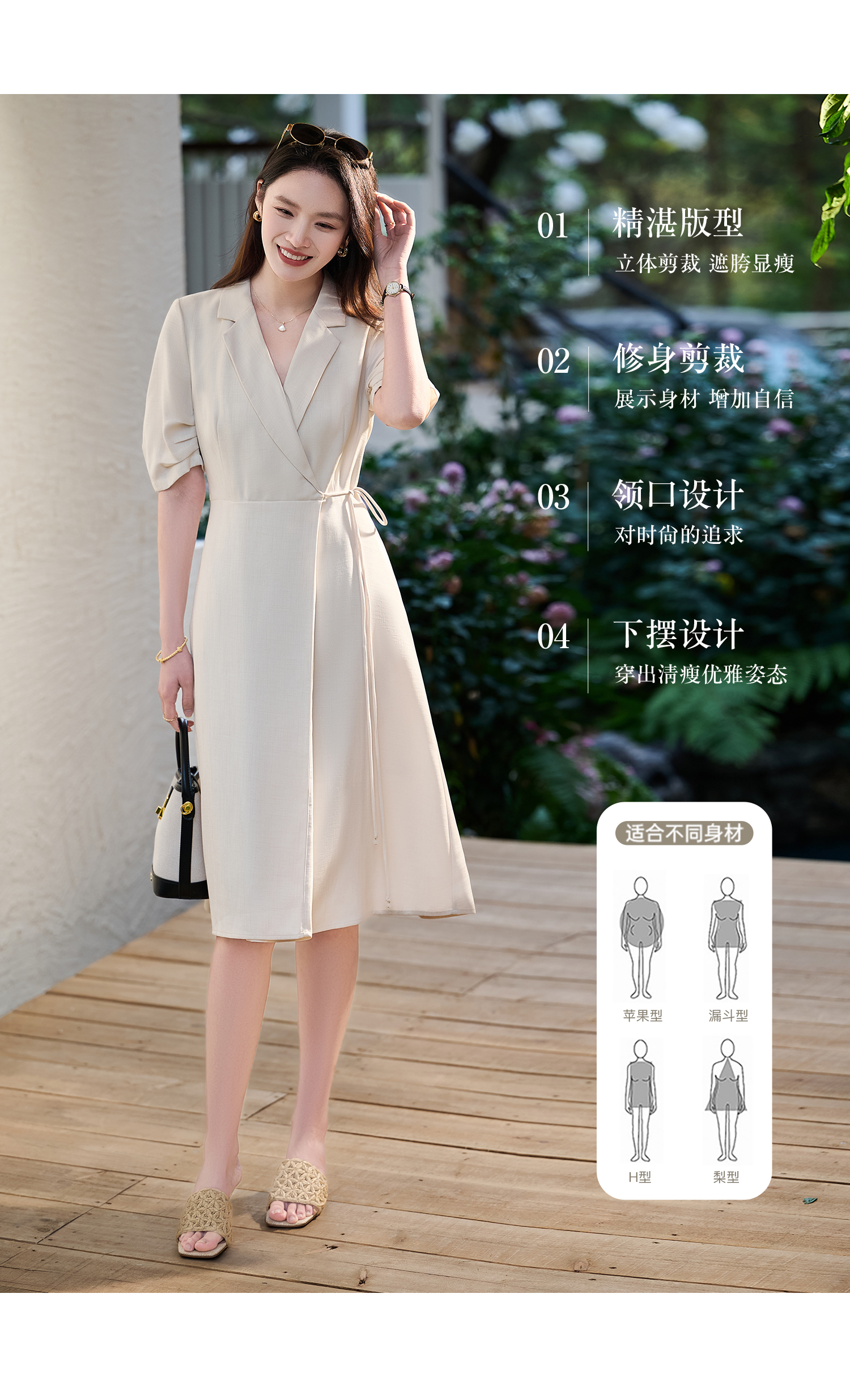 米思阳2026春新款通勤优雅修身连衣裙西装领系带收腰a字裙1018