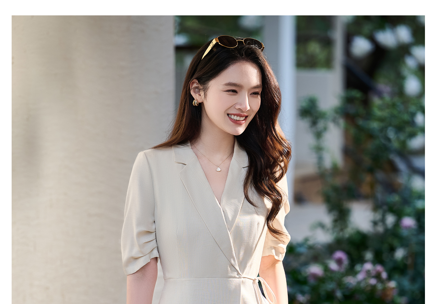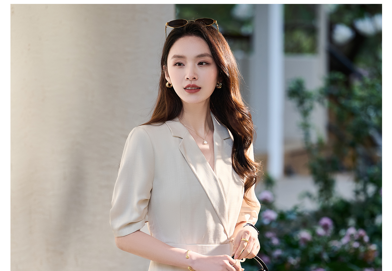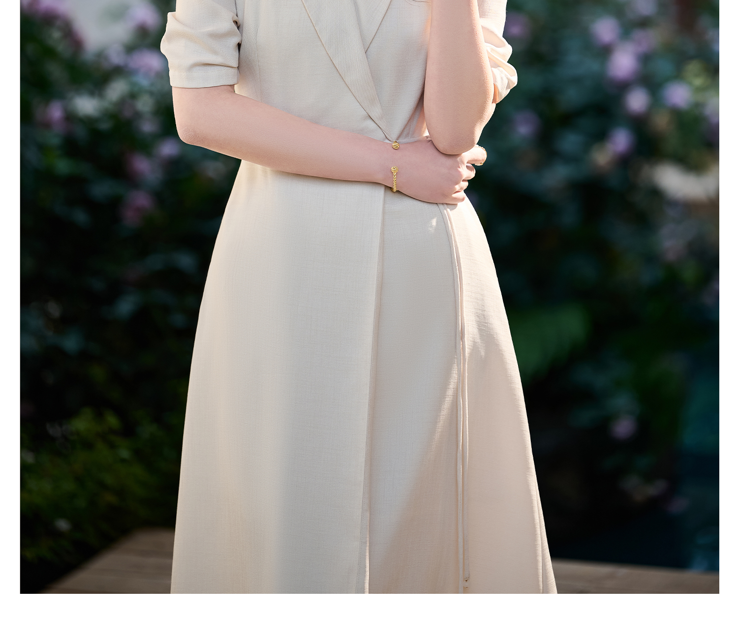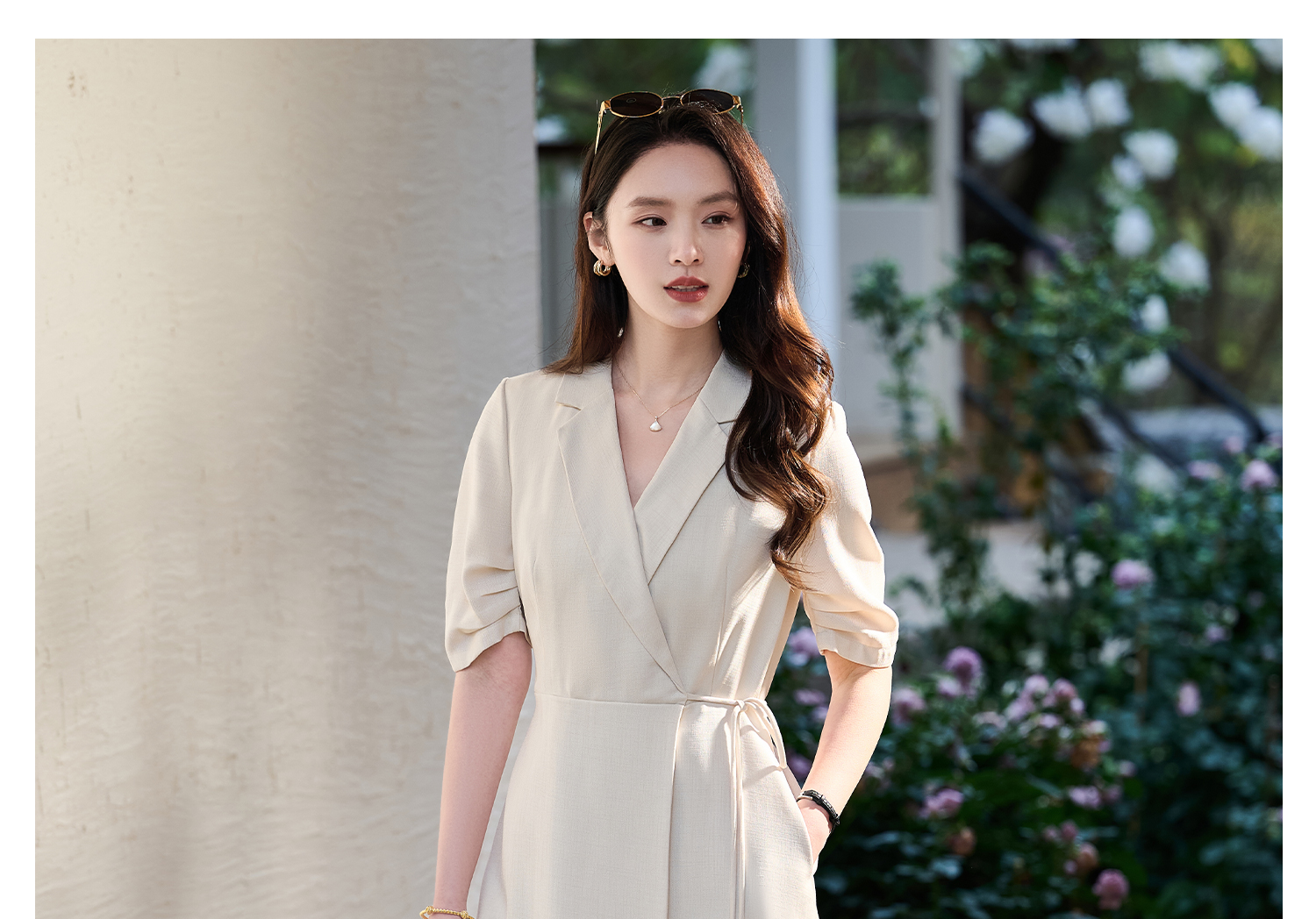 米思阳2026春新款通勤优雅修身连衣裙西装领系带收腰a字裙1018