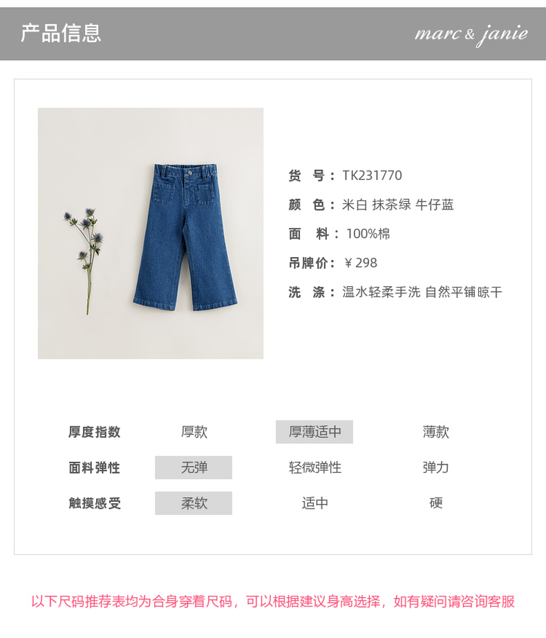 【马克珍妮 芦芙】秋装新款 女童纯棉修身牛仔裤喇叭裤231770
