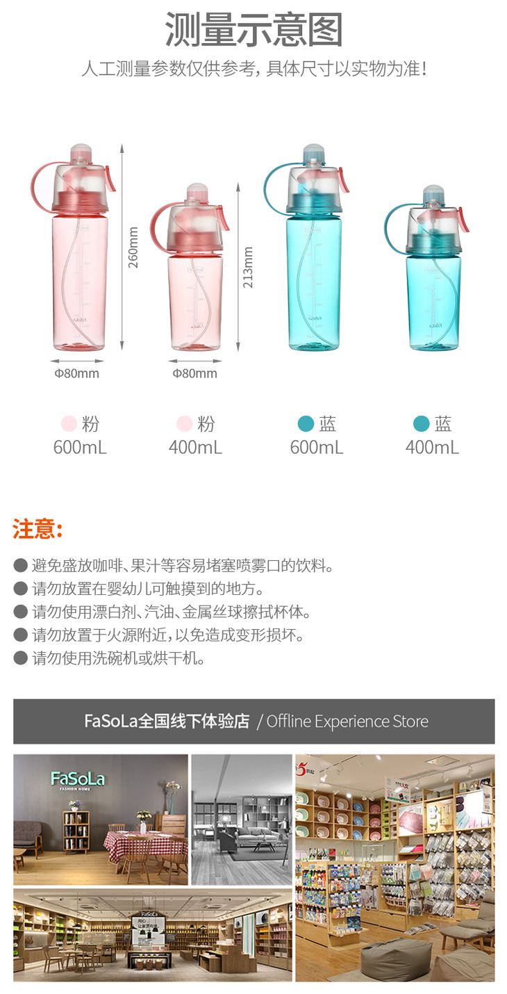 FaSoLa 喷雾水杯 塑料运动水杯子夏天降温便携多功能随手杯