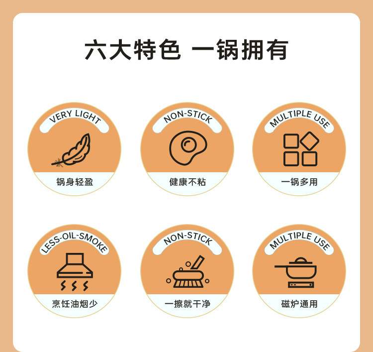 炊大皇橙心铝合金不粘锅煎锅26cm