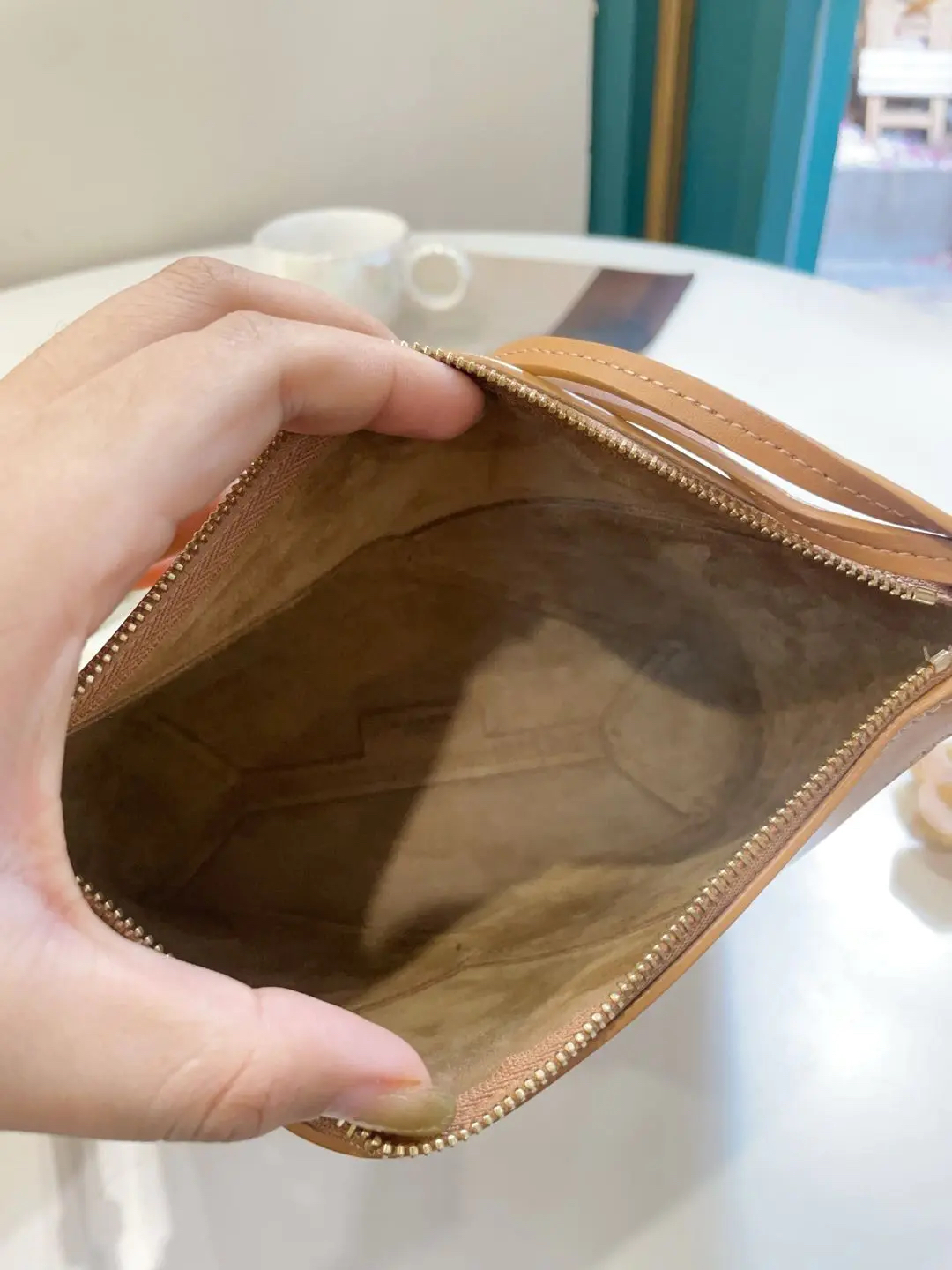 【商品详情】正品二手 罗意威 fold pouch 焦糖色 小号 纳帕小牛皮 折叠包🍂 97新 19×16 配件:防尘袋 肩带。24年新款 复古包型通勤出街都实用
