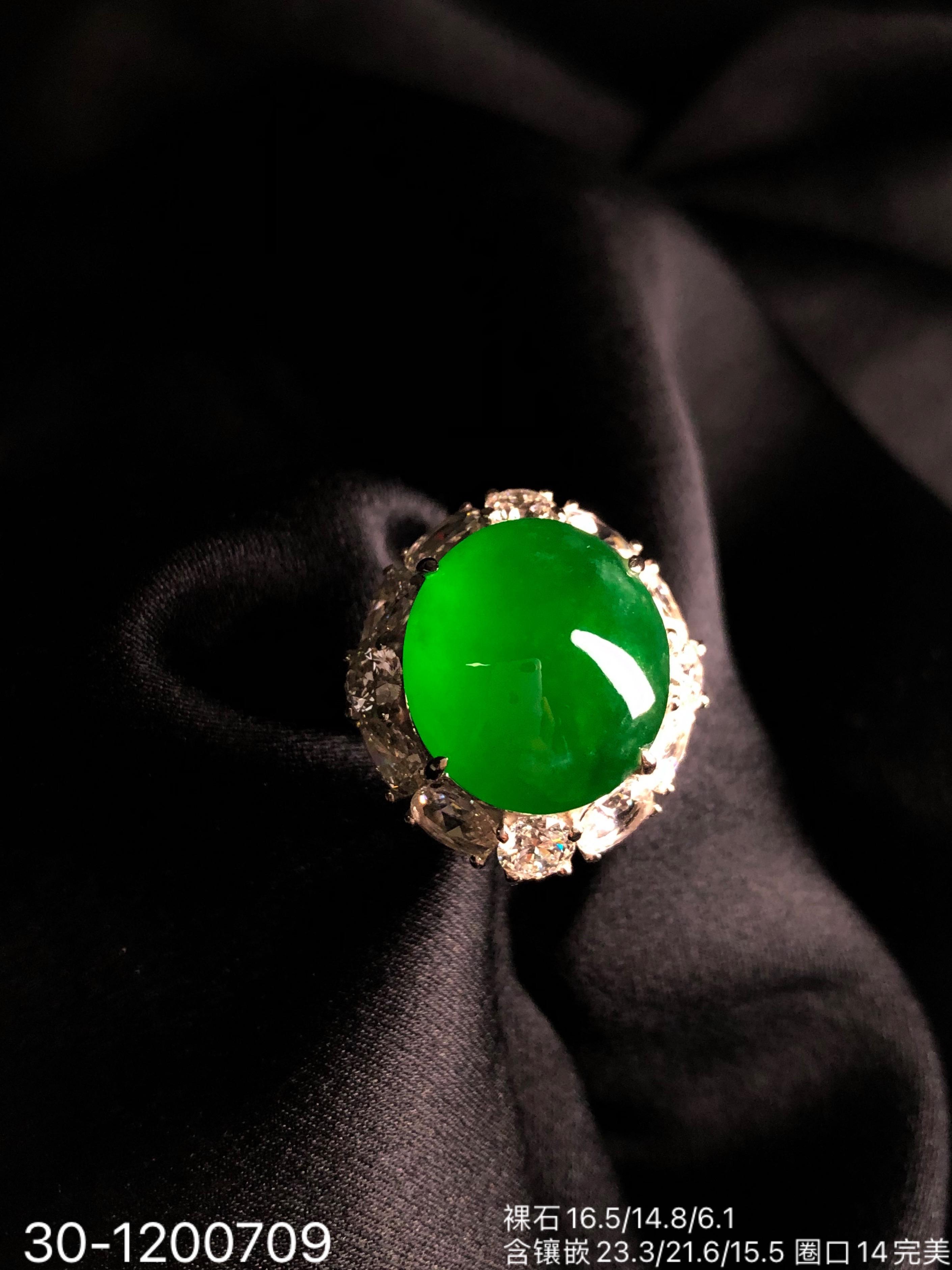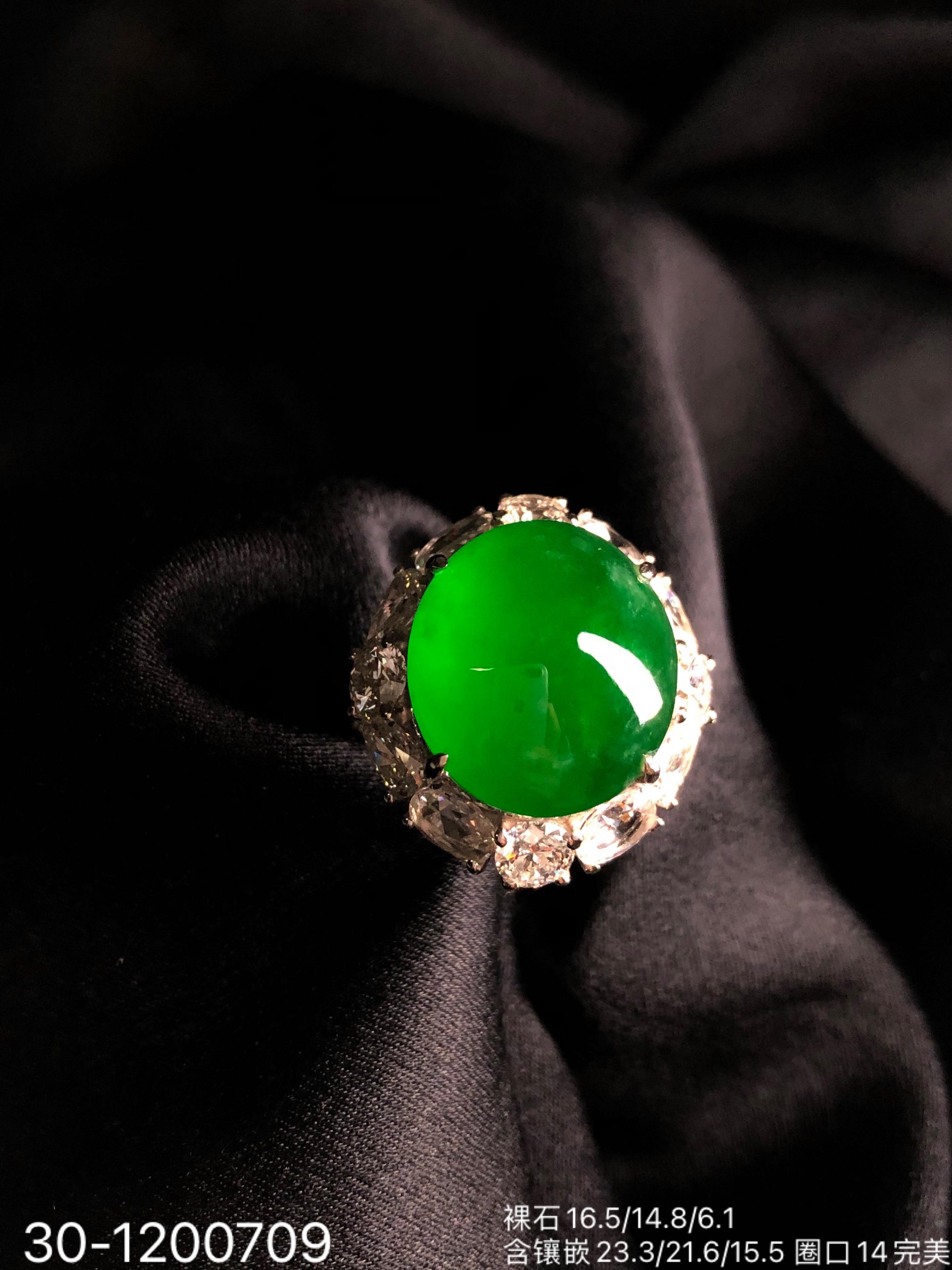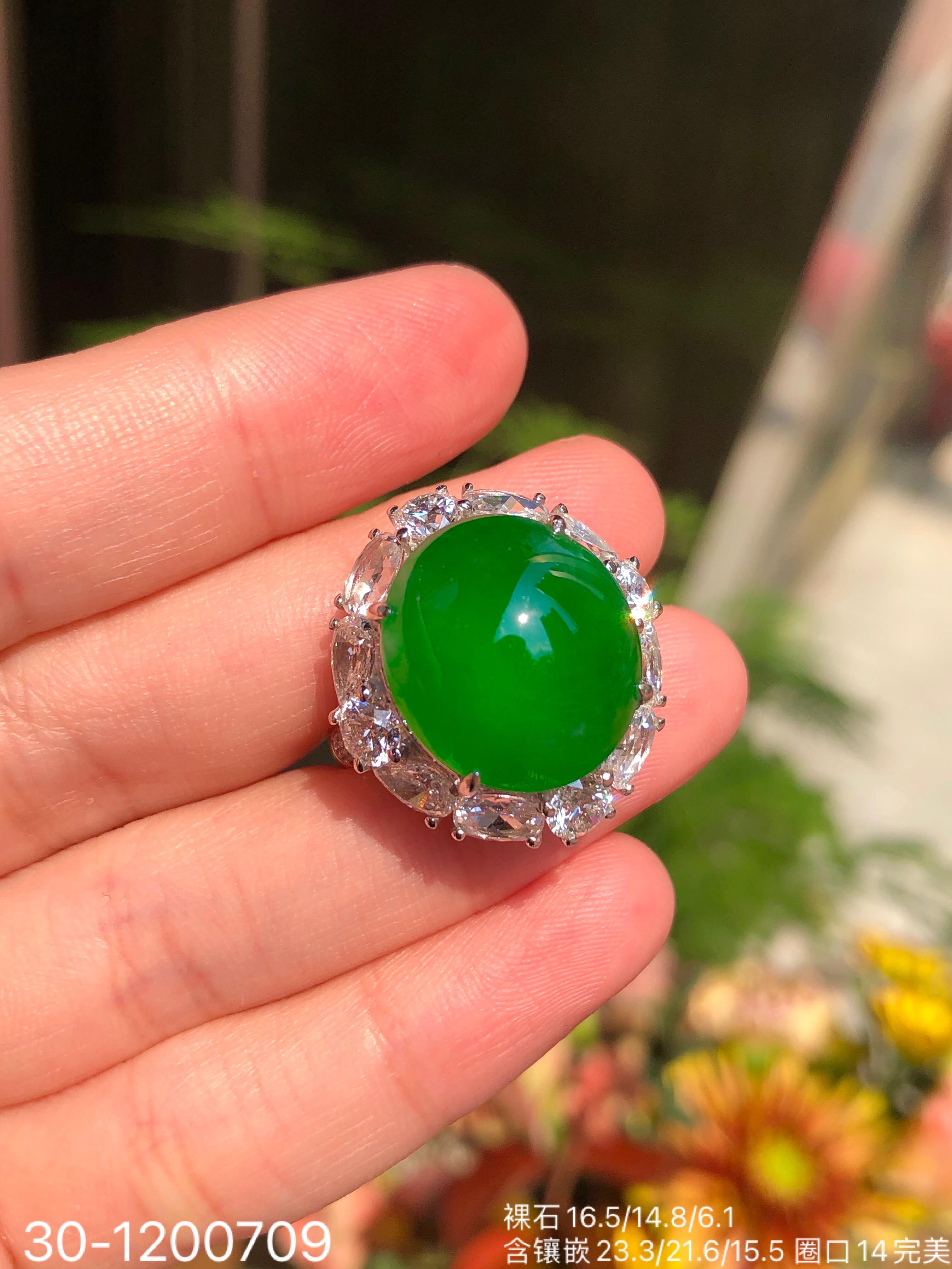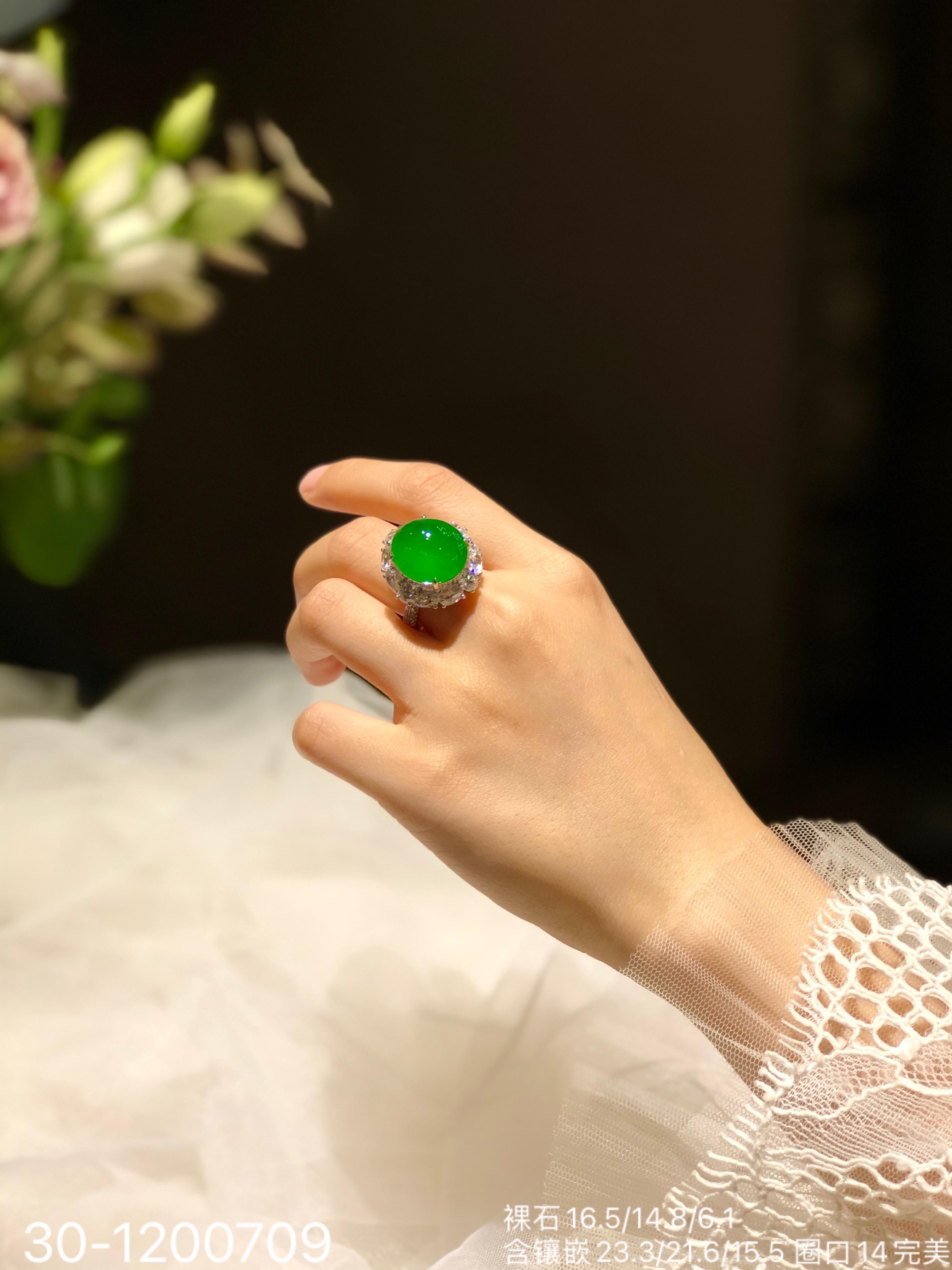 玻璃帝王绿蛋面戒指 30-1200709。具体价格微信咨询