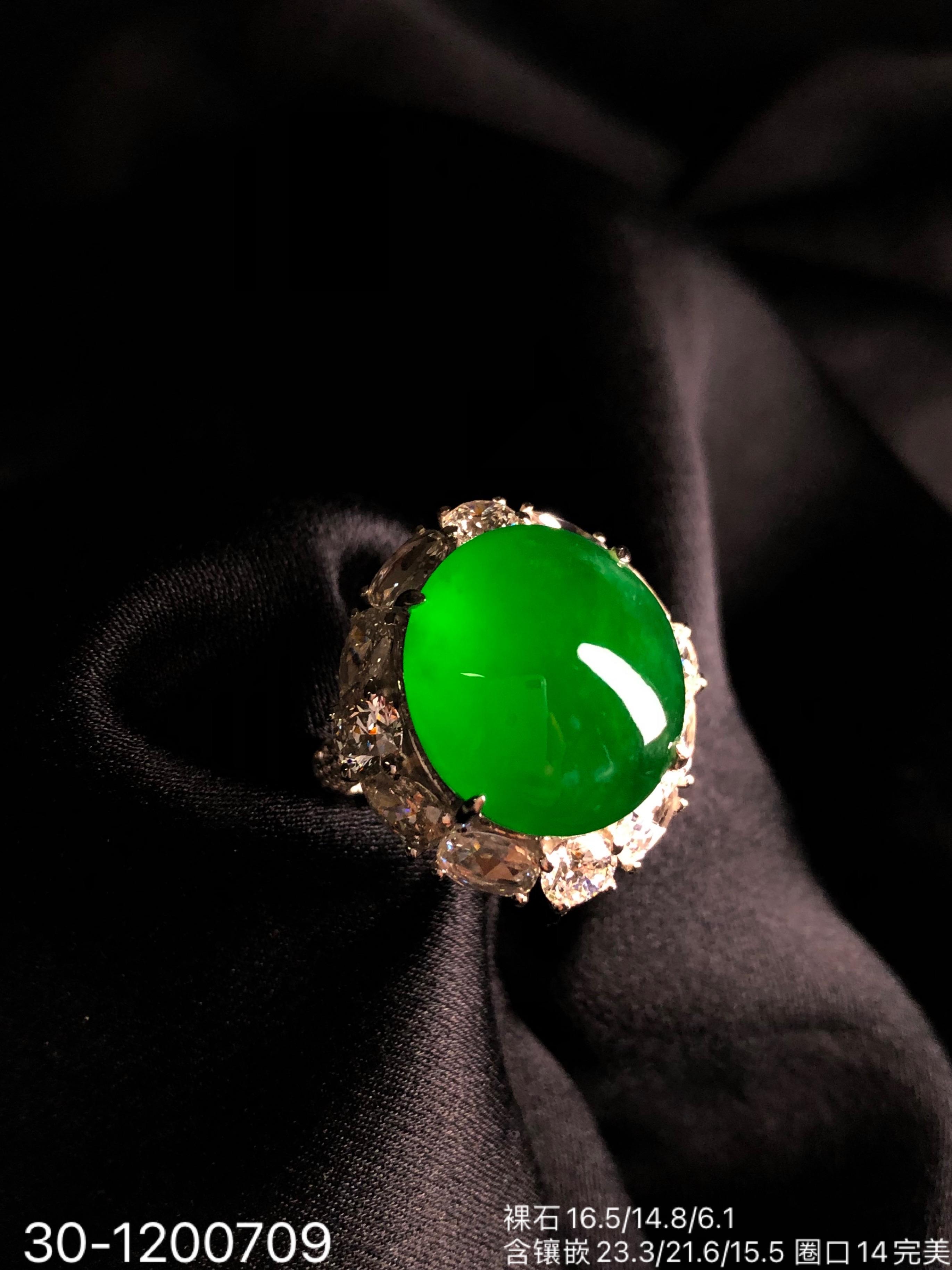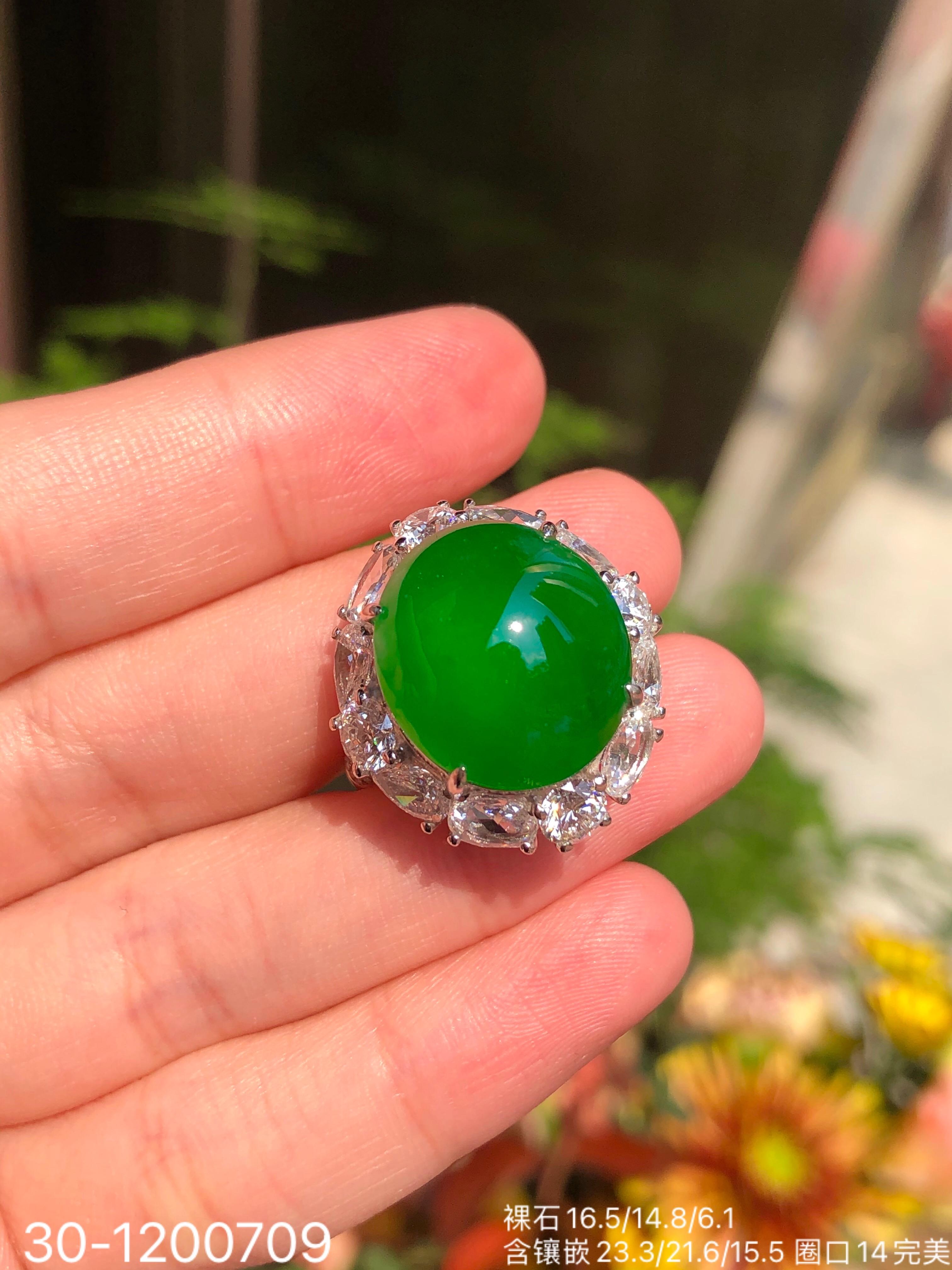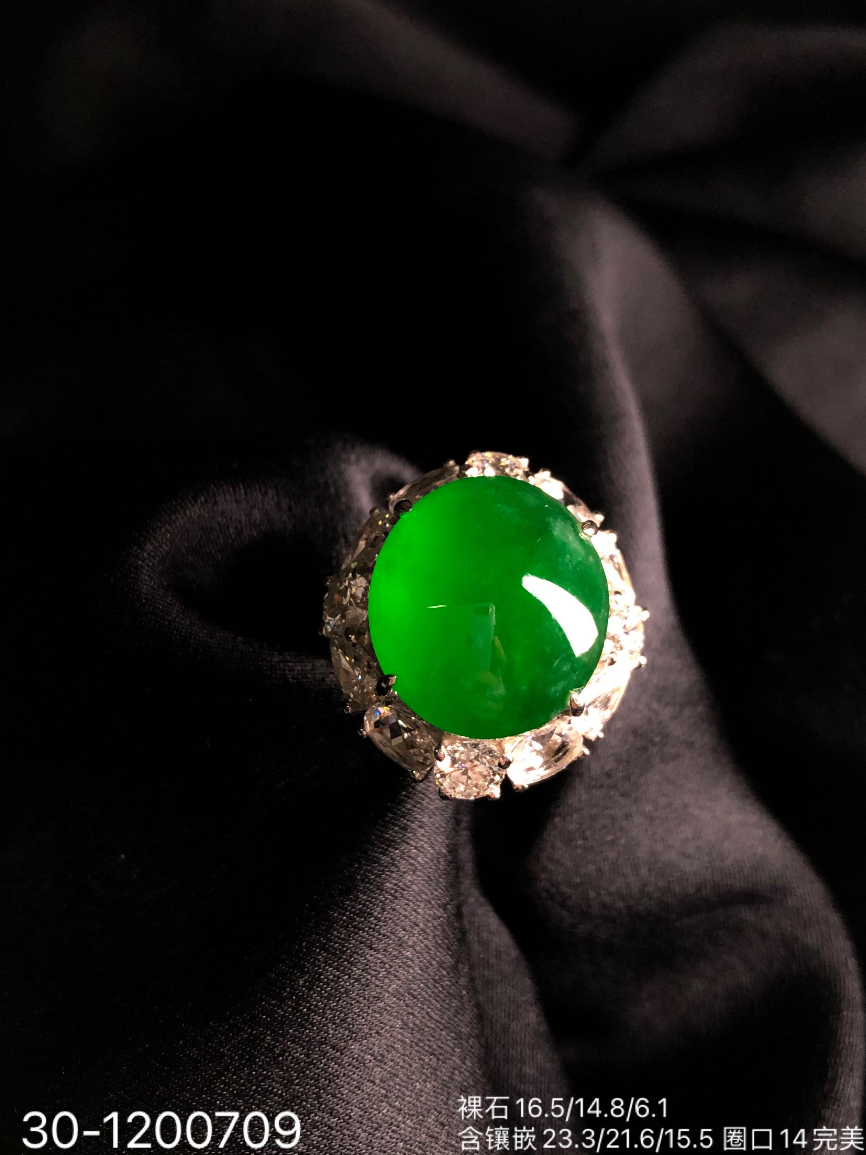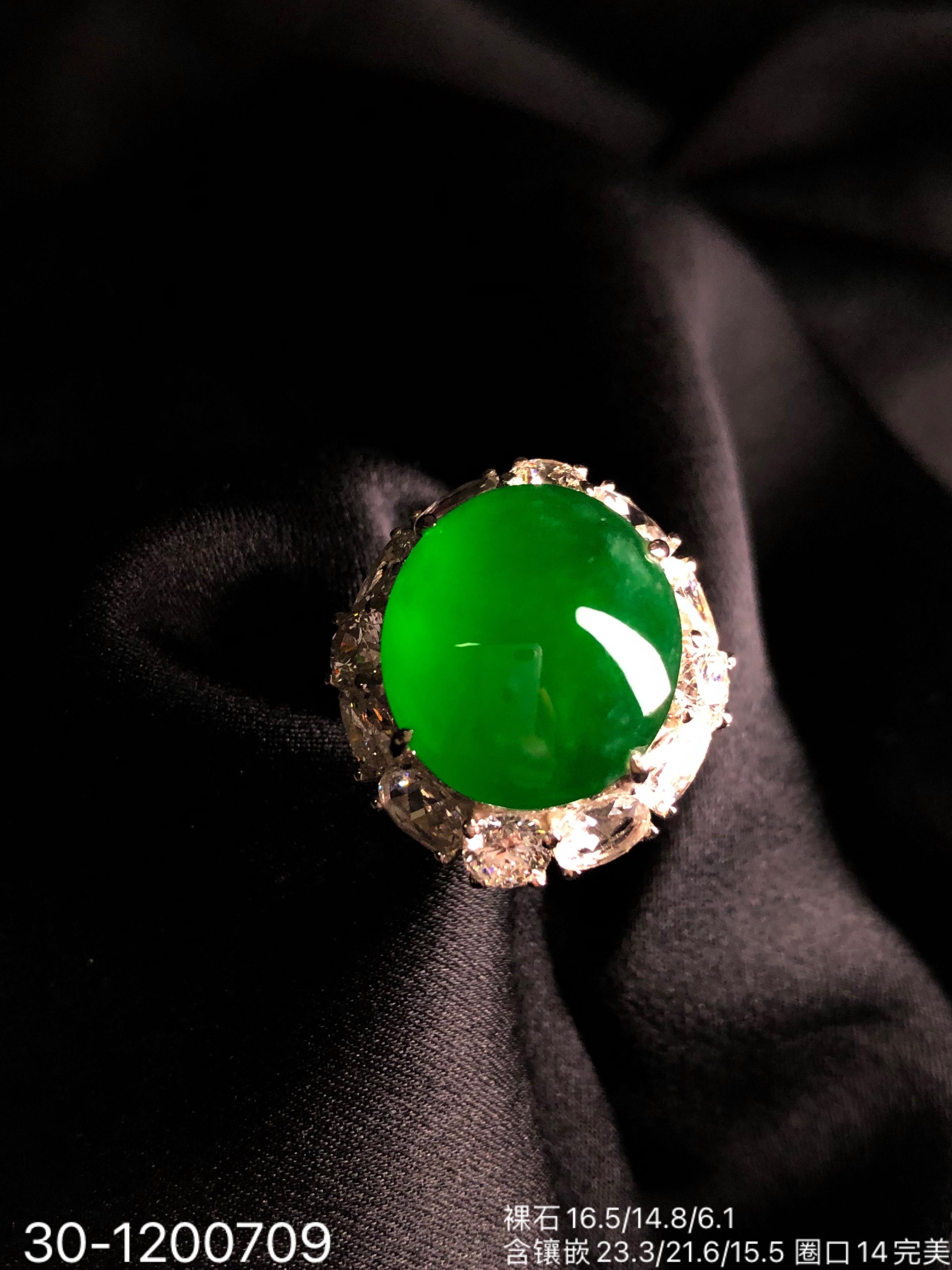 玻璃帝王绿蛋面戒指 30-1200709。具体价格微信咨询