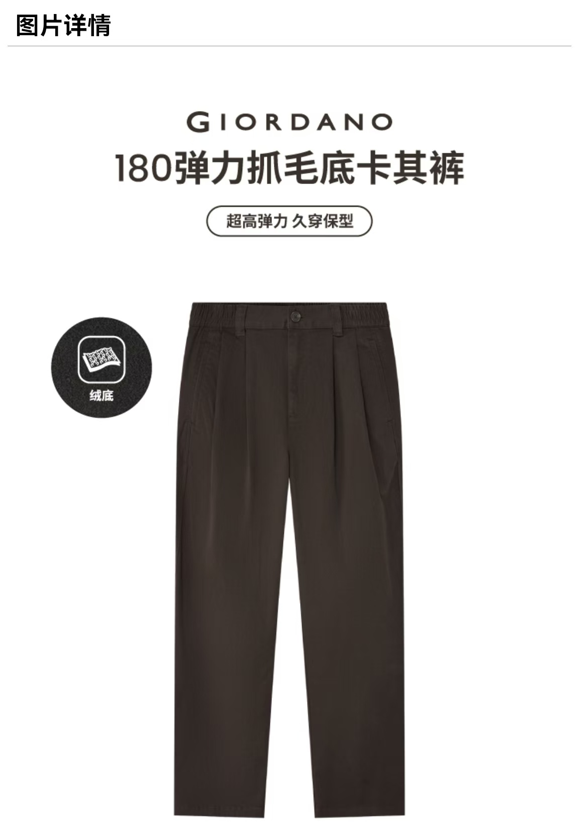 佐丹奴男装25年新款180度抓毛底卡其裤01115601