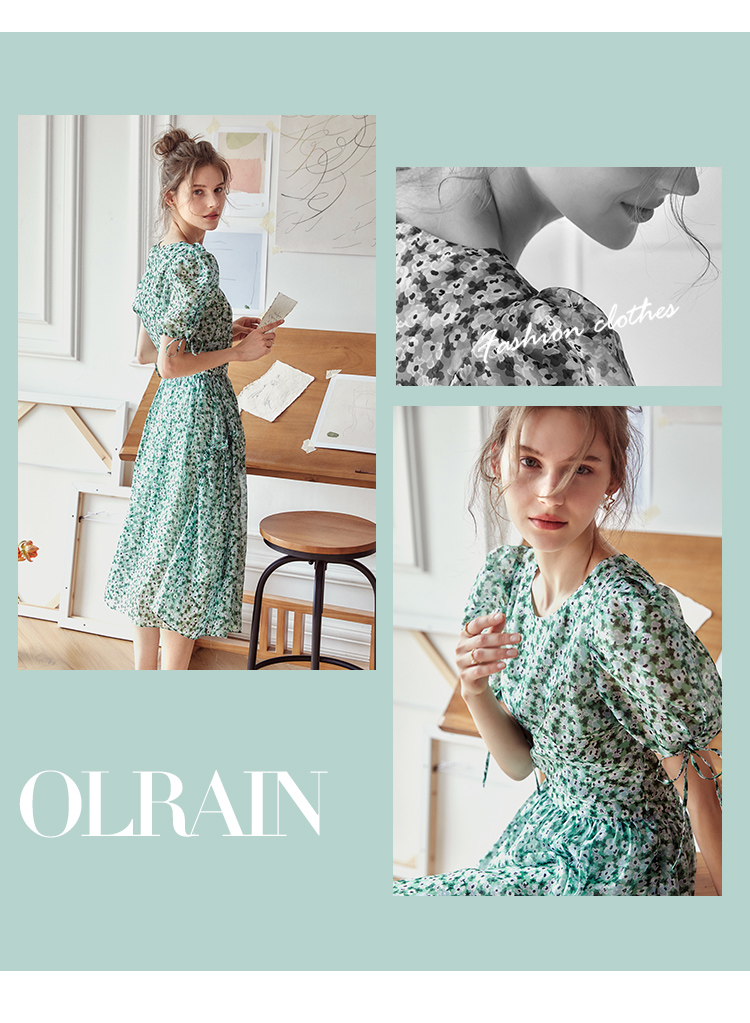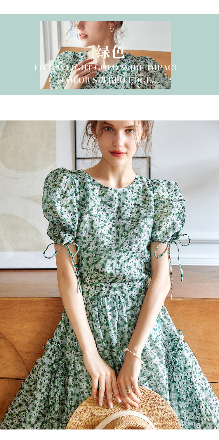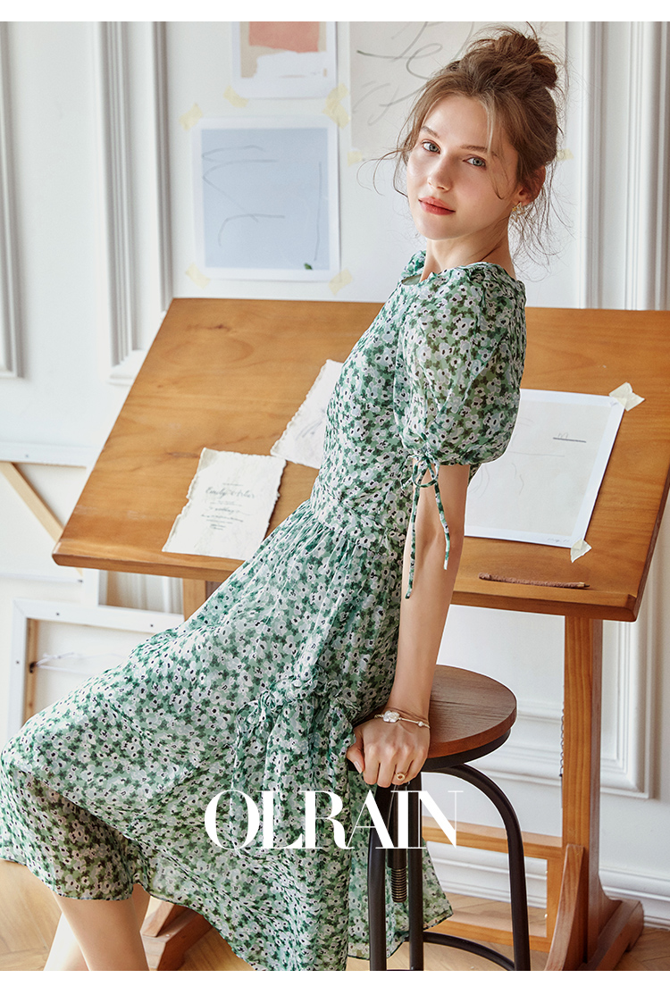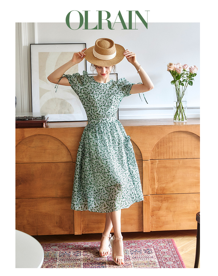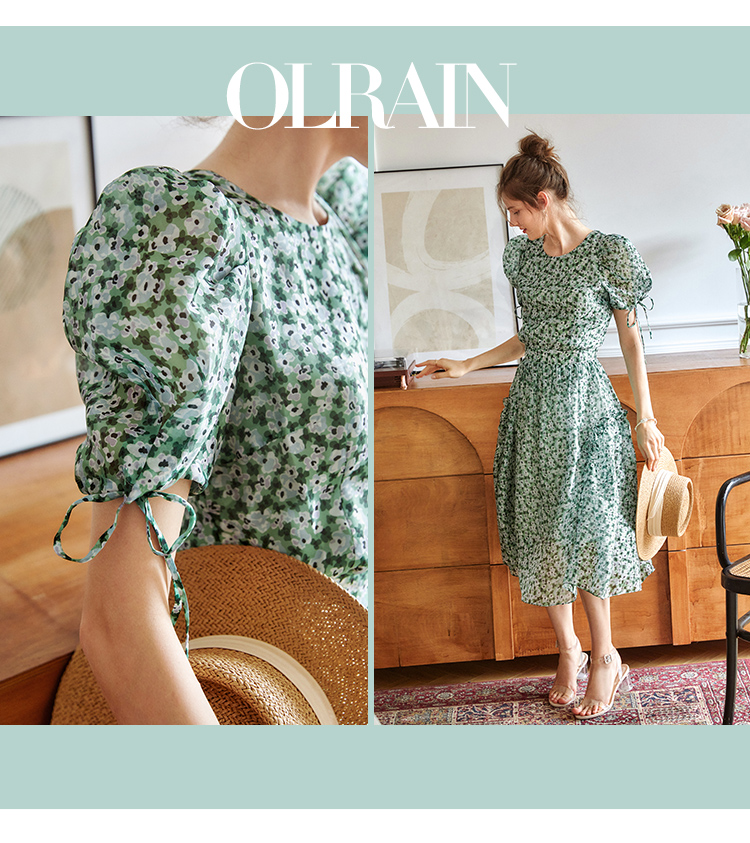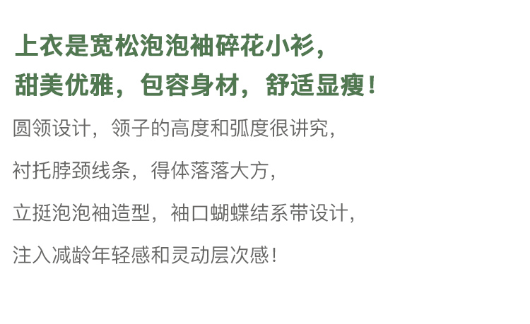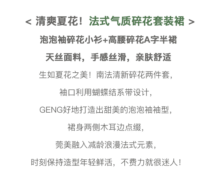 欧芮儿绿色时尚套装女2021夏新款碎花半身裙子法式洋气减龄两件套