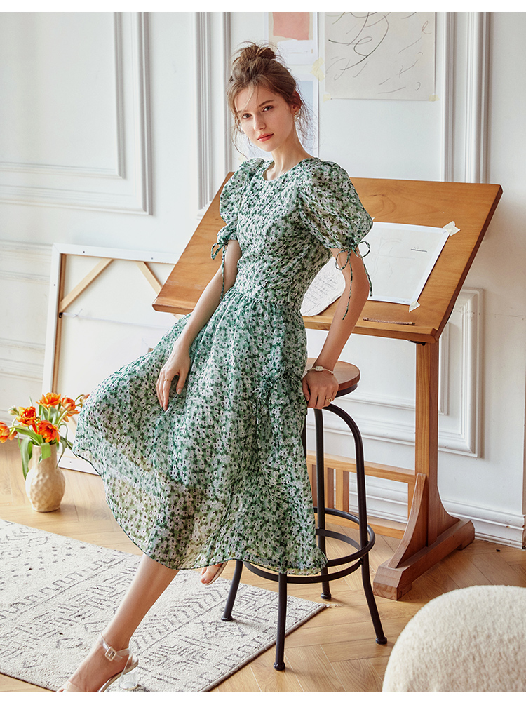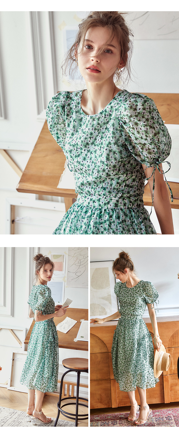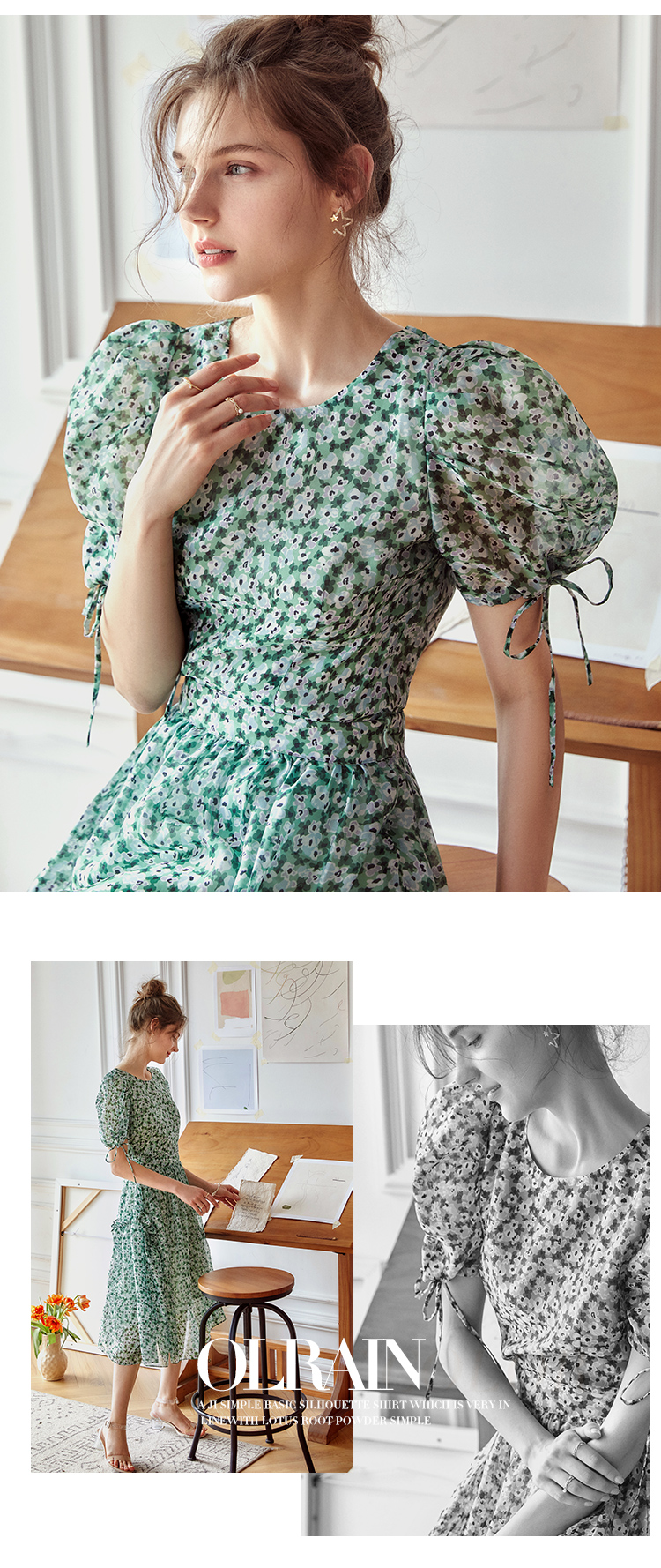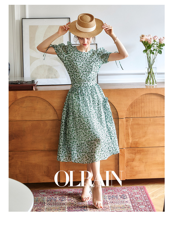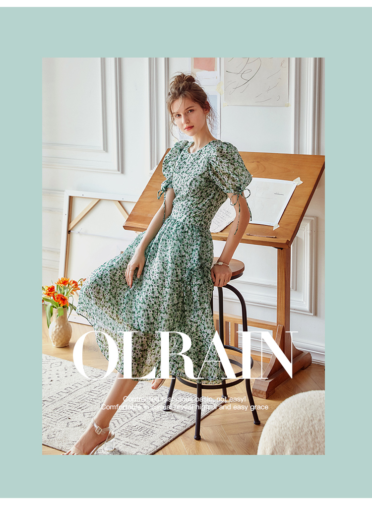 欧芮儿绿色时尚套装女2021夏新款碎花半身裙子法式洋气减龄两件套