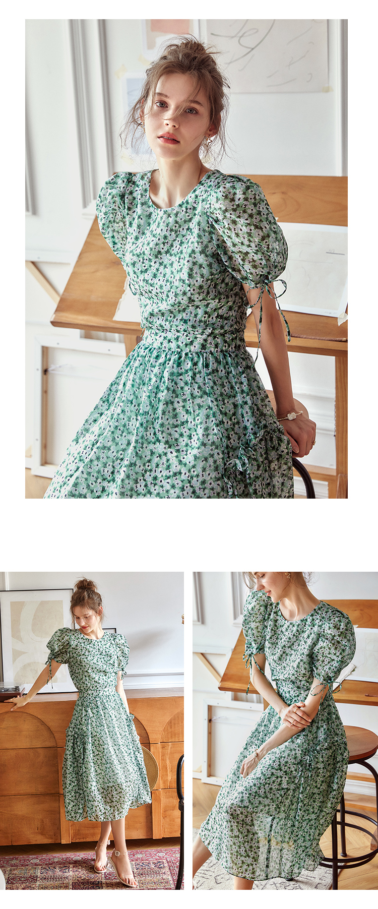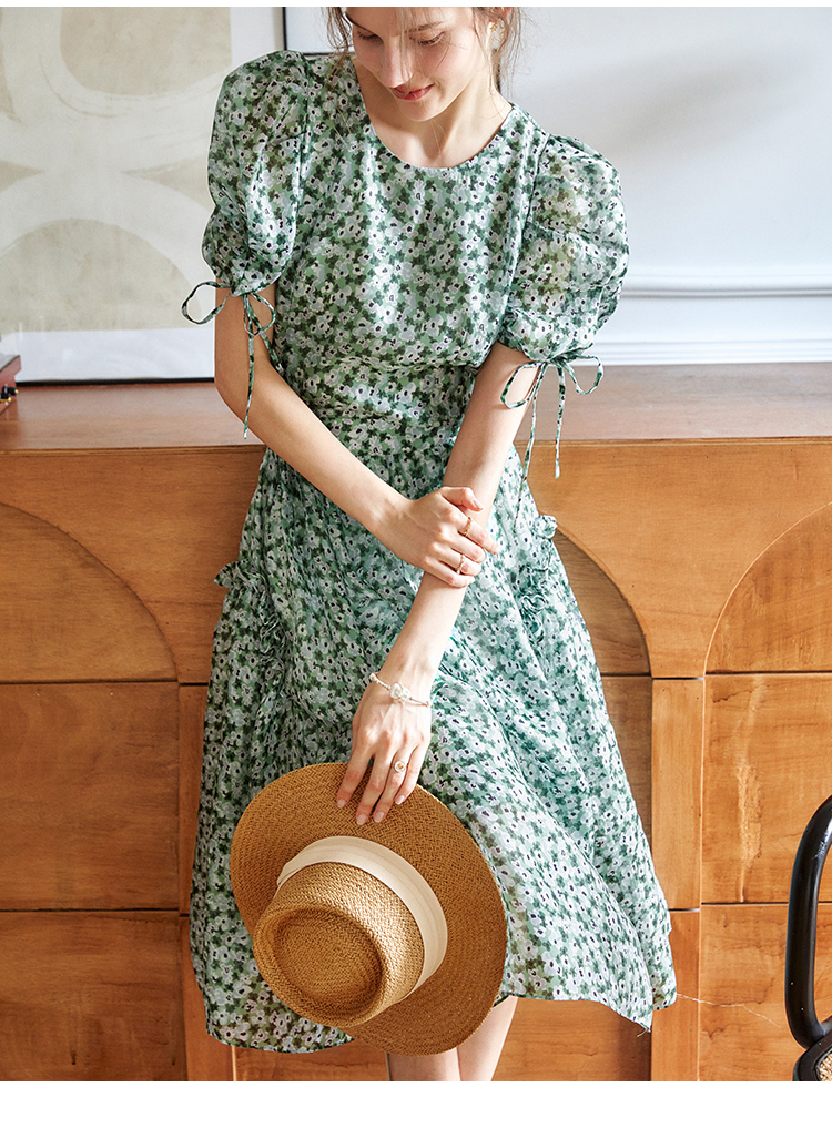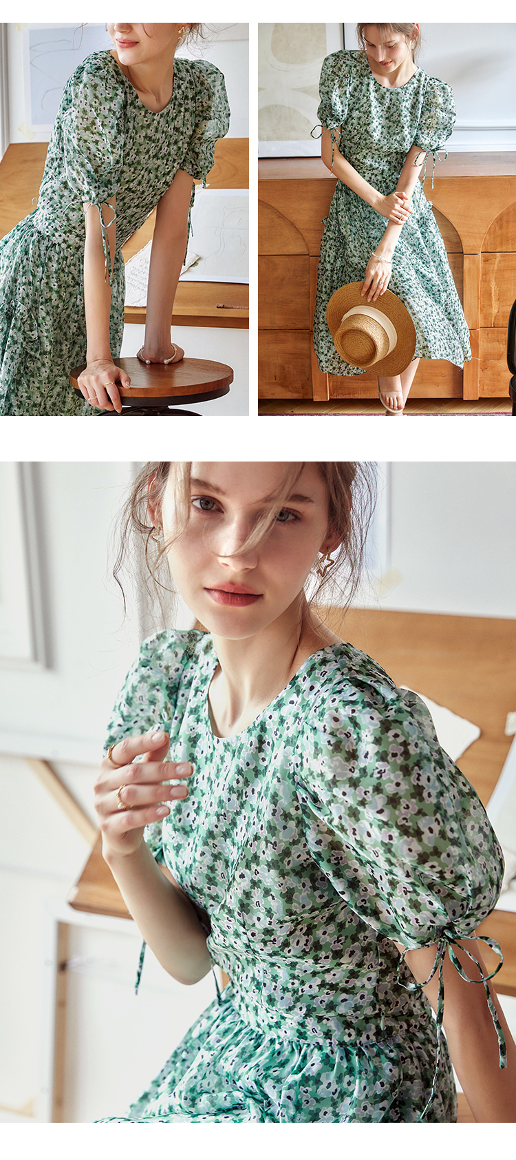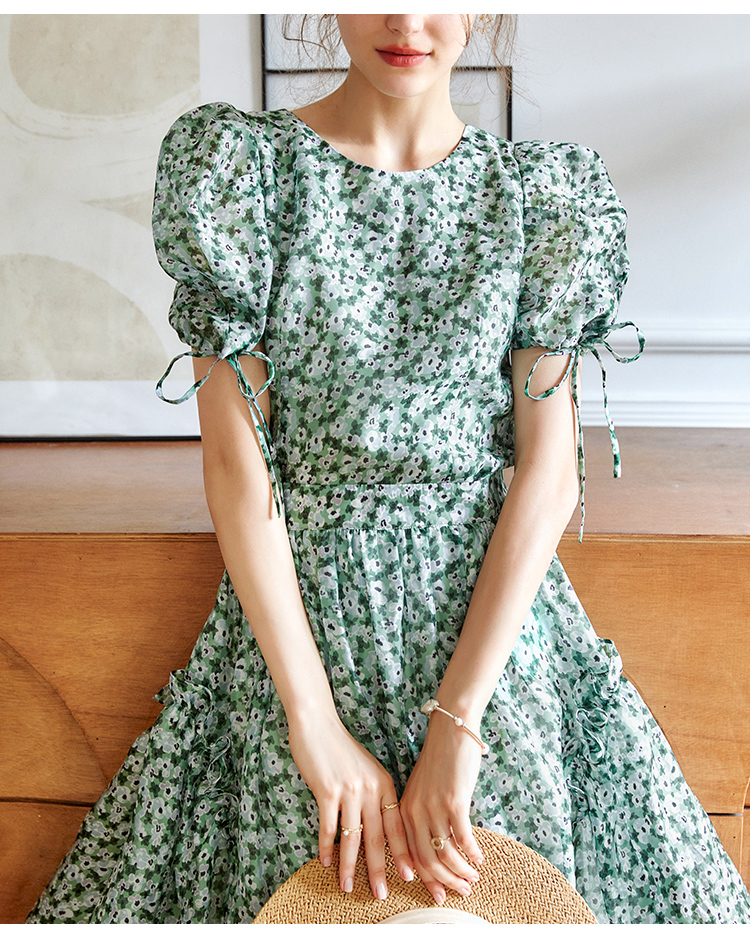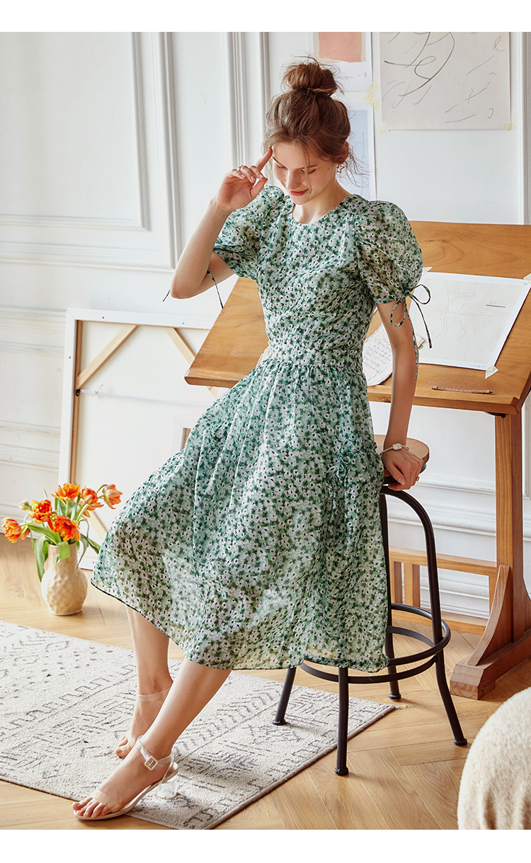 欧芮儿绿色时尚套装女2021夏新款碎花半身裙子法式洋气减龄两件套