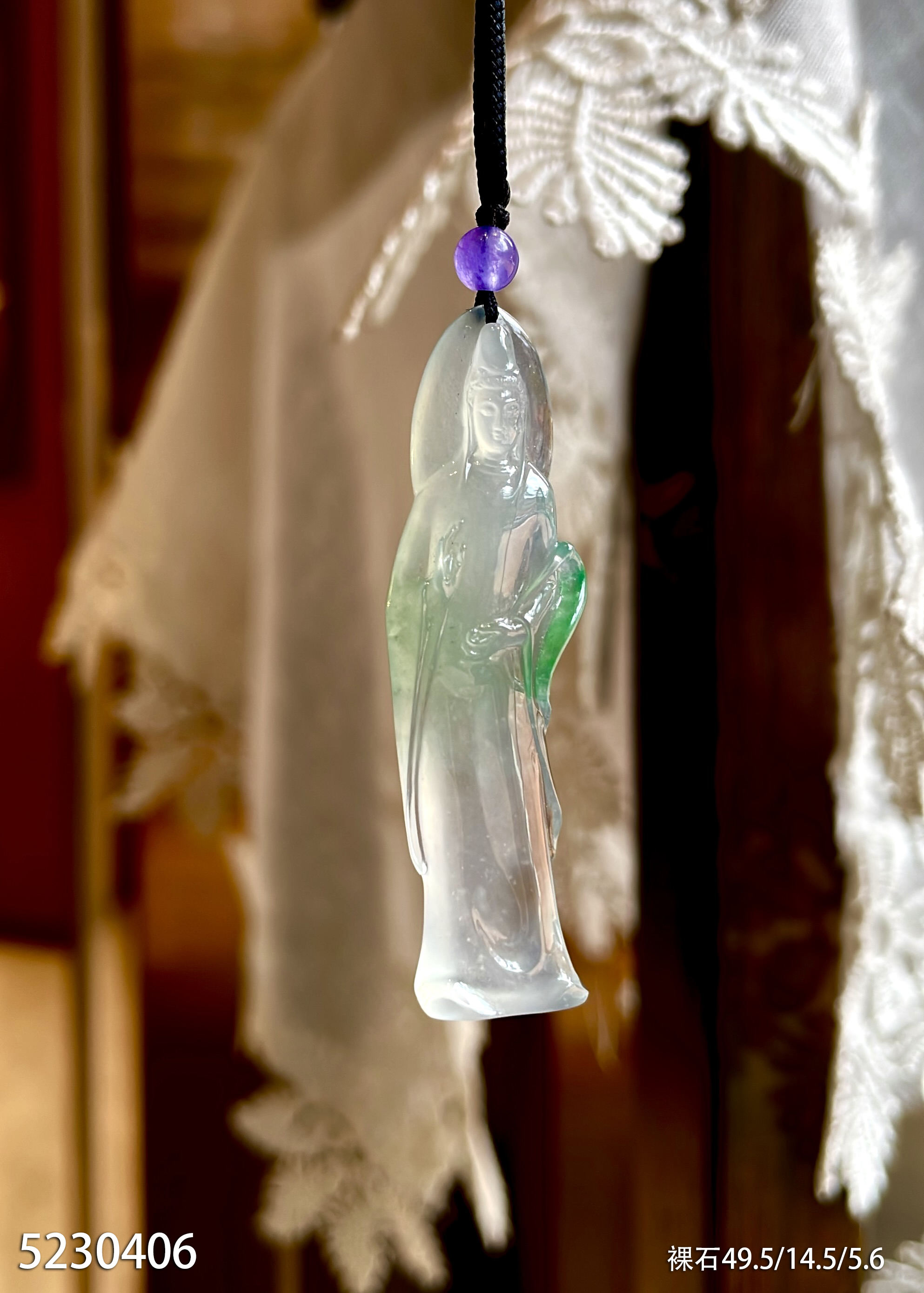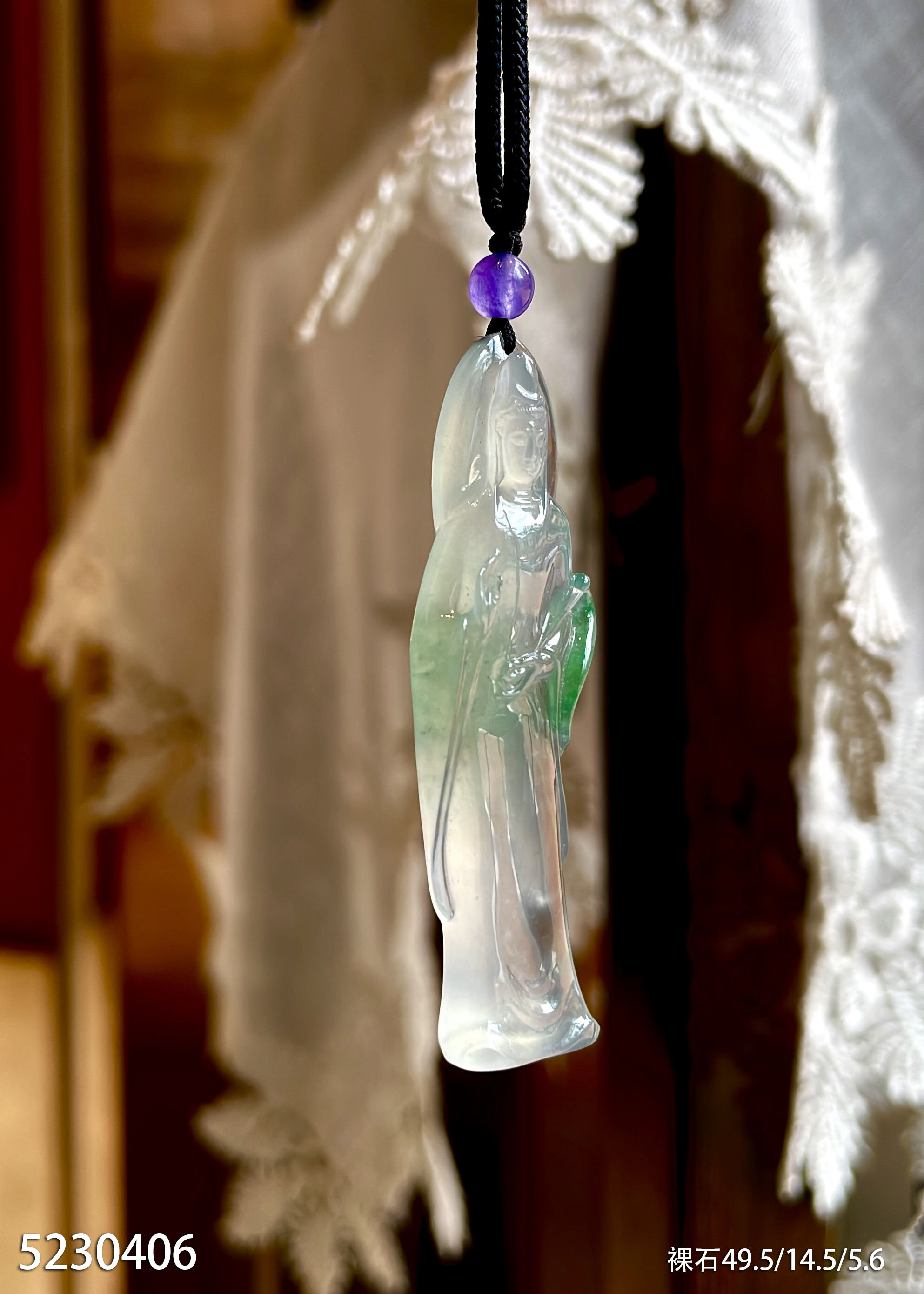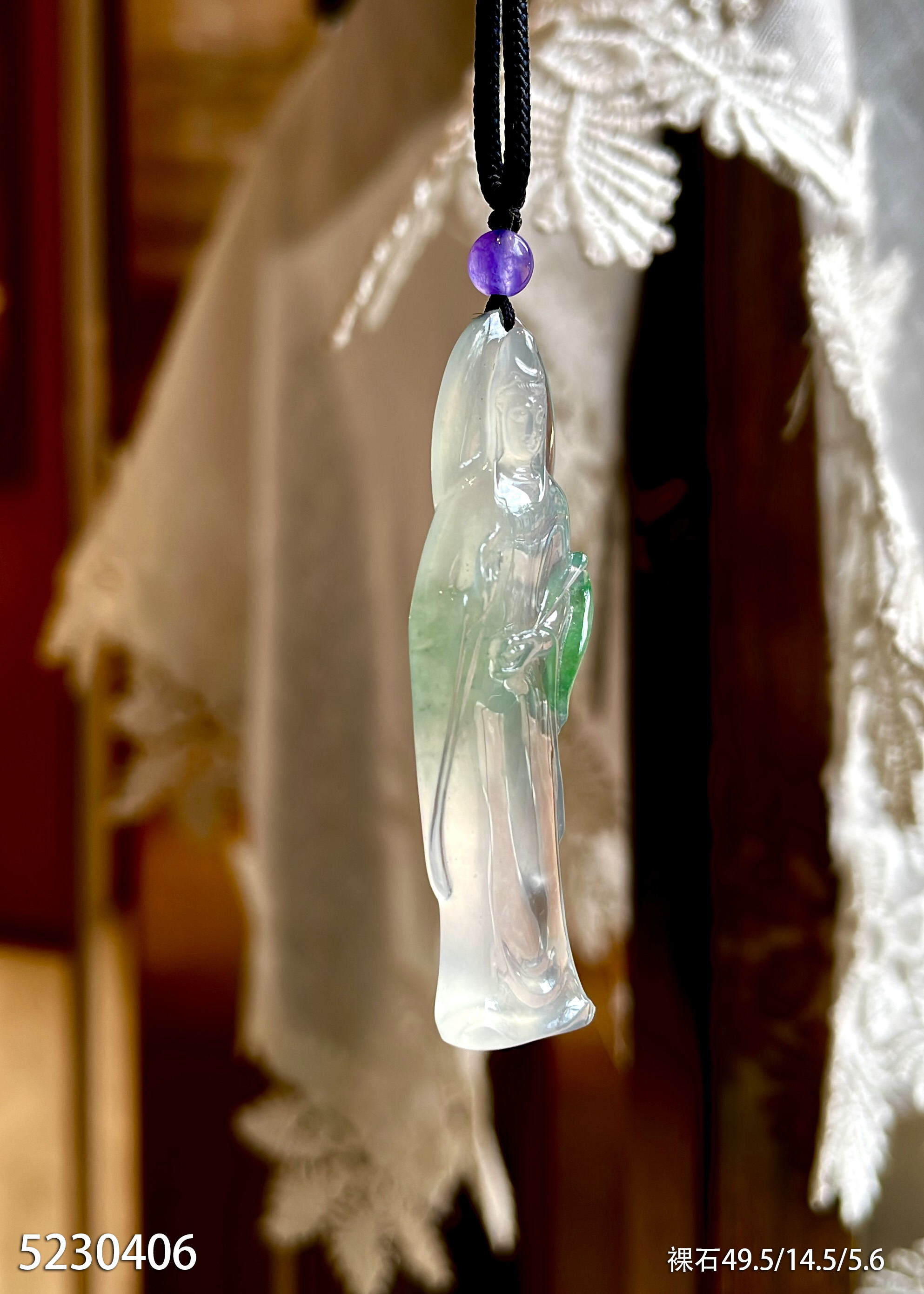 5230406,高冰近玻璃飘翠观音裸石。具体价格微信咨询
