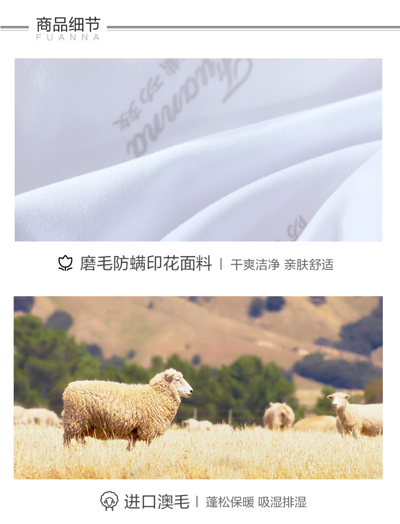富安娜 全澳洲防螨羊毛被203*229(1500g)