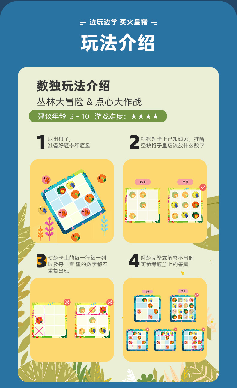 Redzoo火星猪儿童数独入门棋盘游戏