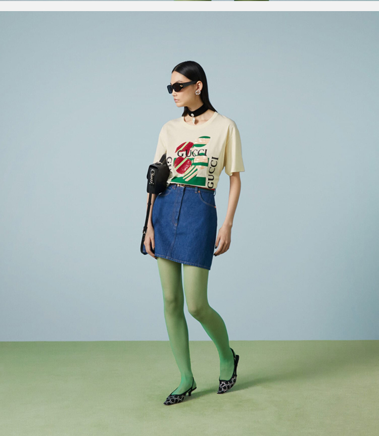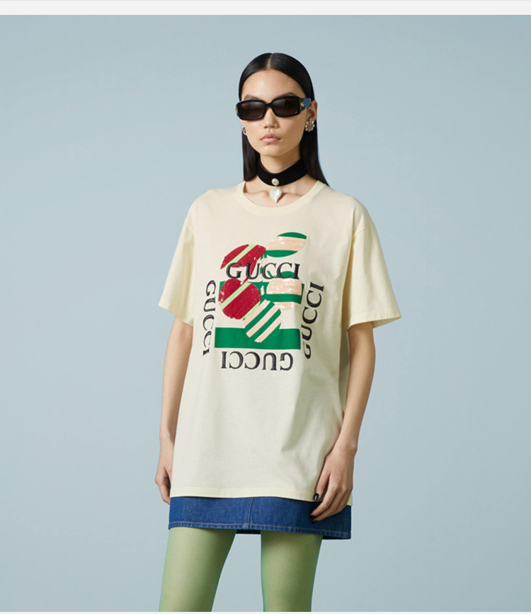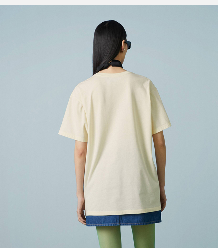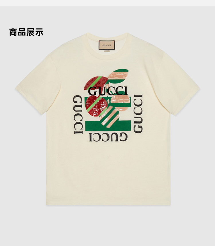 GUCCI 古驰 女士徽标印花针织棉质圆领短袖T恤 米白色 717422 XJFV5 9026
