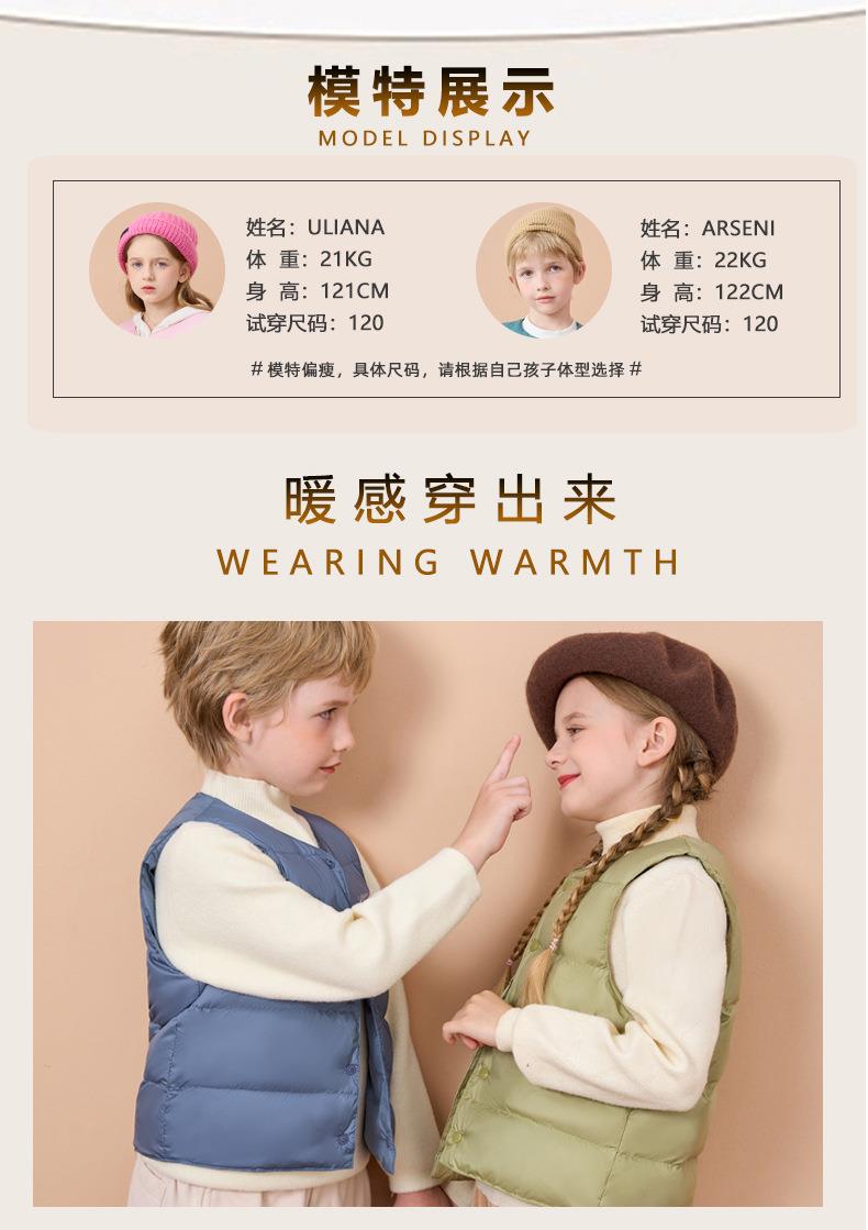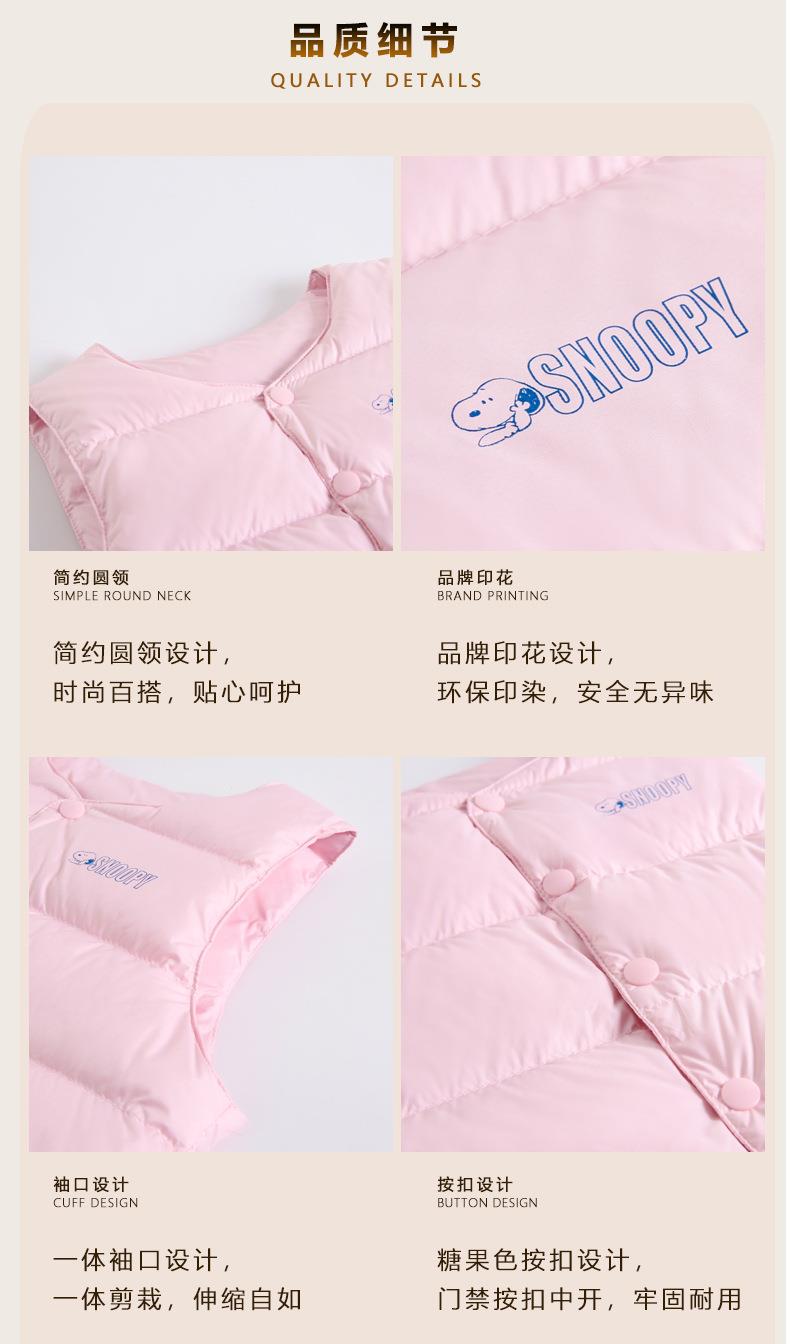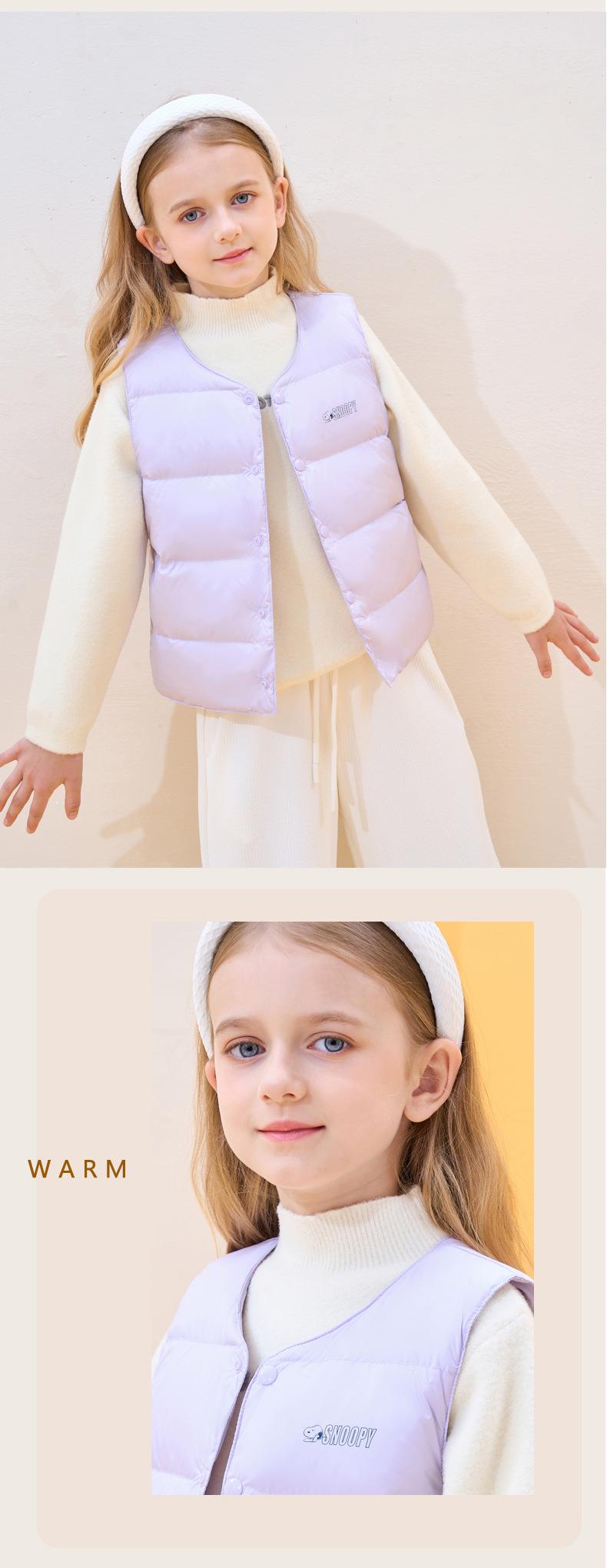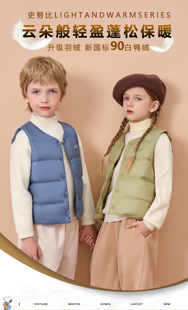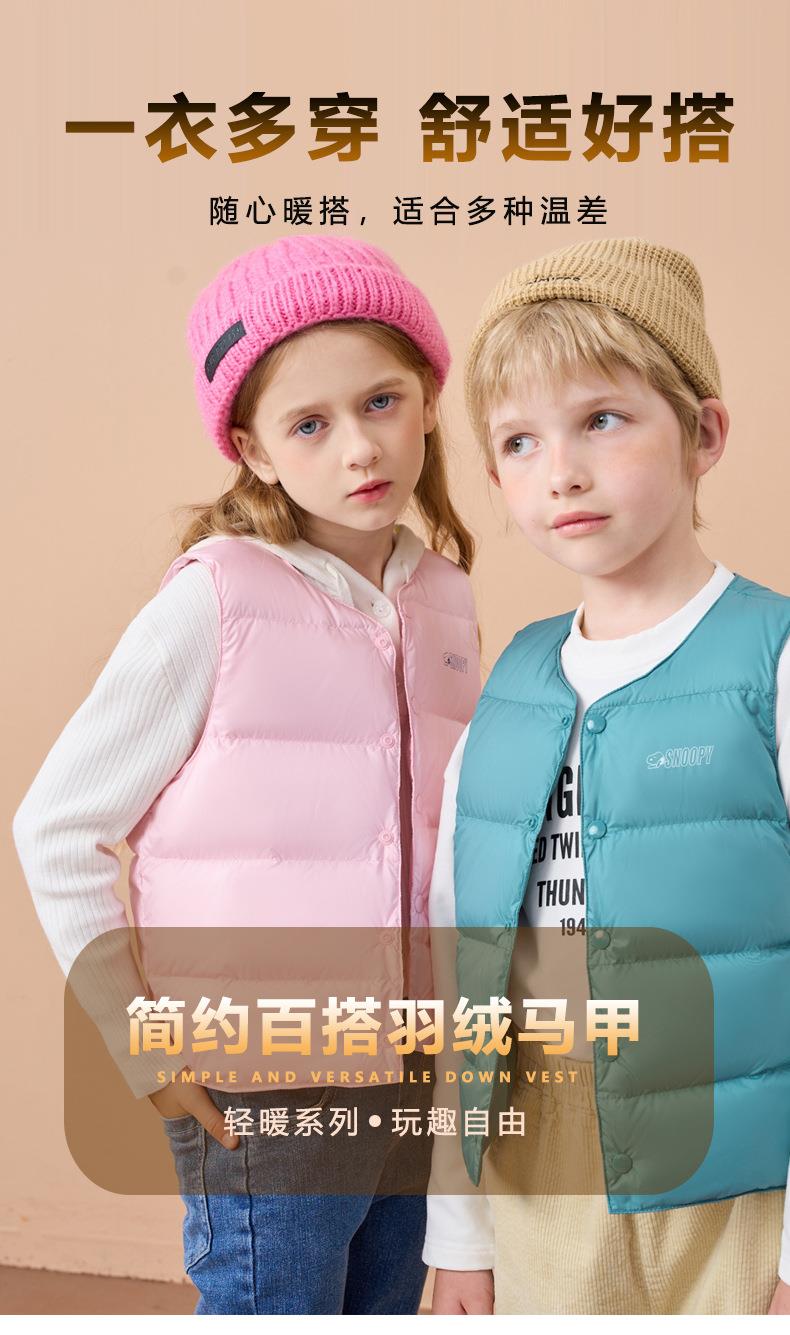 史努比儿童羽绒马甲内搭外穿坎肩轻薄保暖90白鸭绒背心男女童装