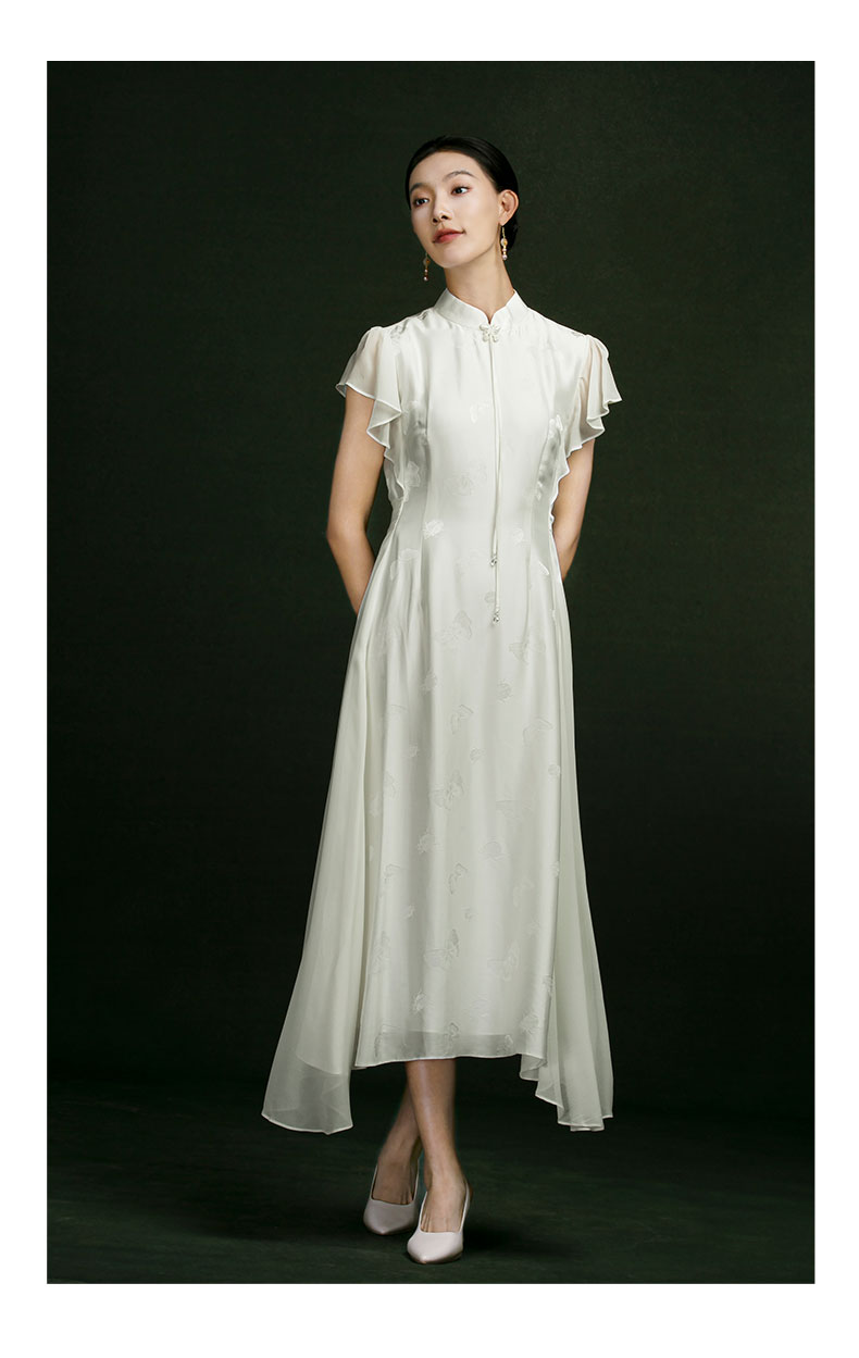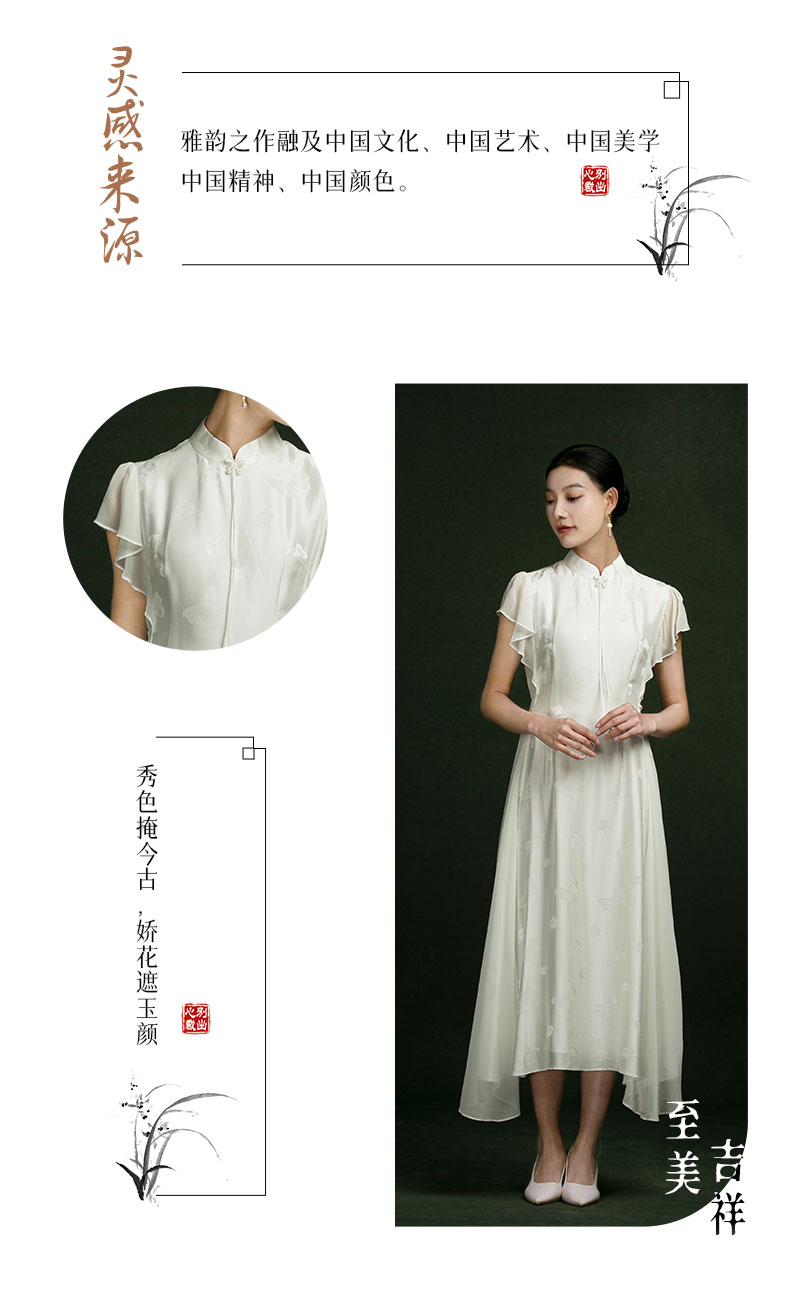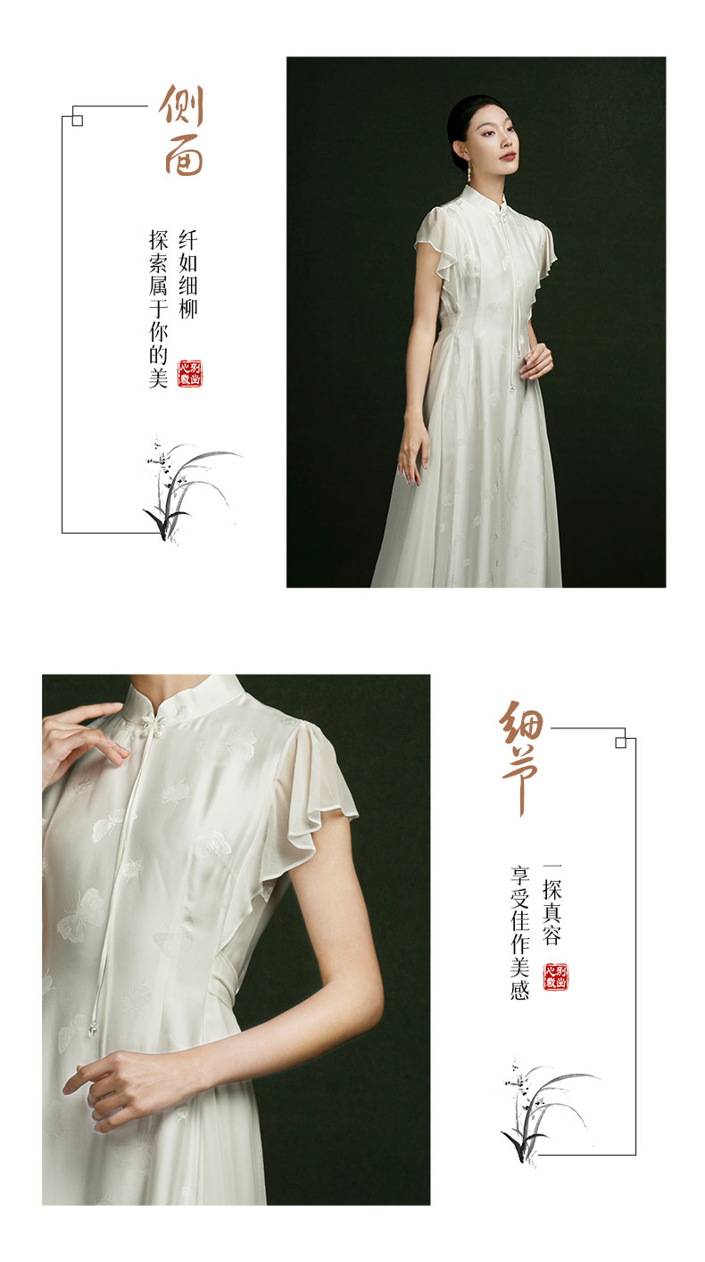 吉祥衣家新中式国风春夏新款高端气质显瘦修身女装玉蝶翩翩连衣裙