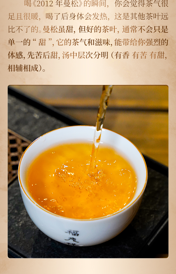 13年陈老蜜甜【曼松】2012年春茶易武茶区曼松古纯料普洱茶生茶饼357g;错过绝对会跺脚!