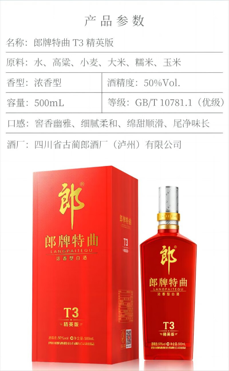 郎酒 郎牌特曲T3 精英版50度500ml浓香型白酒