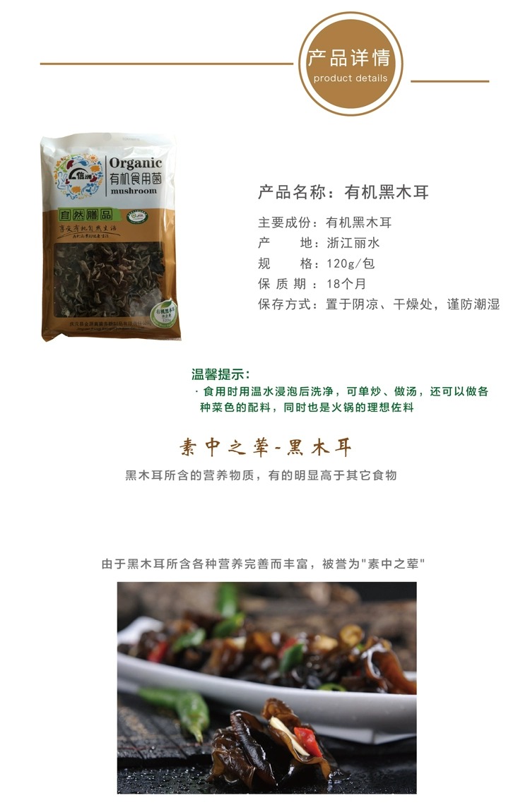 信洲有机认证黑木耳干货120g
