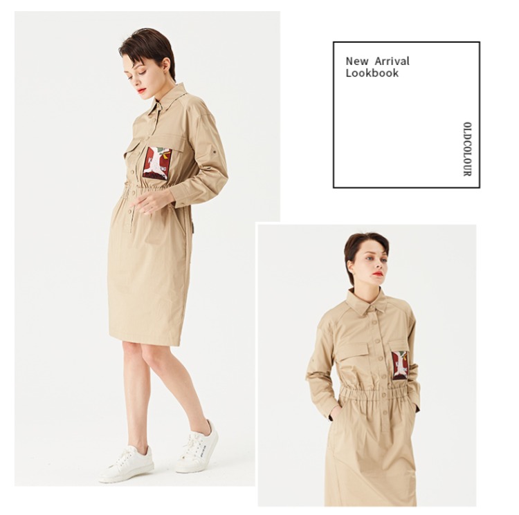 oldcolour欧珂秋季秋装春秋长袖连衣裙女收腰中长款裙子