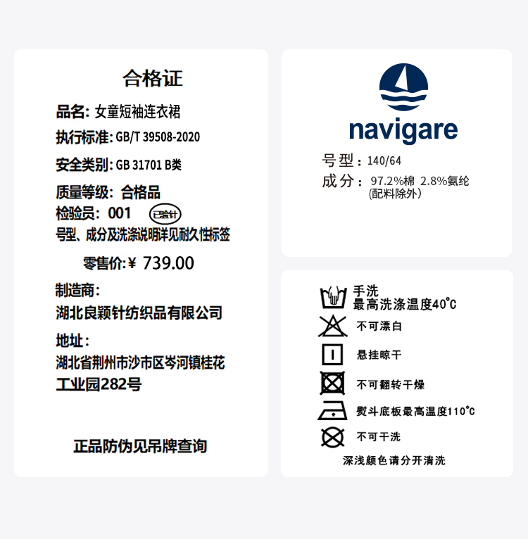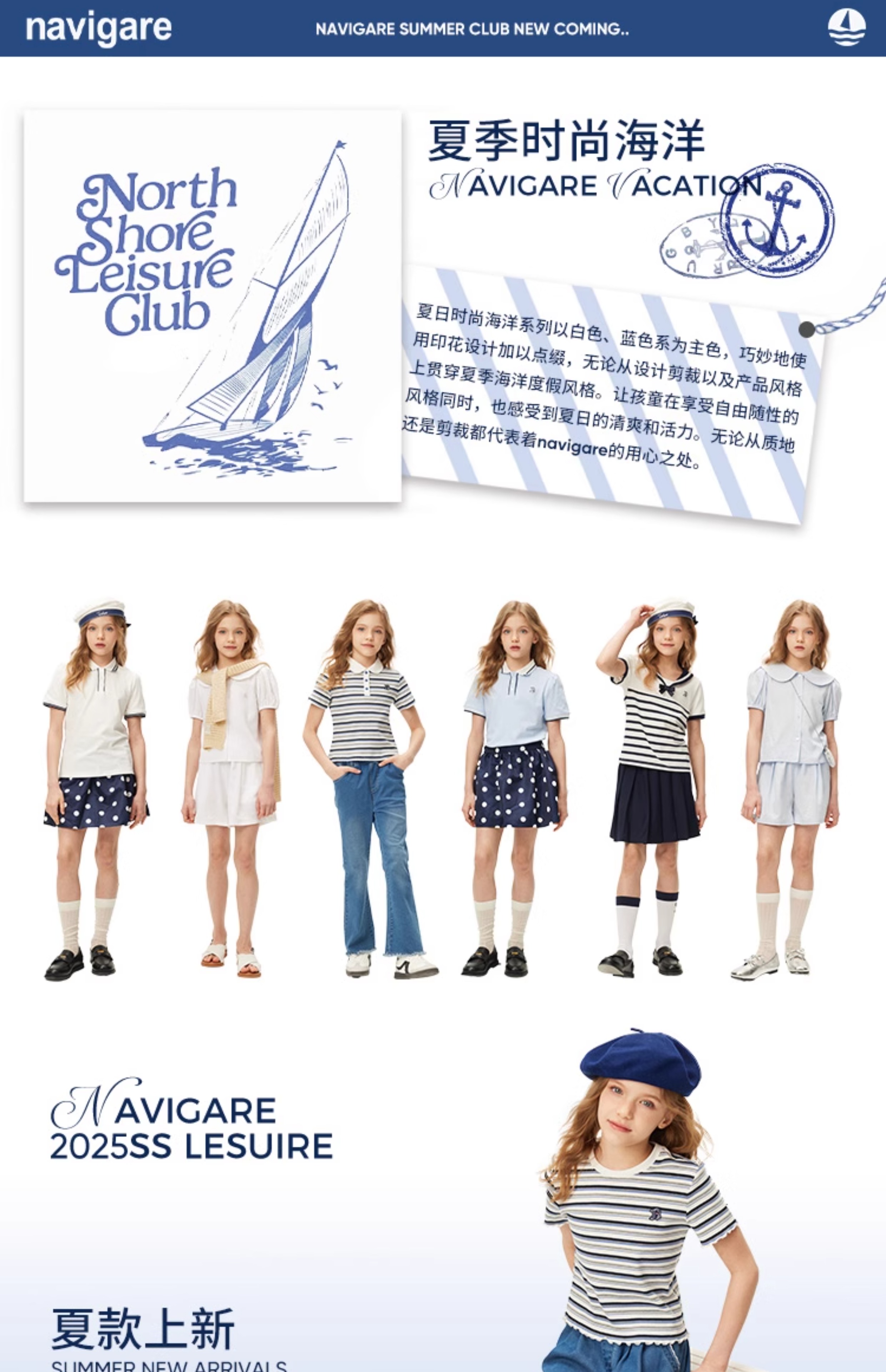 【纳维凯尔】【120-165】Navigare意大利小帆船童装女童连衣裙
