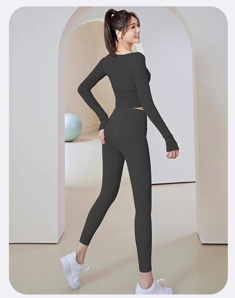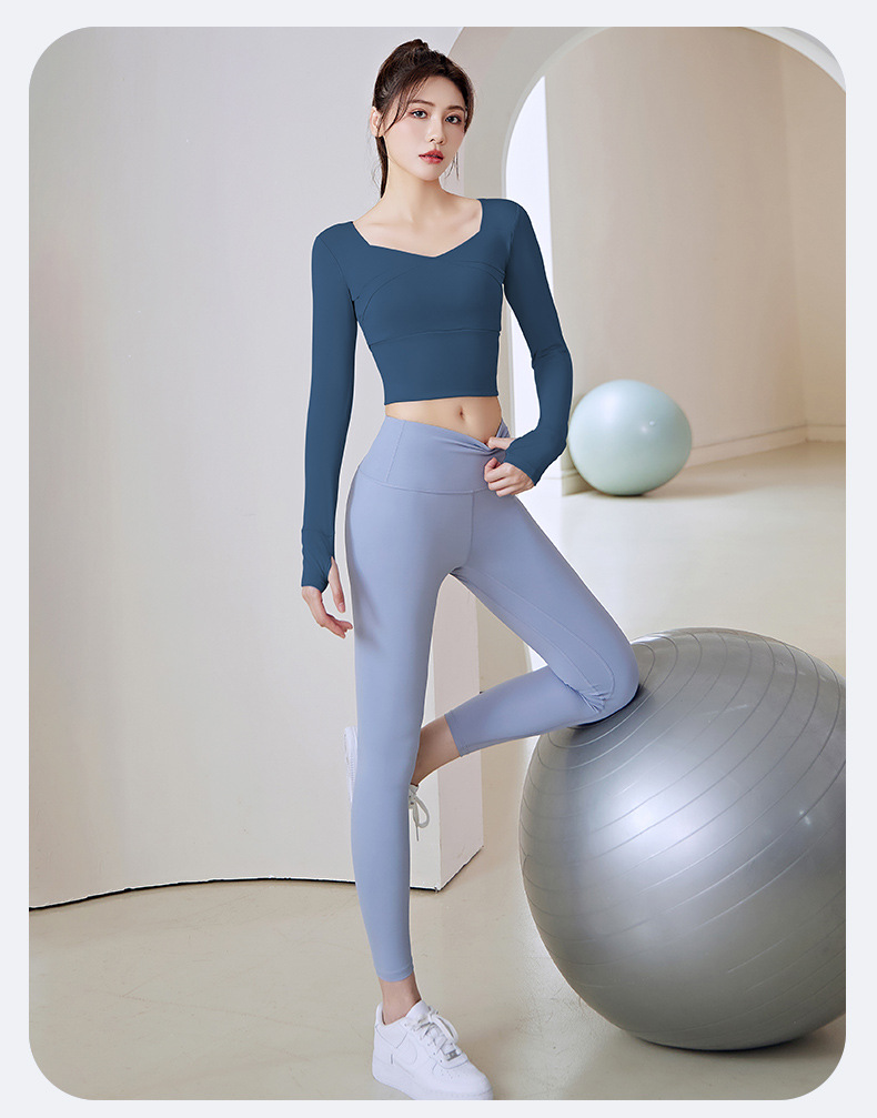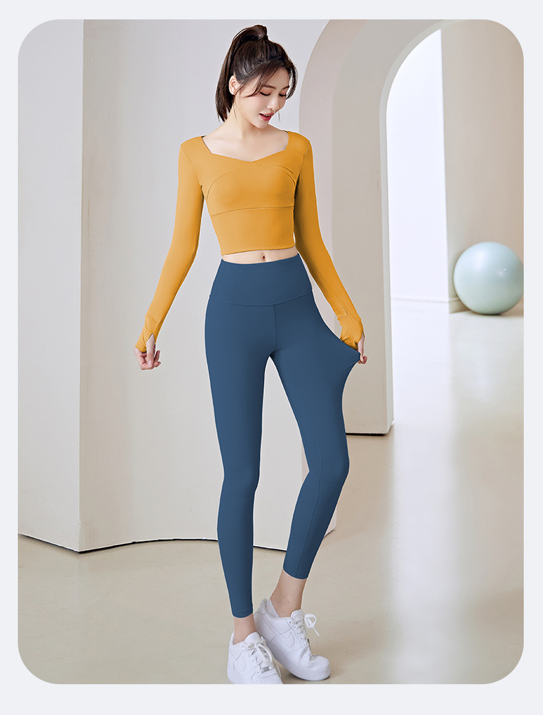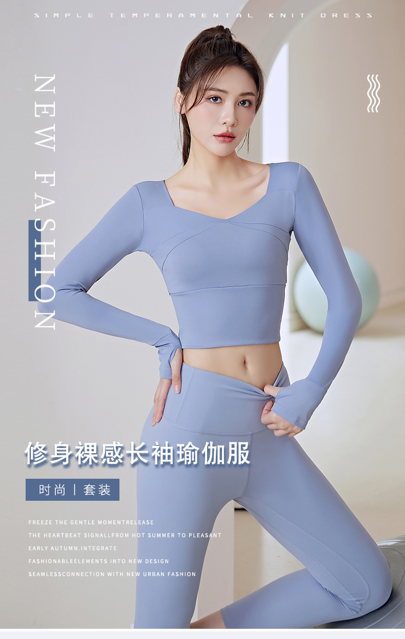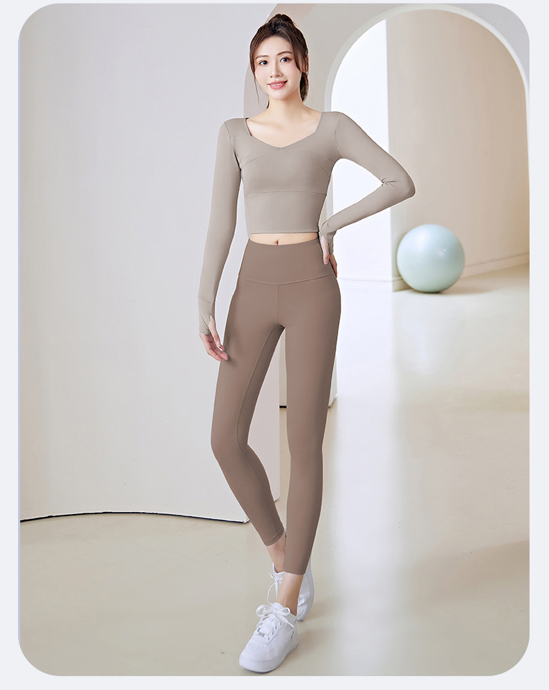 拼接瑜伽服免穿文胸无缝运动高腰提臀健身套装