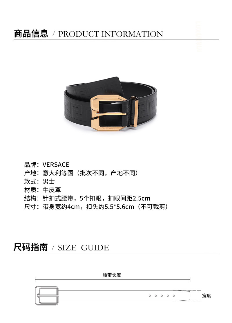【国内现货】VERSACE/范思哲 2021款 男士牛皮革针扣式皮带腰带 1001065 1A00723