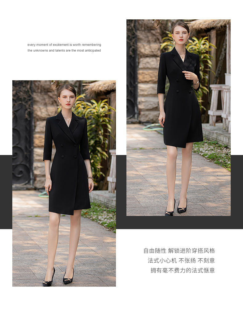 IWY/黑色连衣裙女高端设计款夏季新款气质显瘦收腰职业西装裙子女Q676