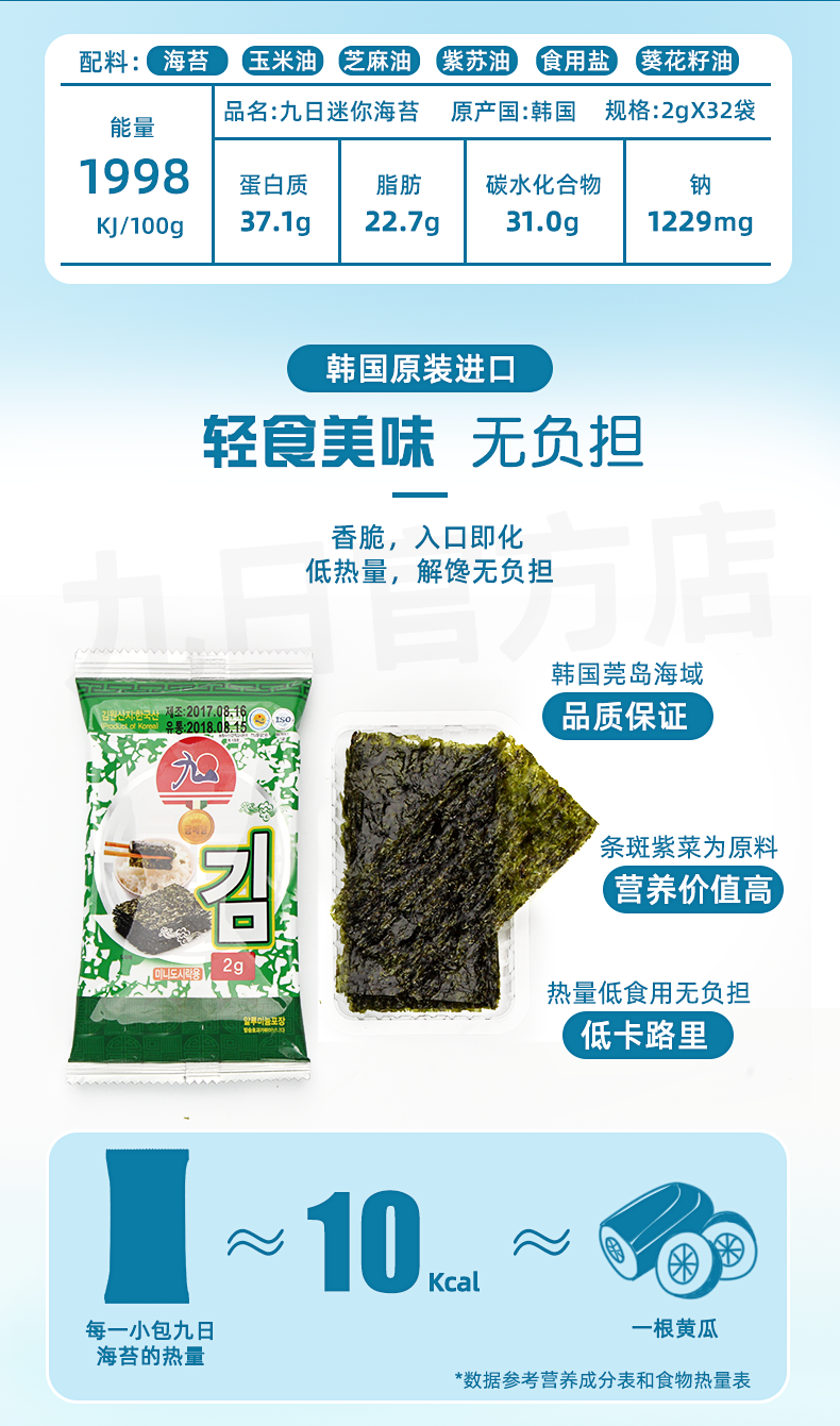 韩国进口九日迷你海苔16g(2g*8)/152412 咸香酥脆韩国纯净海域