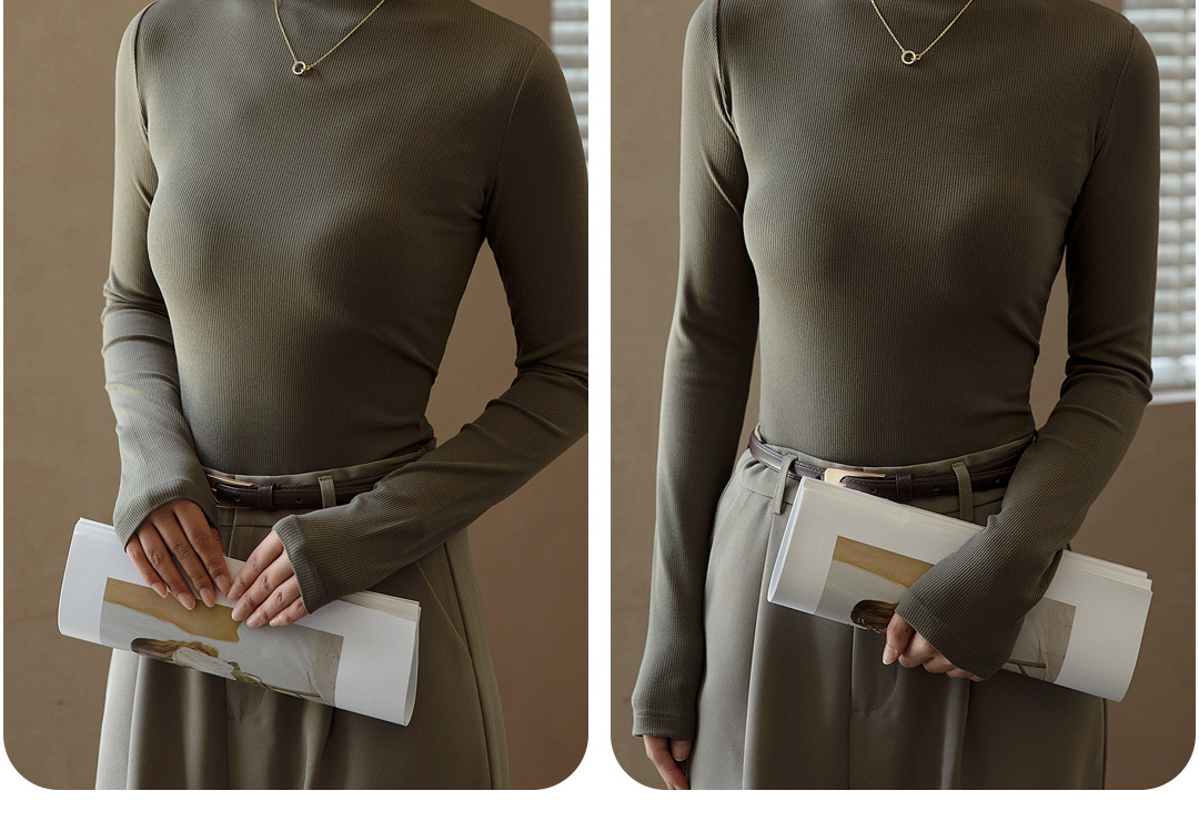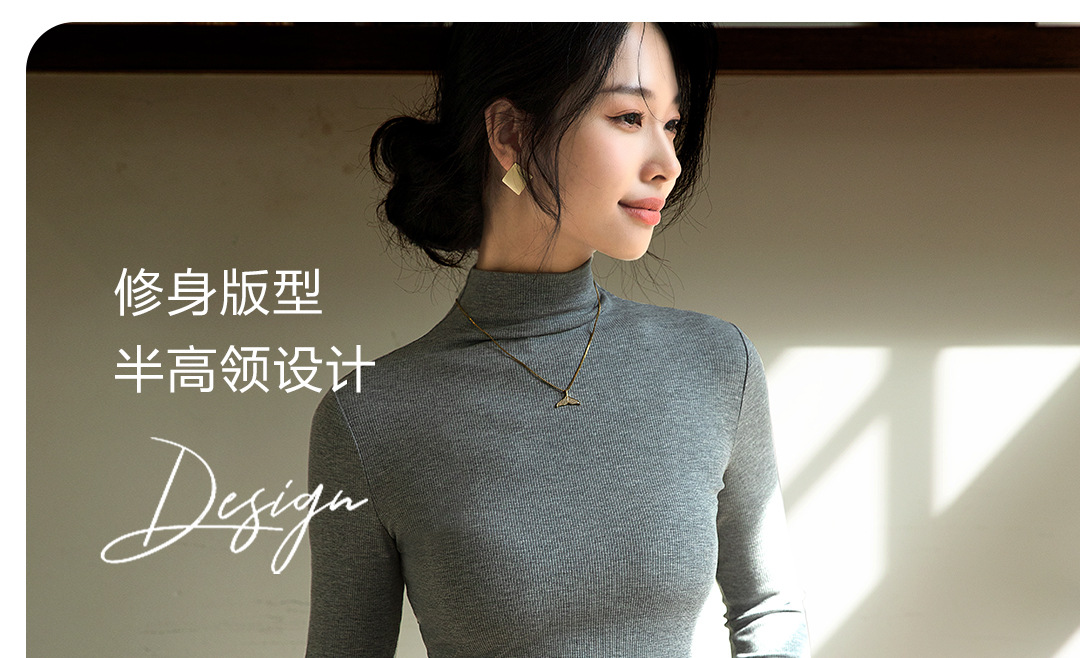 【螺纹半高领打底衫女】秋冬新款内搭保暖衣 韩版百搭显瘦长袖t恤