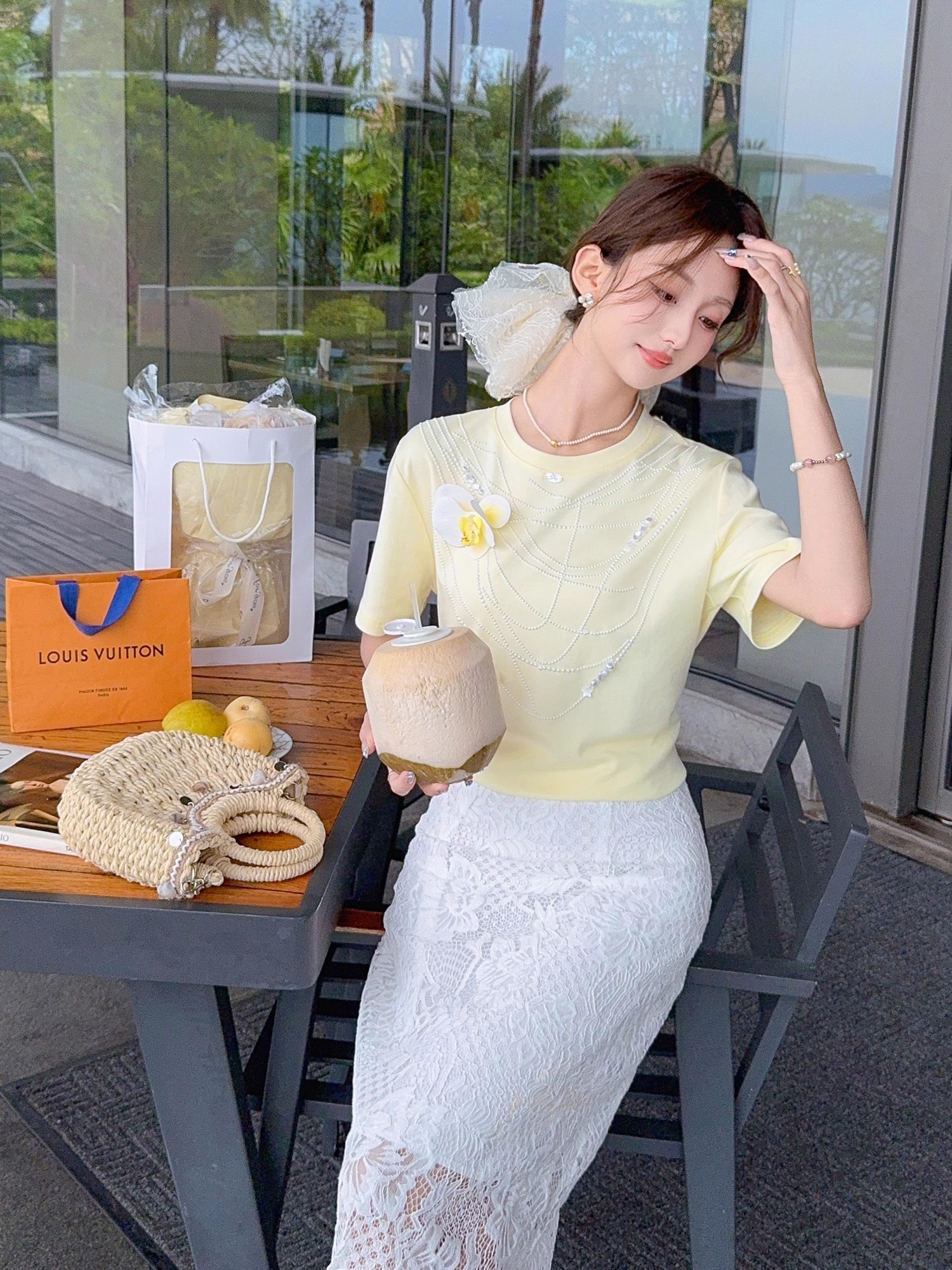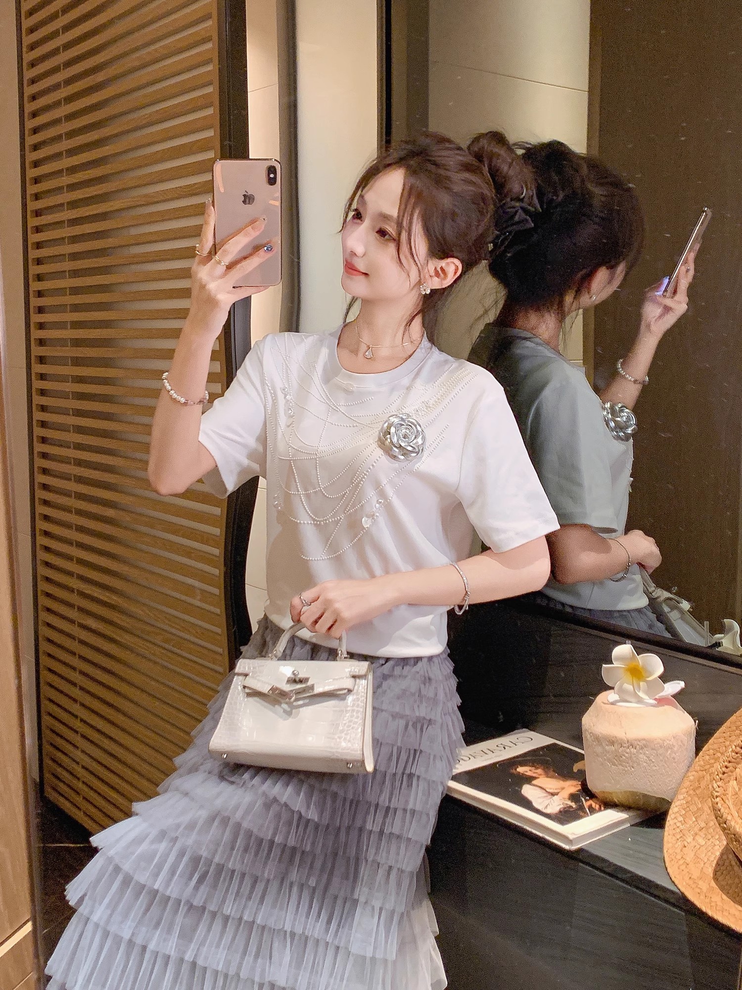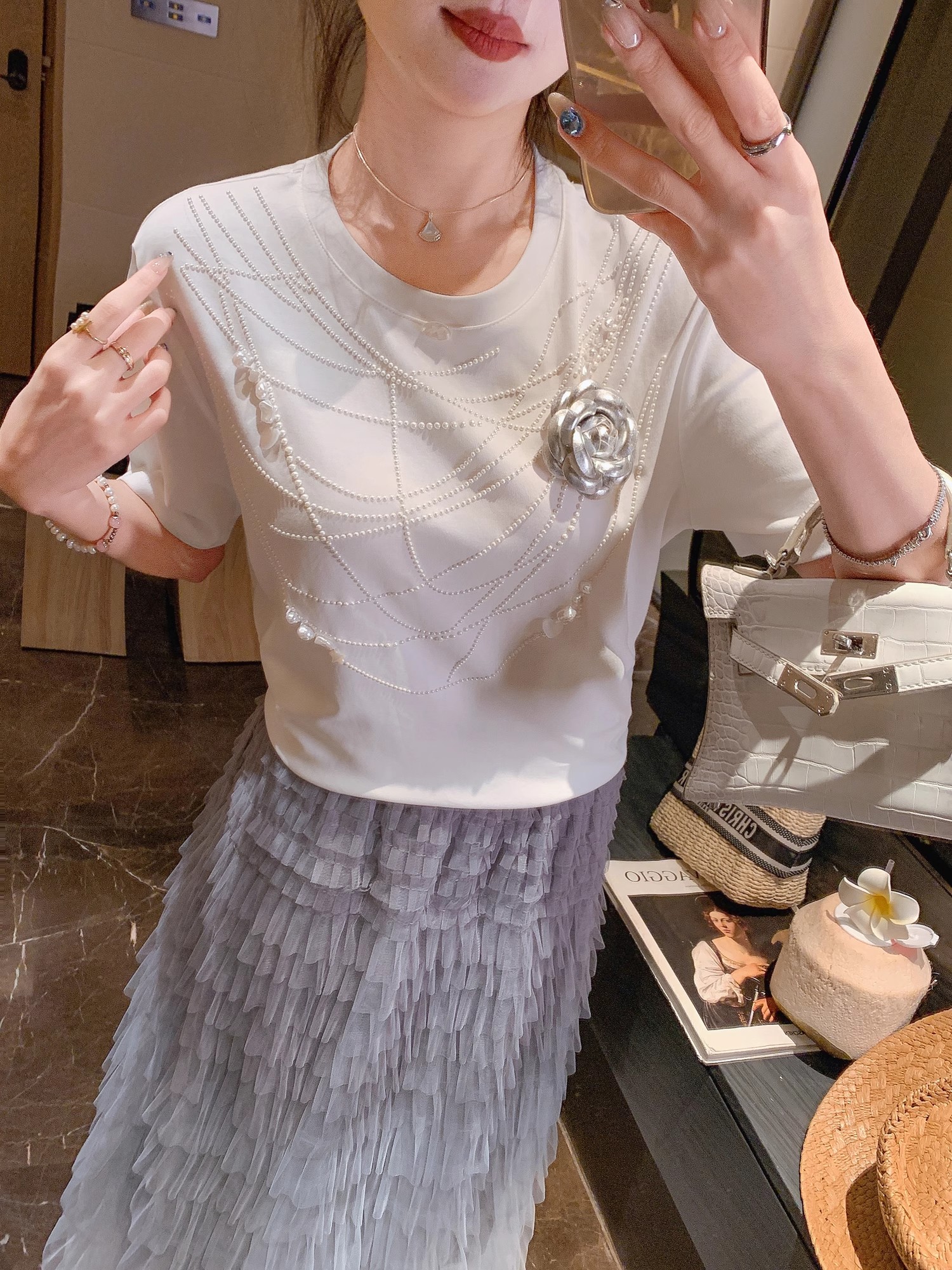 张心子【初夏生花】烫钻项链短袖T恤 U2504089